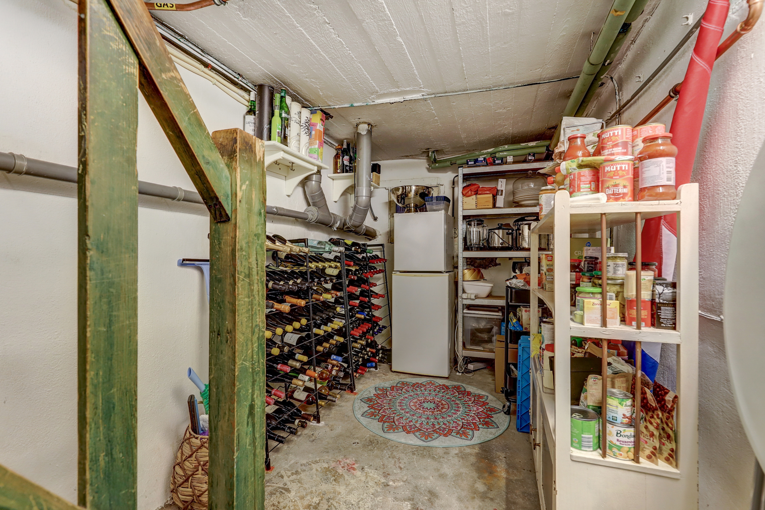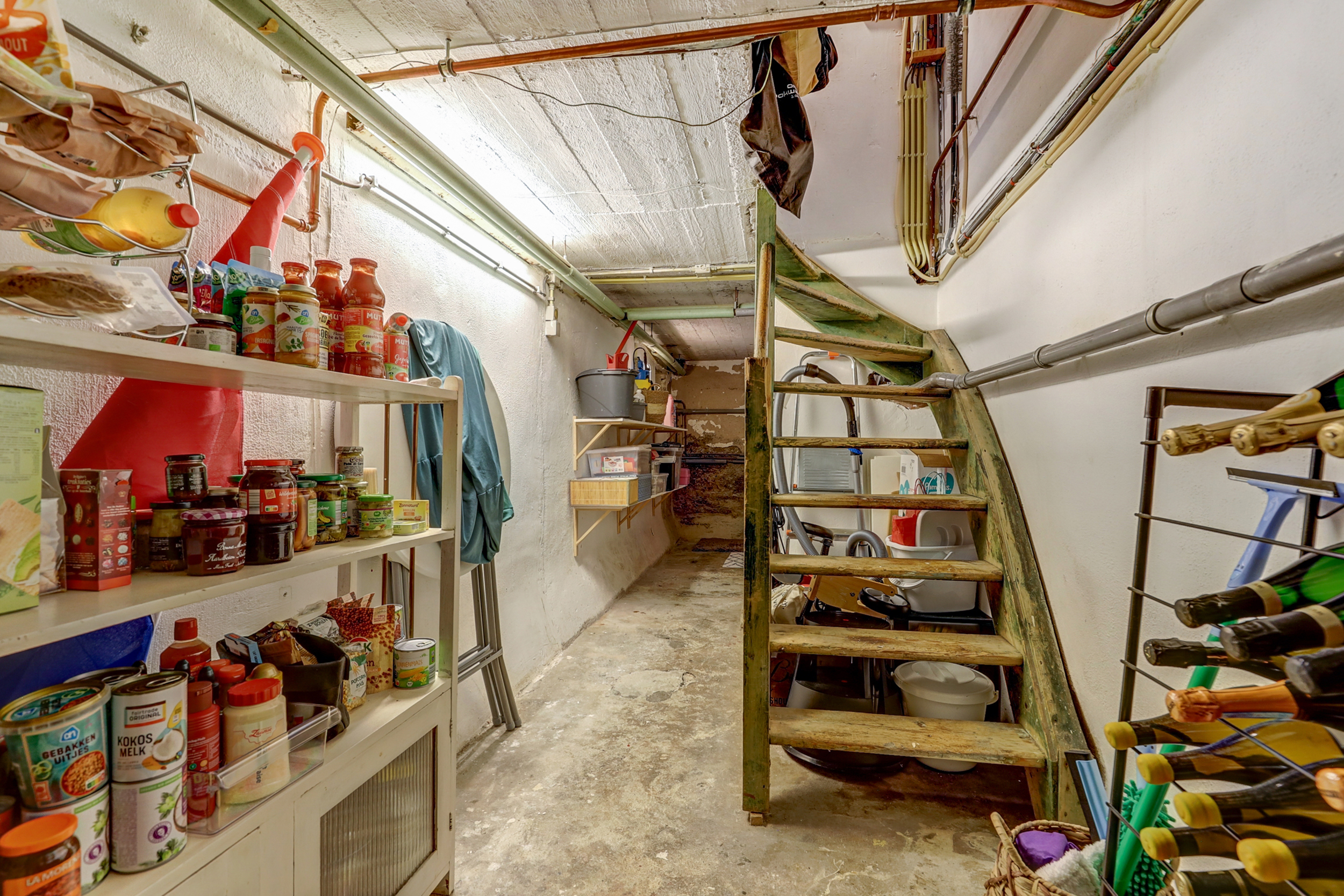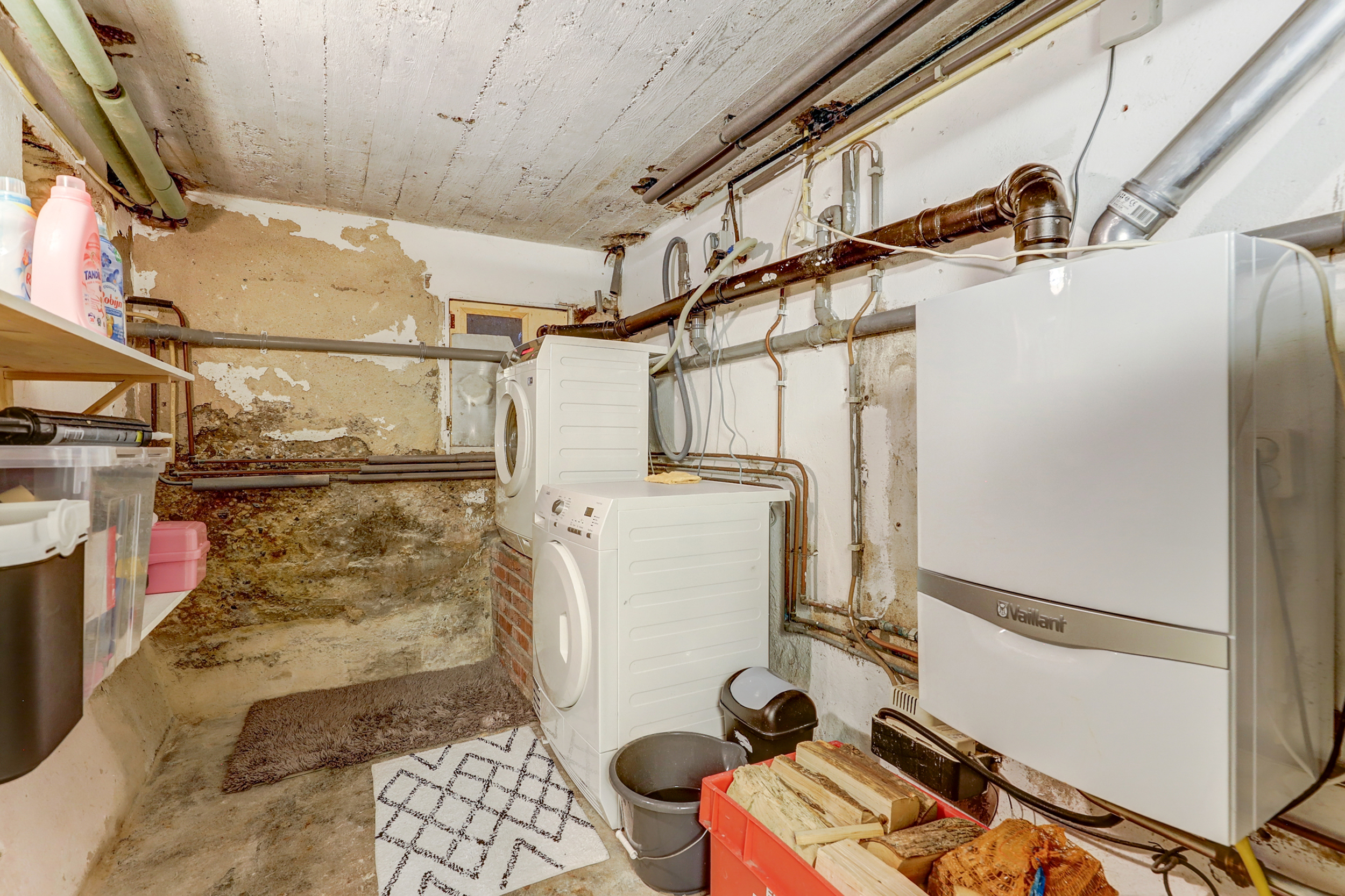 In de riante kelder vind je de aansluitingen voor de wasmachine en droger, evenals de cv-installatie.