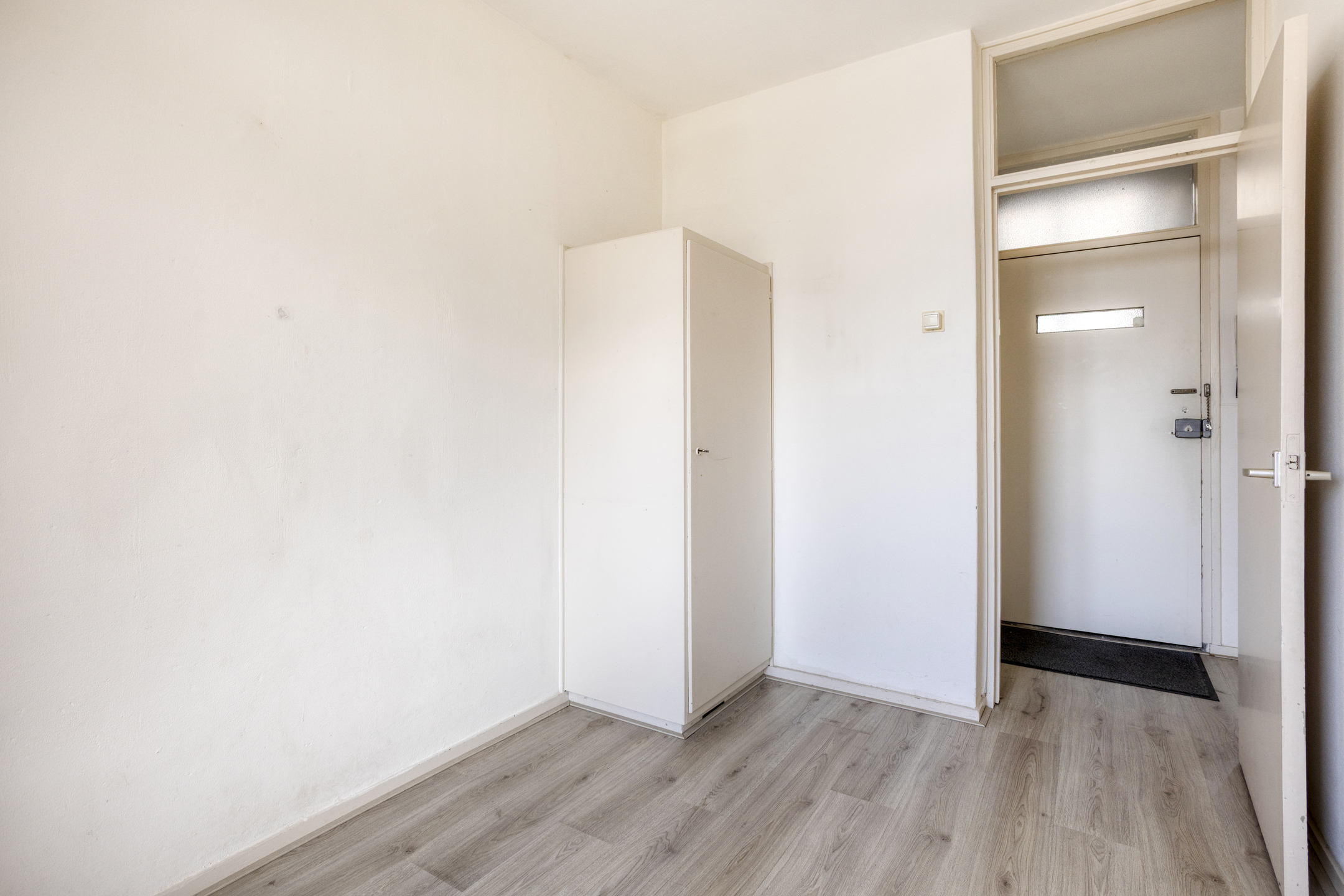 De centrale entree, je eigen (fietsen)berging in het souterrain en toegang tot je appartement met enkele traptreden naar boven. Je komt binnen in de hal en vanuit hier bereik je alle vertrekken.
