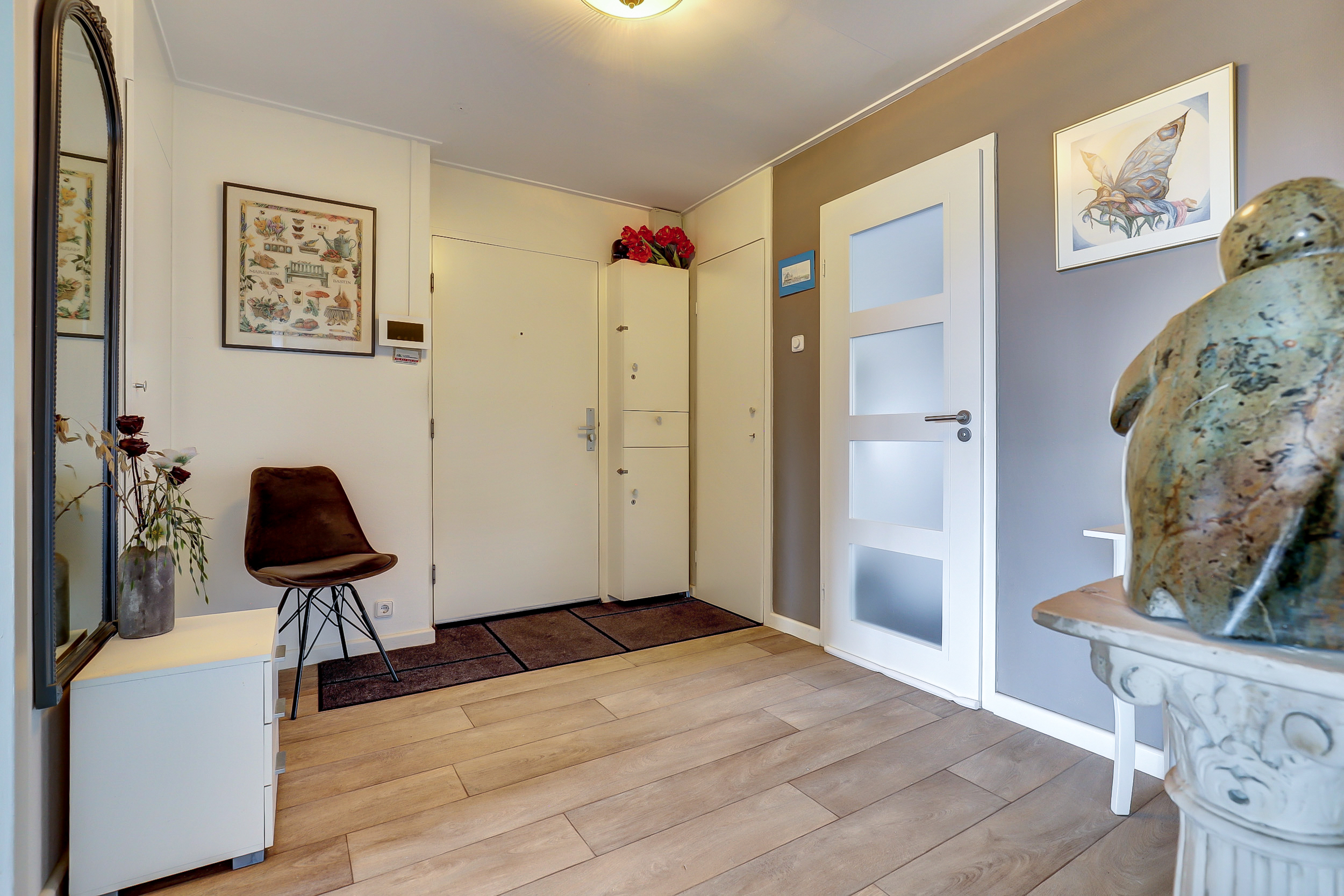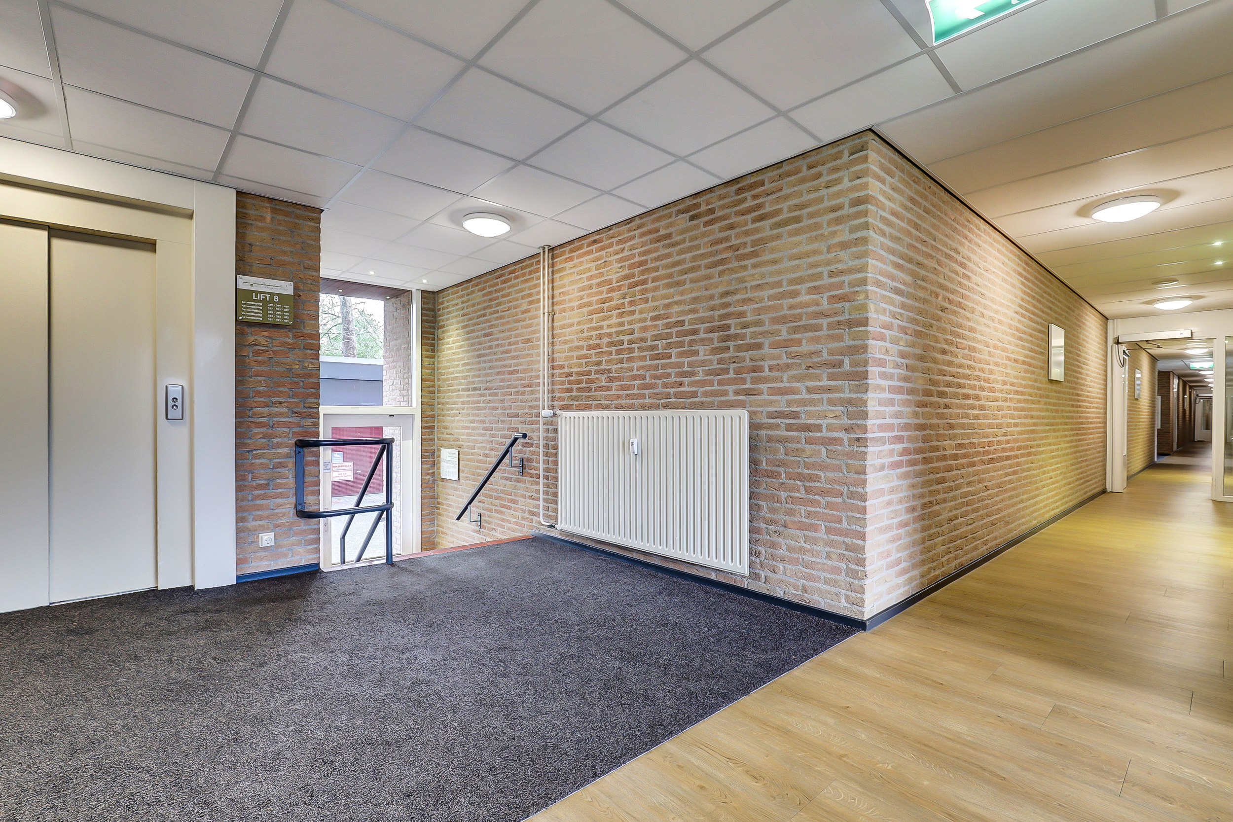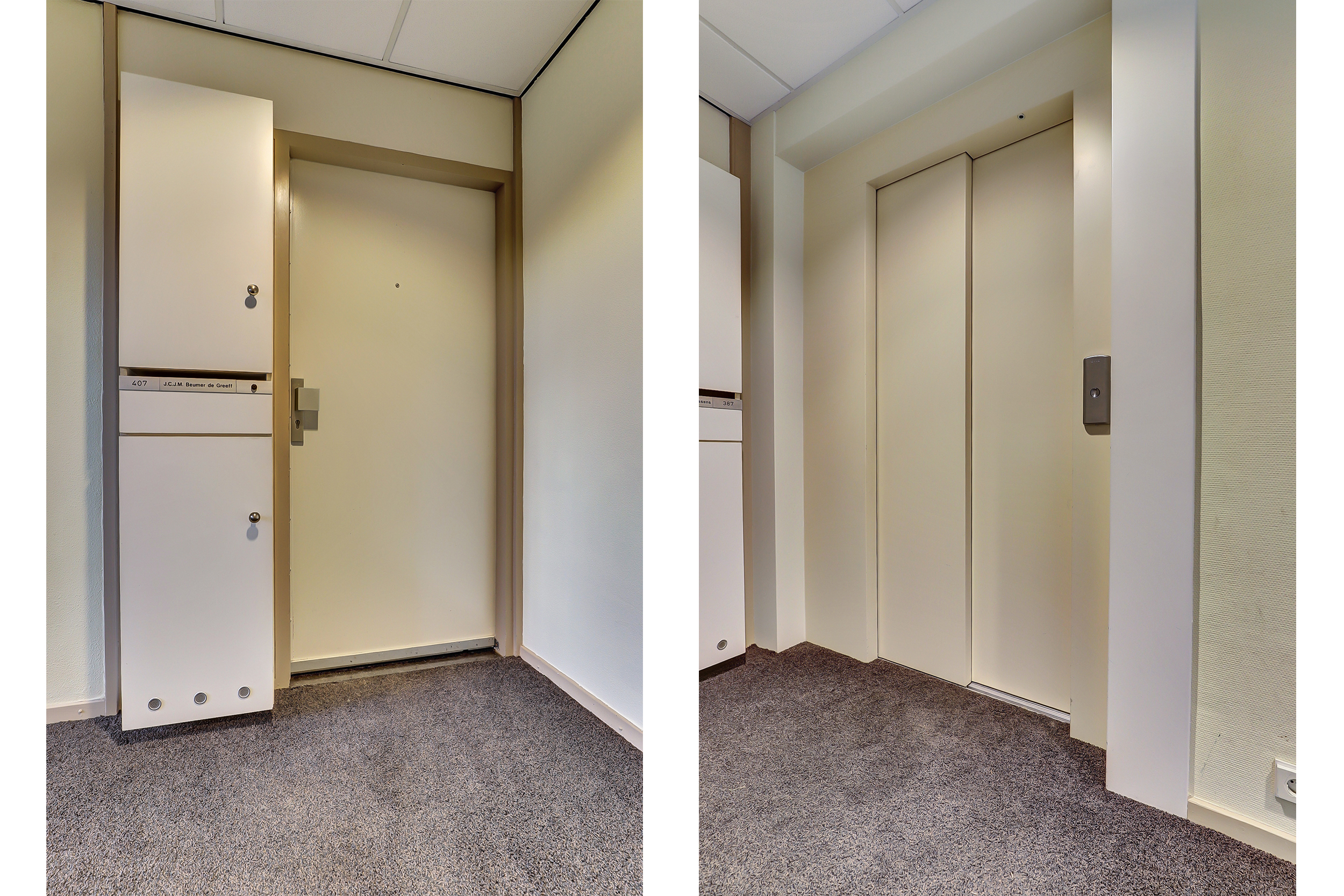 Via de centrale entree met receptie, liften en gezamenlijke voorzieningen bereik je de 4e verdieping (lift 8). De hal van het appartement geeft toegang tot alle vertrekken en is praktisch ingericht met een garderobekast.