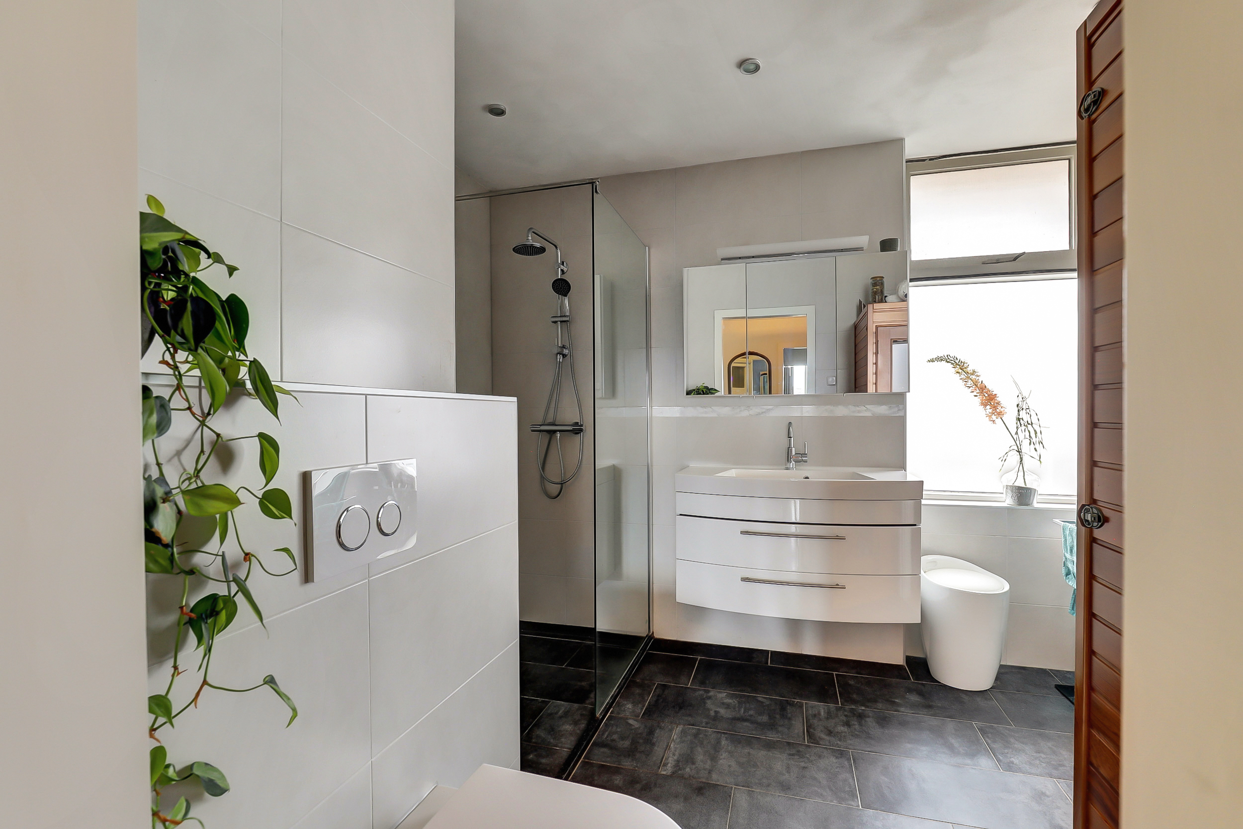 De slaapkamer is rustig gelegen en voorzien van een kledingkast en een recent geplaatst draai-/kiepraam met hor. Aangrenzend bevindt zich de complete badkamer, uitgevoerd met inloopdouche, wastafelmeubel en toilet. Daarnaast is er een separate wasruimte met elektrische boiler (huur)