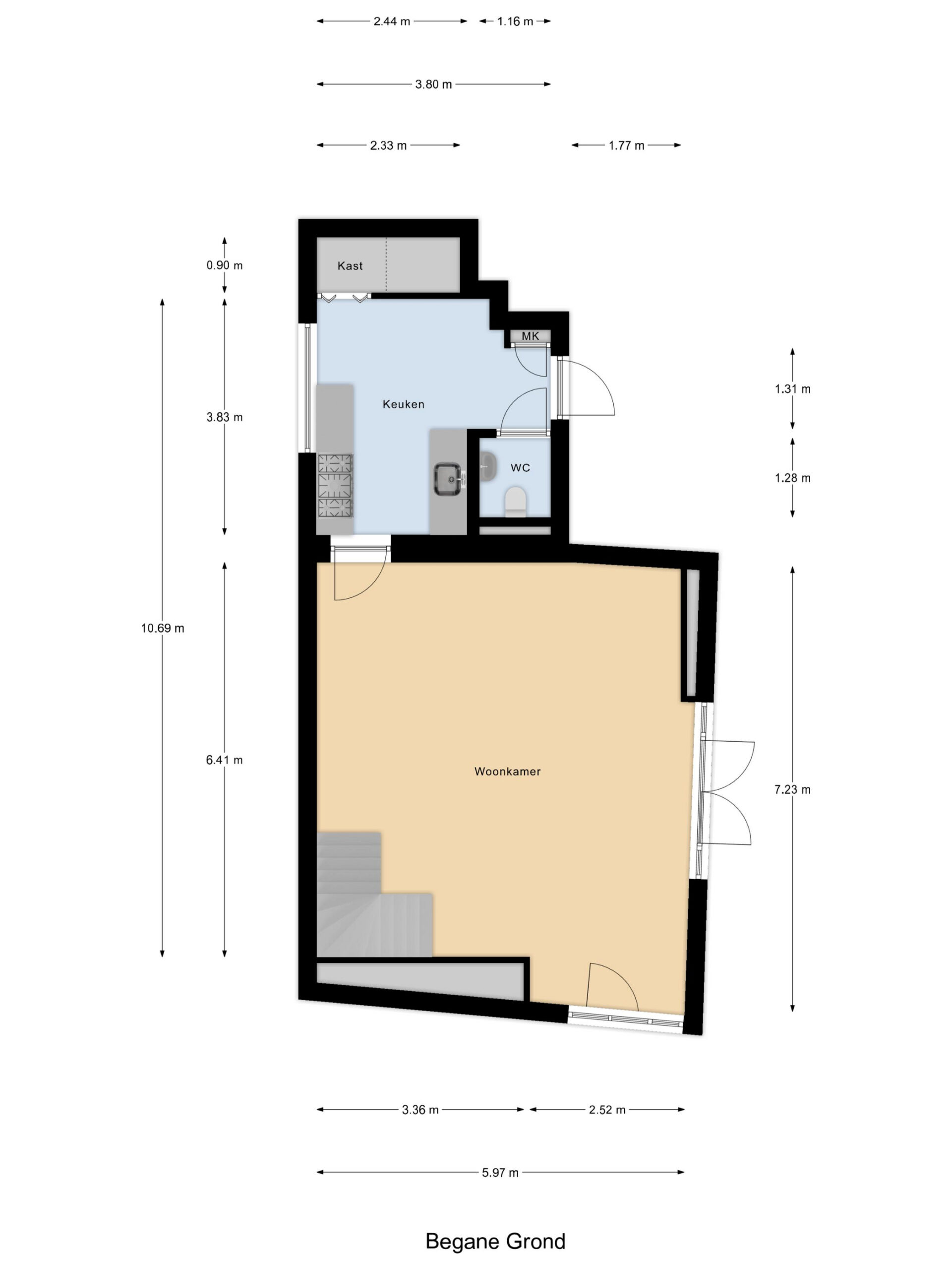 De begane grond opent zich met een sfeervolle woonkamer met openslaande deuren naar de zonnige stadstuin. Hier stroomt het daglicht binnen en loopt het binnenleven moeiteloos over in buiten. Verder geeft deze ruimte toegang tot een dichte keuken en separaat toilet. In de tuin ligt een bijgebouw van maar liefst ca. 39 m² welke is verdeeld in twee ruimtes en hierdoor verrassend veel mogelijkheden biedt: werkruimte, atelier, opslag of zelfs een kleine studio, afhankelijk van je plannen. Dankzij de bestemming ‘centrum’ zijn verschillende combinaties van wonen en werken toegestaan.