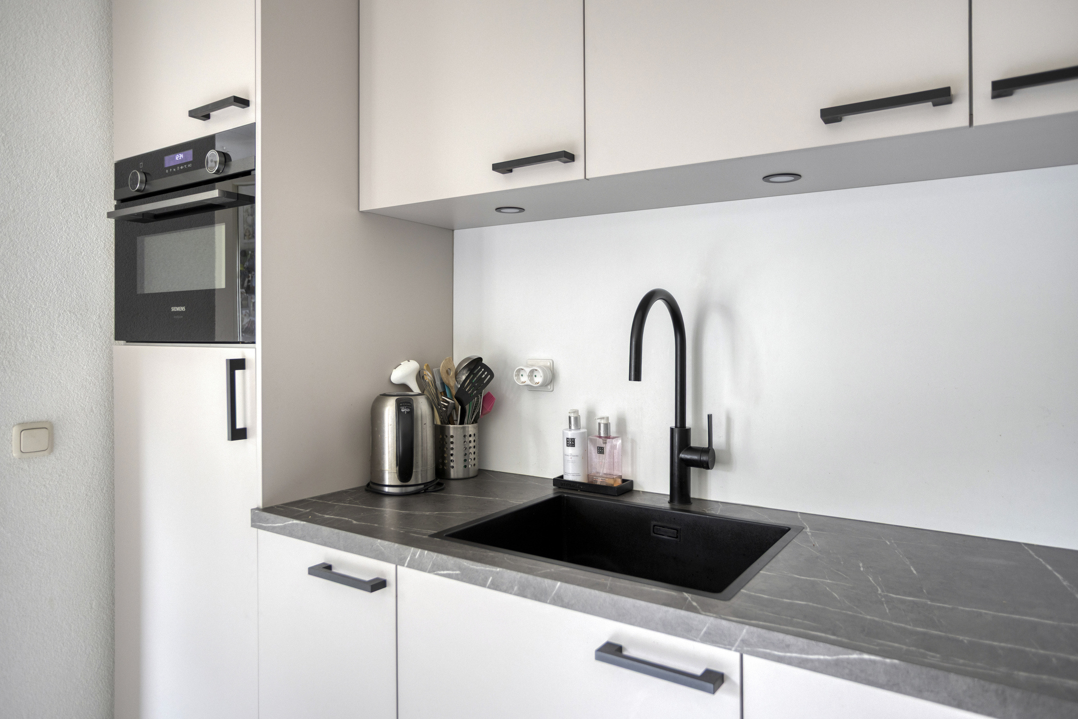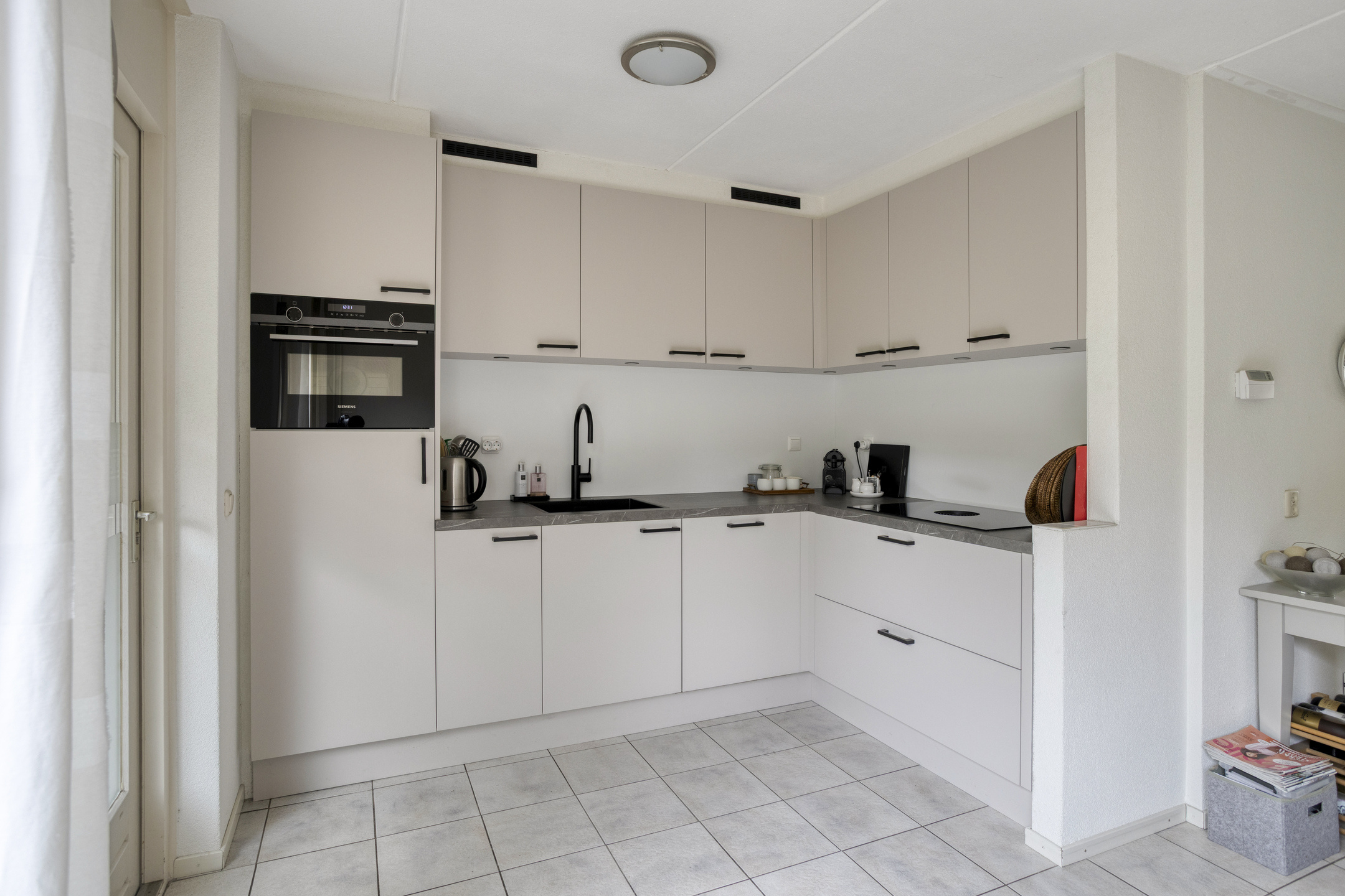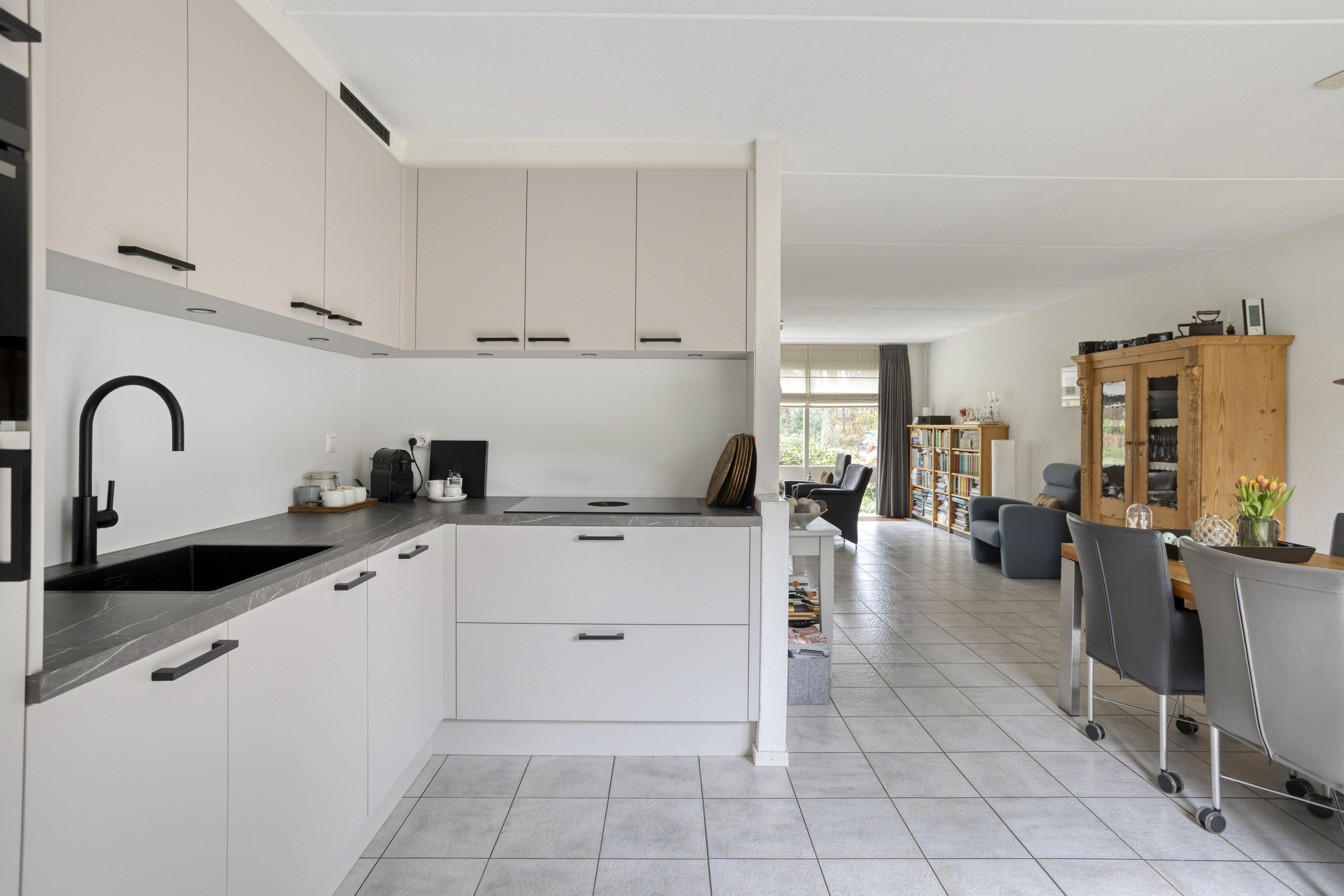Via de eigen oprit en carport bereik je de woning, waar binnen direct het licht de hoofdrol speelt. De begane grond wordt gedragen door licht en openheid, met grote ramen en een directe verbinding naar de tuin via de schuifpui. De L-vormige leefruimte laat zich moeiteloos indelen: een comfortabele zithoek aan de ene zijde, een royale eettafel als centraal middelpunt. Hier vloeien wonen en samenzijn vanzelf in elkaar over. De moderne keuken, recent volledig vernieuwd, sluit hier naadloos op aan en maakt koken tot een vanzelfsprekend onderdeel van het dagelijks leven.