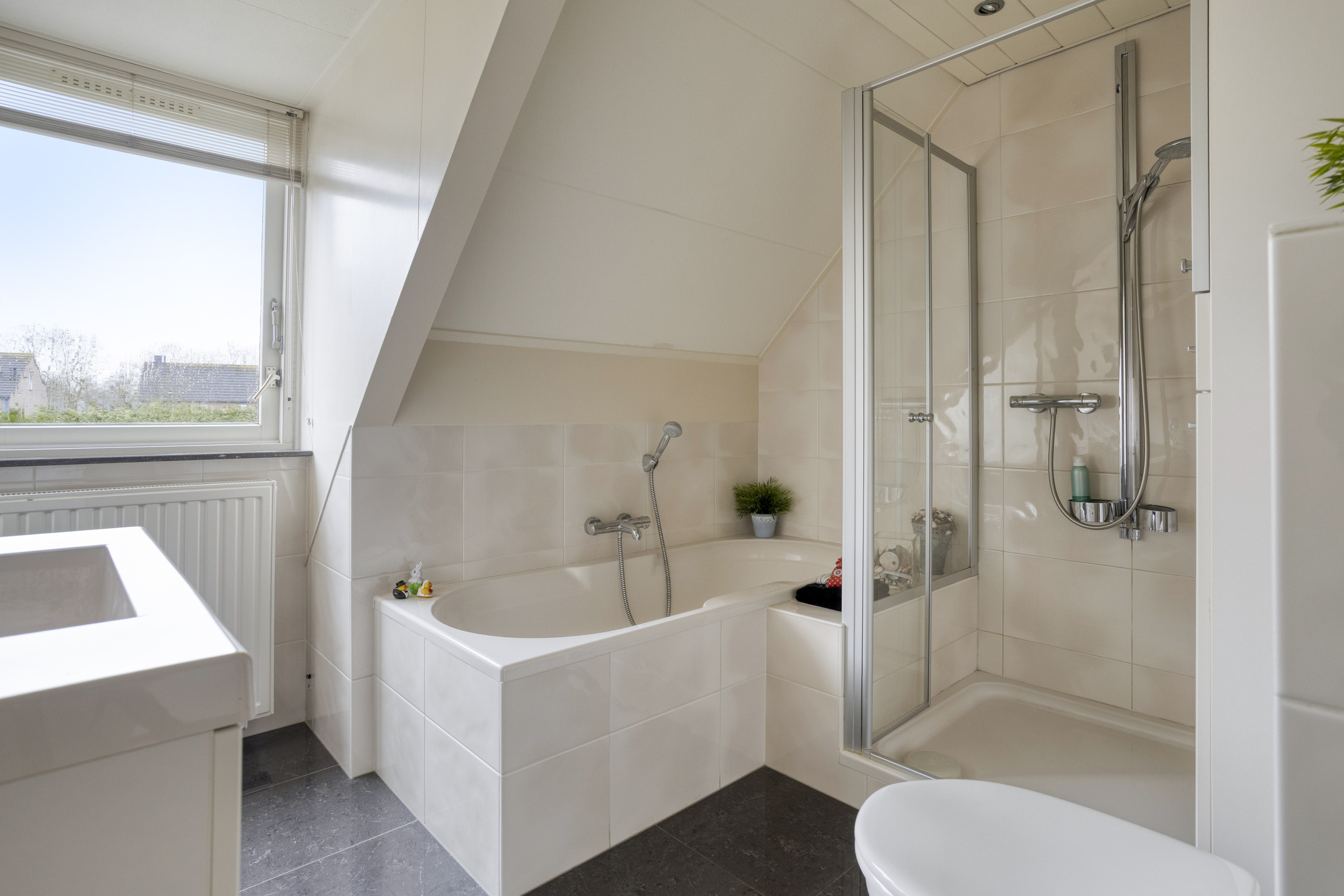 Op de eerste verdieping bevinden zich drie goed bemeten slaapkamers en een badkamer voorzien van douche, ligbad, toilet en wastafelmeubel. De ruimtes zijn efficiënt ingedeeld en bieden volop mogelijkheden voor een groeiend gezin, een thuiswerkplek of hobbyruimte.