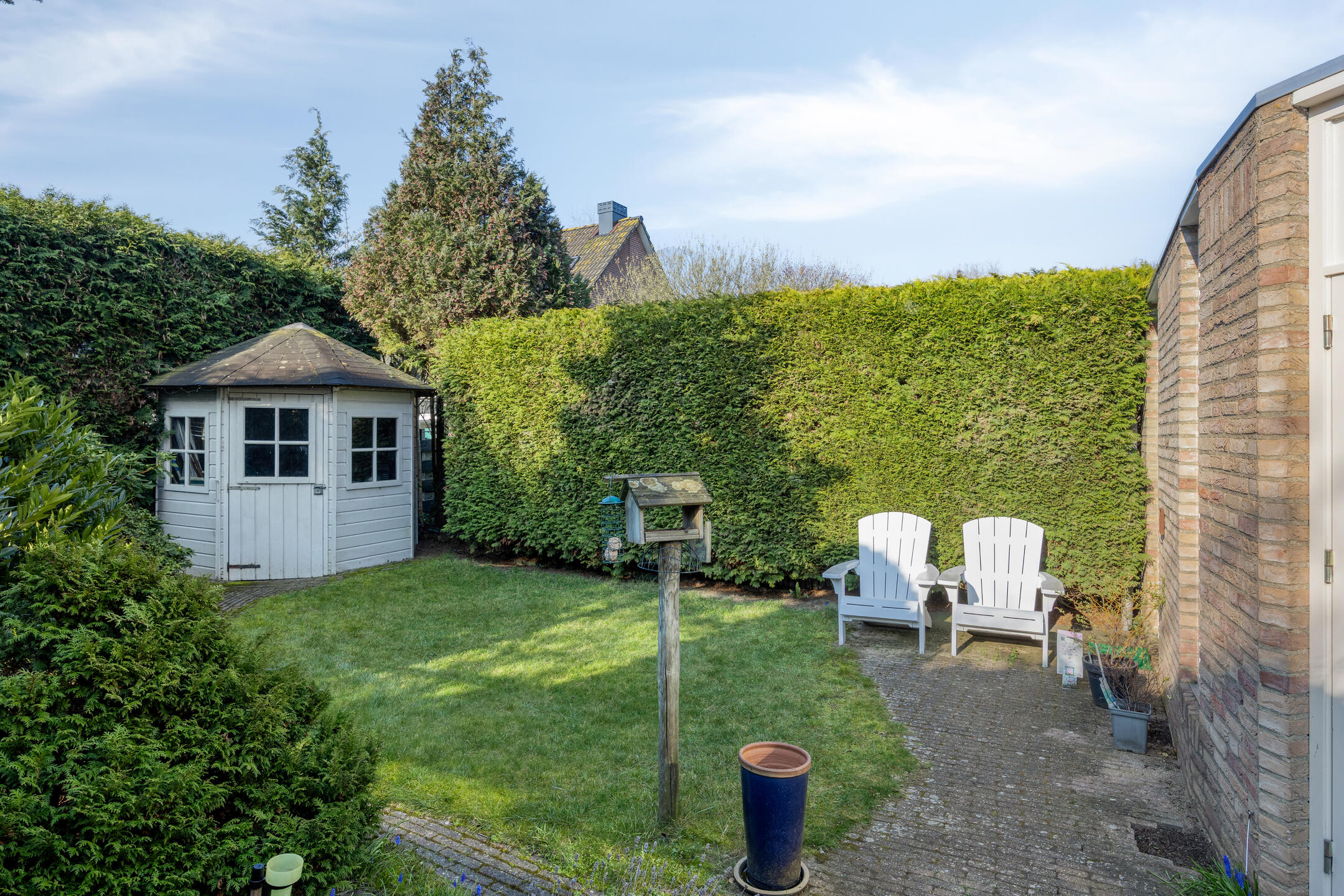 Buiten wacht de tuin op het zuidwesten: een plek waar de zon vanaf de middag tot in de avond aanwezig is. Hier schuift het leven moeiteloos naar buiten, of het nu gaat om een rustige ochtend, spelende kinderen of lange zomeravonden met vrienden. Daarnaast is er een tuinhuis aanwezig voor opslagruimte.