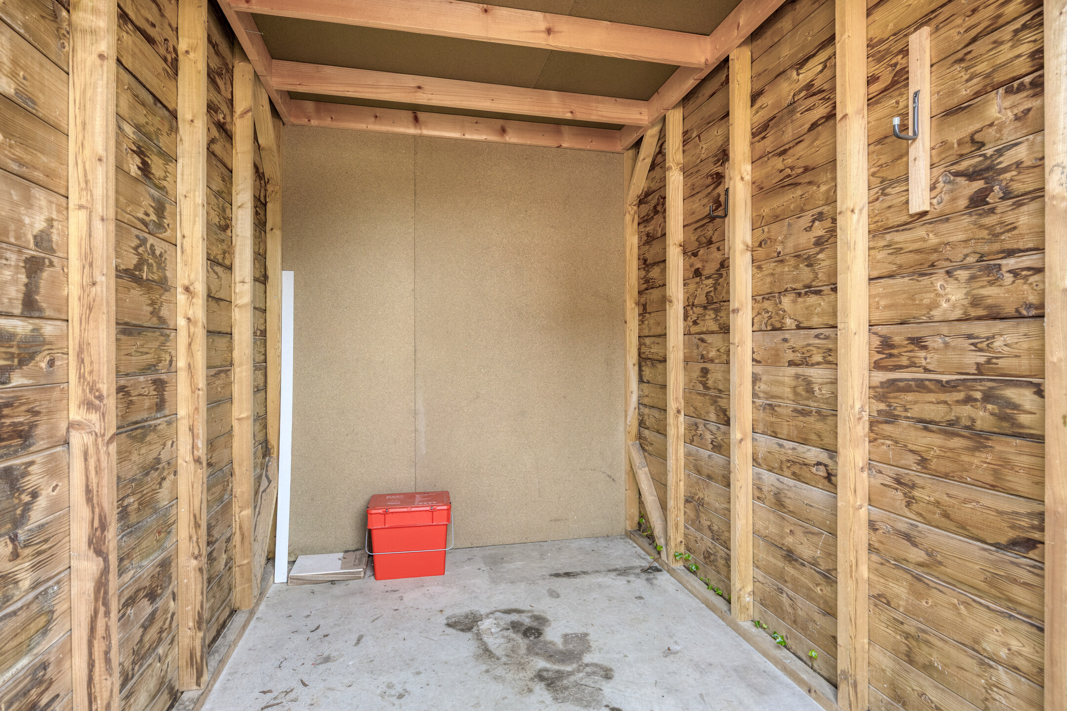 Buiten vind je een fijne tuin van circa 70 m² met zon- en schaduwplekjes, achterom Ć©n een handige berging met ruimte voor meerdere fietsen. Autoās parkeren? Dat doe je gewoon op je eigen plek op het mandelige terrein achter de woning.