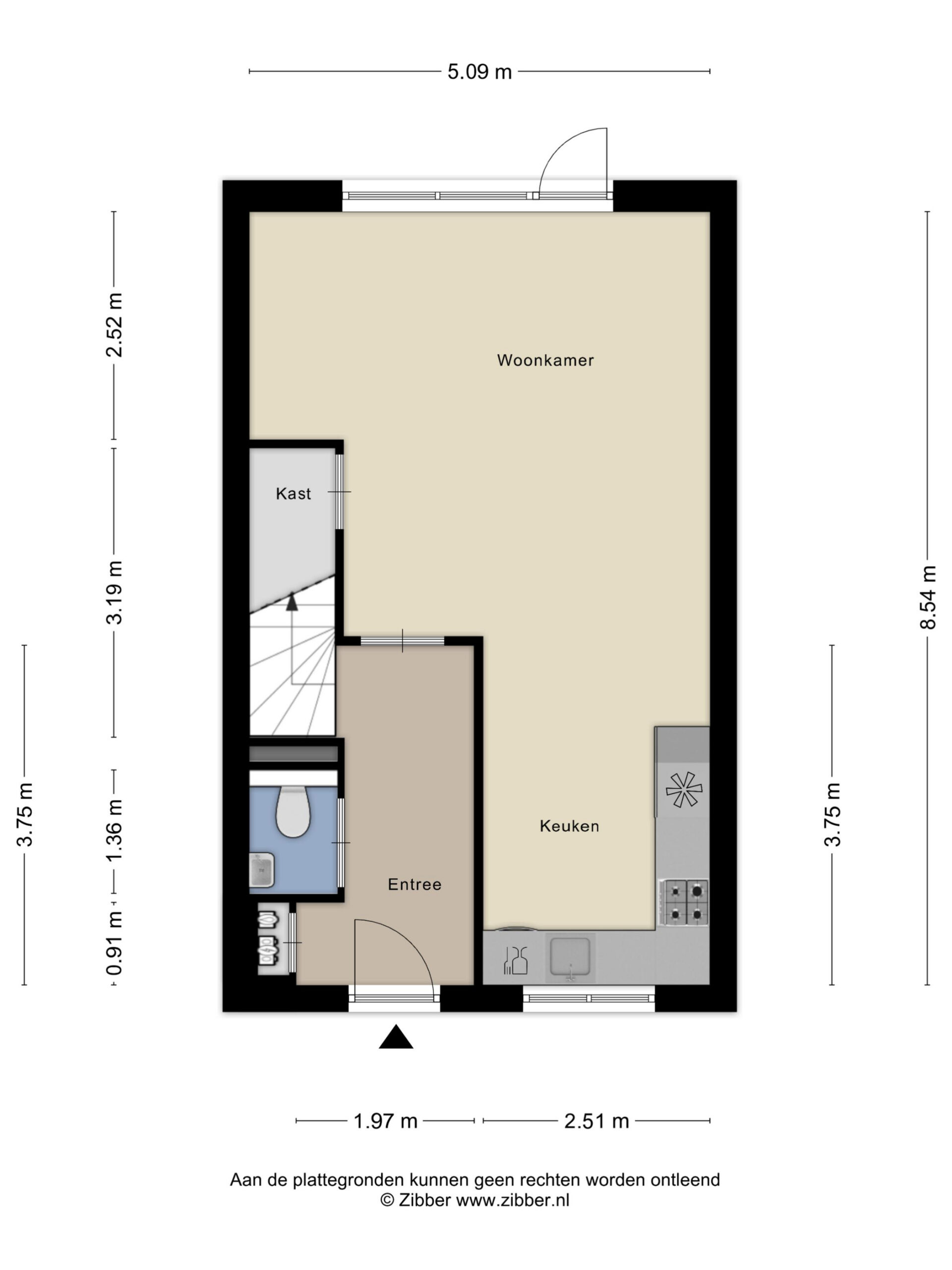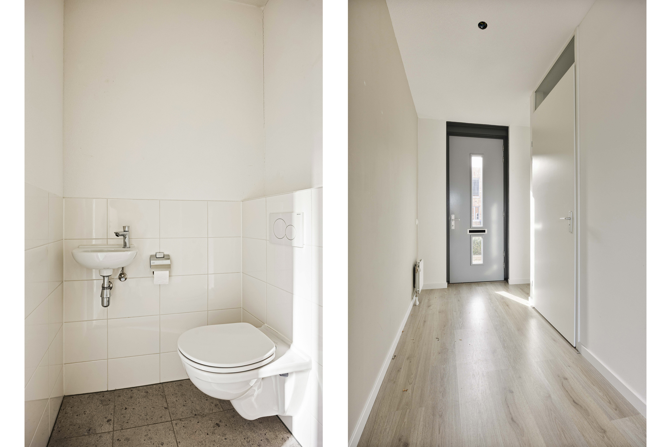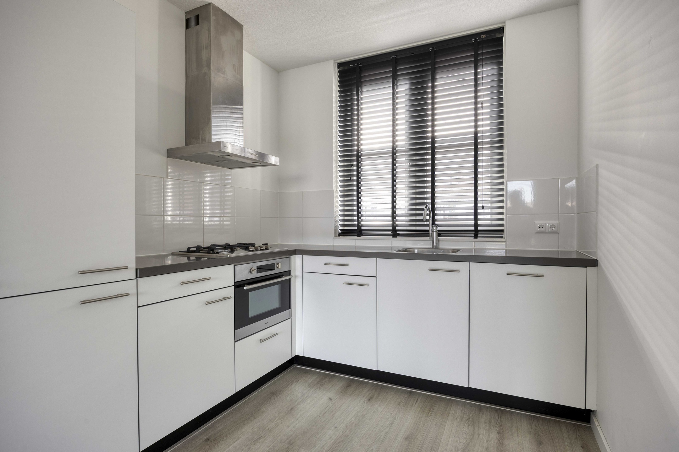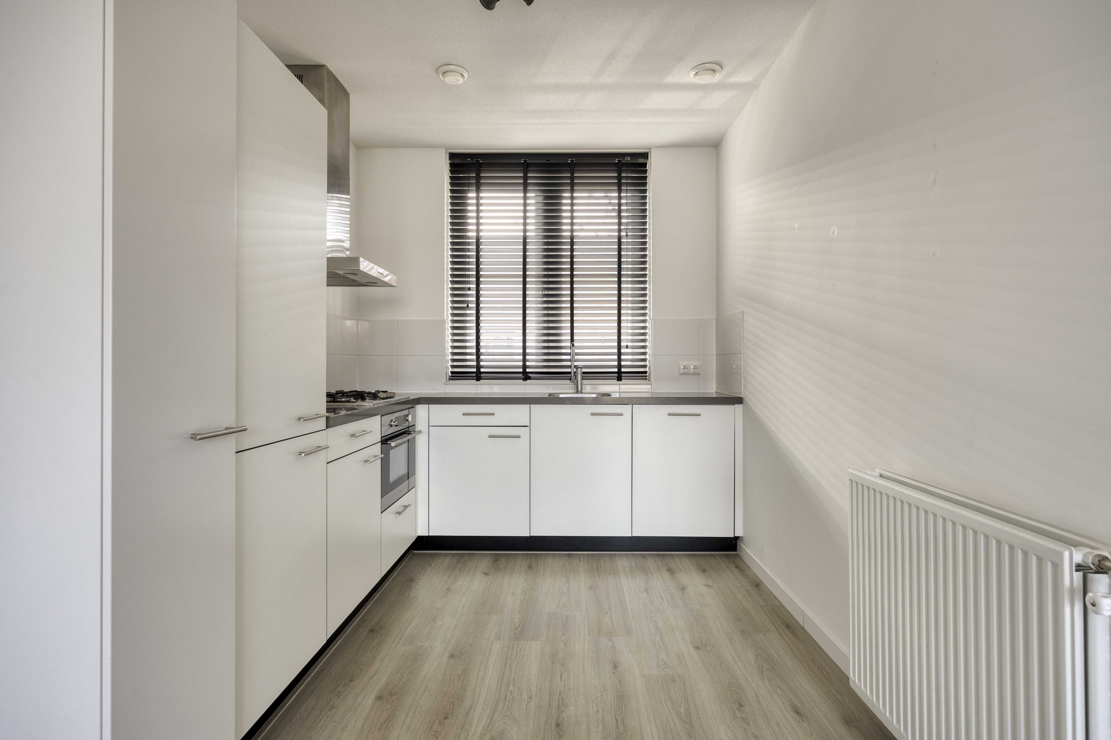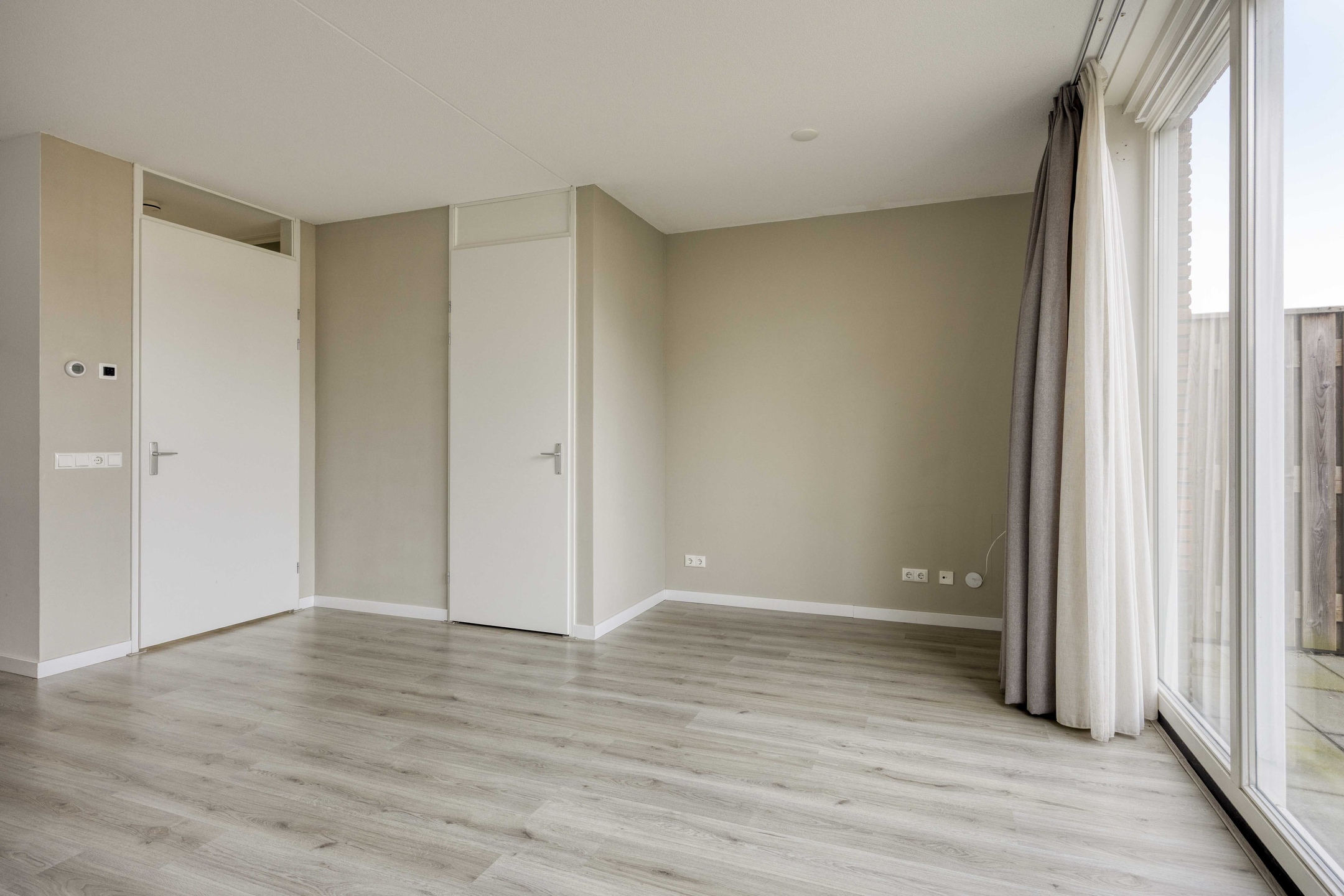 Je betreedt de woning via een nette hal met garderobe, meterkast en modern toilet. Vanuit hier stap je de leefruimte in die zich richt op de achtertuin. Grote raampartijen en een loopdeur zorgen voor een sterke verbinding met buiten en laten het daglicht rijkelijk binnenstromen. Hier leef je open, licht en comfortabel. De keuken positioneert zich aan de voorzijde en kijkt uit over de straat. De opstelling werkt praktisch, biedt voldoende werkruimte en sluit naadloos aan op het dagelijkse ritme van koken, leven en ontmoeten.