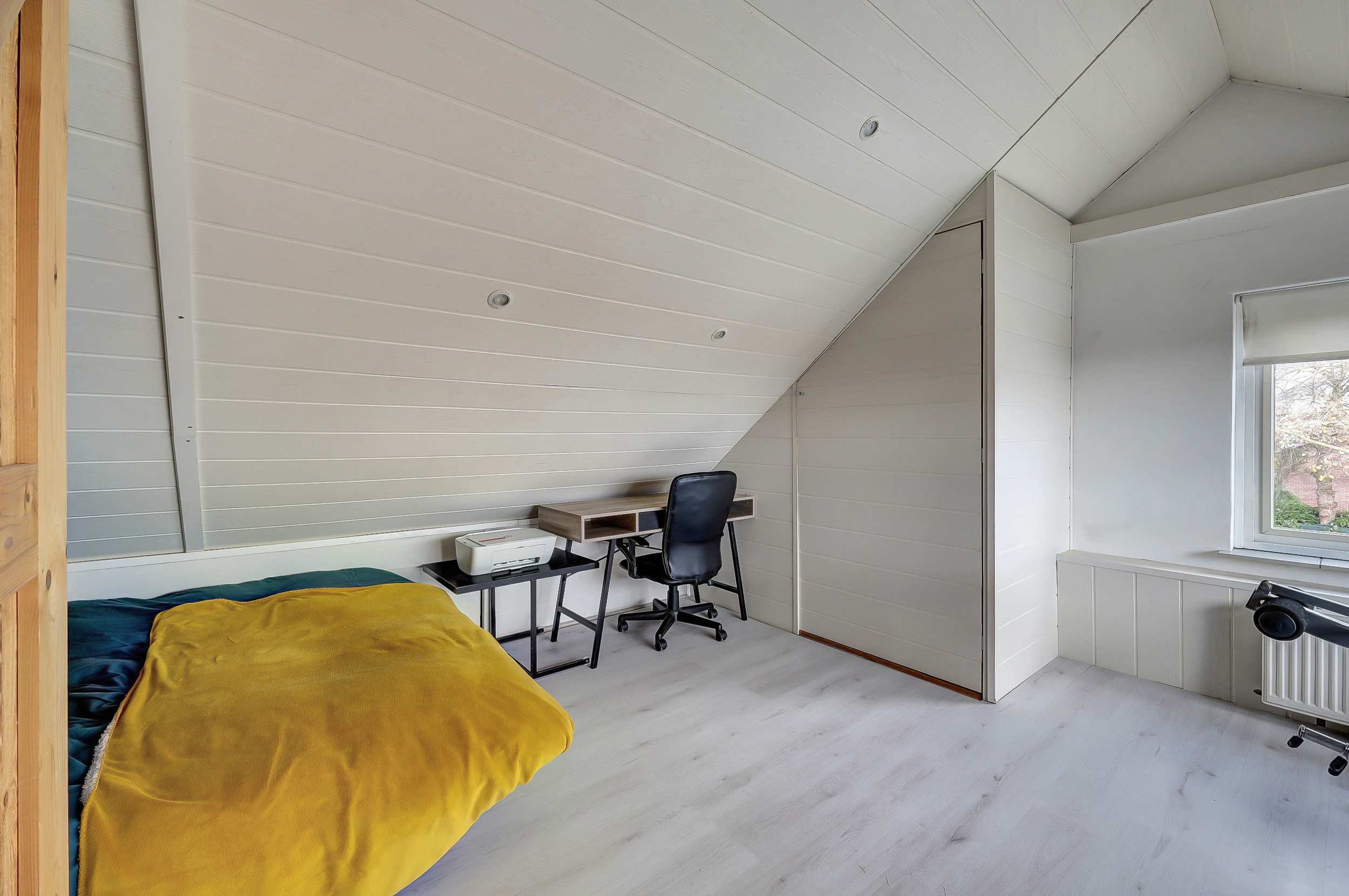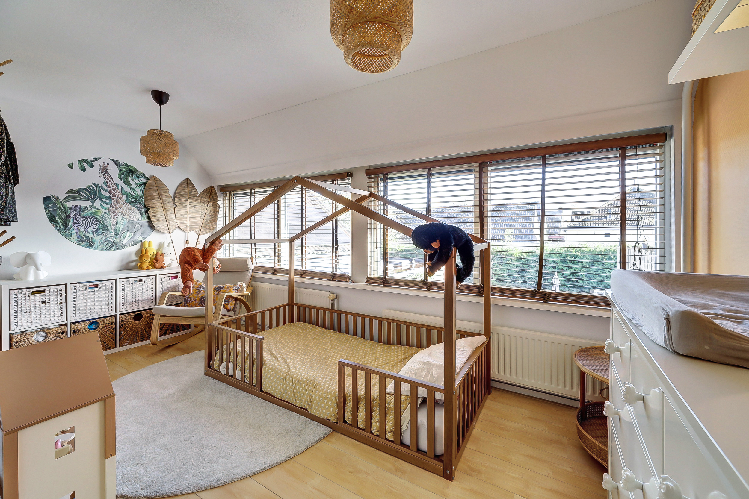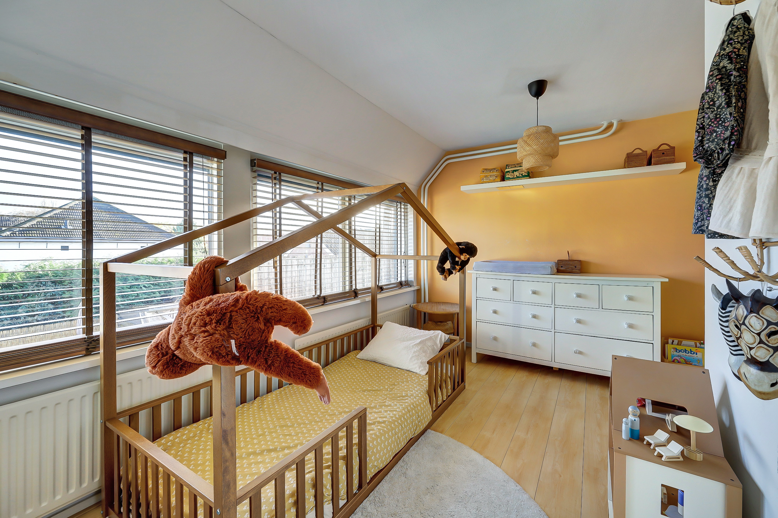 Wat de indeling betreft: op de eerste verdieping bevinden zich drie slaapkamers, perfect voor kinderen of als thuiskantoor, terwijl de ruime kamer op de tweede verdieping, compleet met een charmante dakkapel, garant staat voor een royale beleving en een overvloed aan natuurlijk licht. De bovenverdieping is ook uitgerust met elektrisch bedienbare rolluiken en alle ramen zijn voorzien van op maat gemaakte zwarte jaloezieën – een perfecte mix tussen functionaliteit en stijl.