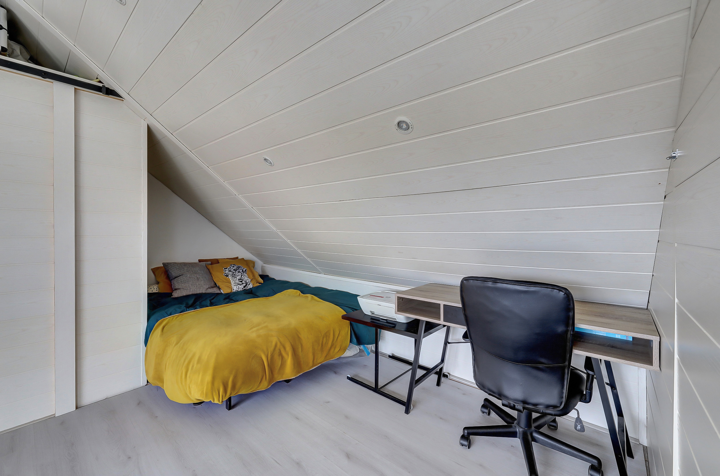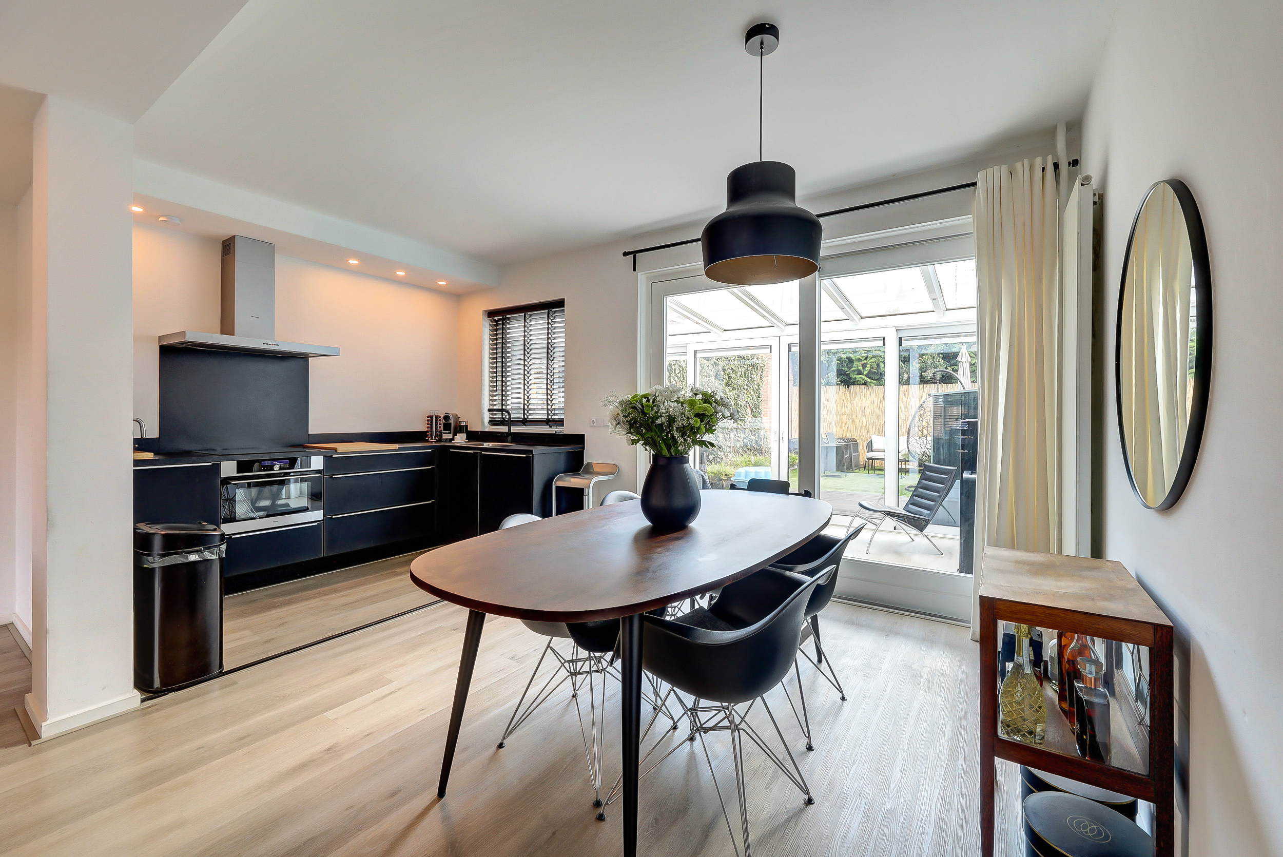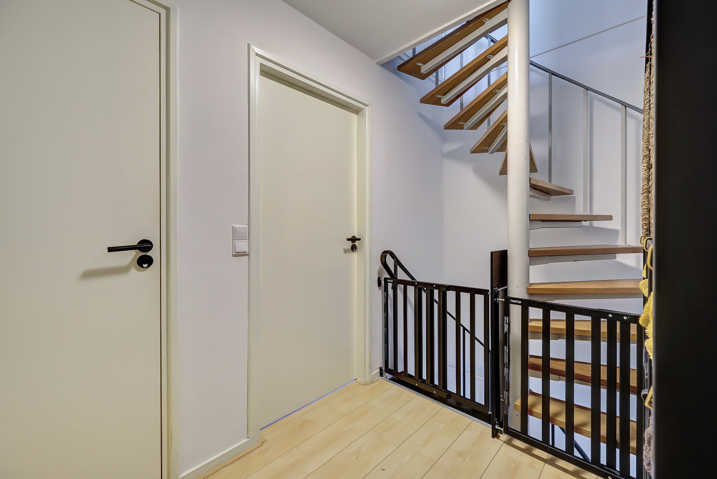 Wat de indeling betreft: op de eerste verdieping bevinden zich drie slaapkamers, perfect voor kinderen of als thuiskantoor, terwijl de ruime kamer op de tweede verdieping, compleet met een charmante dakkapel, garant staat voor een royale beleving en een overvloed aan natuurlijk licht. De bovenverdieping is ook uitgerust met elektrisch bedienbare rolluiken en alle ramen zijn voorzien van op maat gemaakte zwarte jaloezieën – een perfecte mix tussen functionaliteit en stijl.