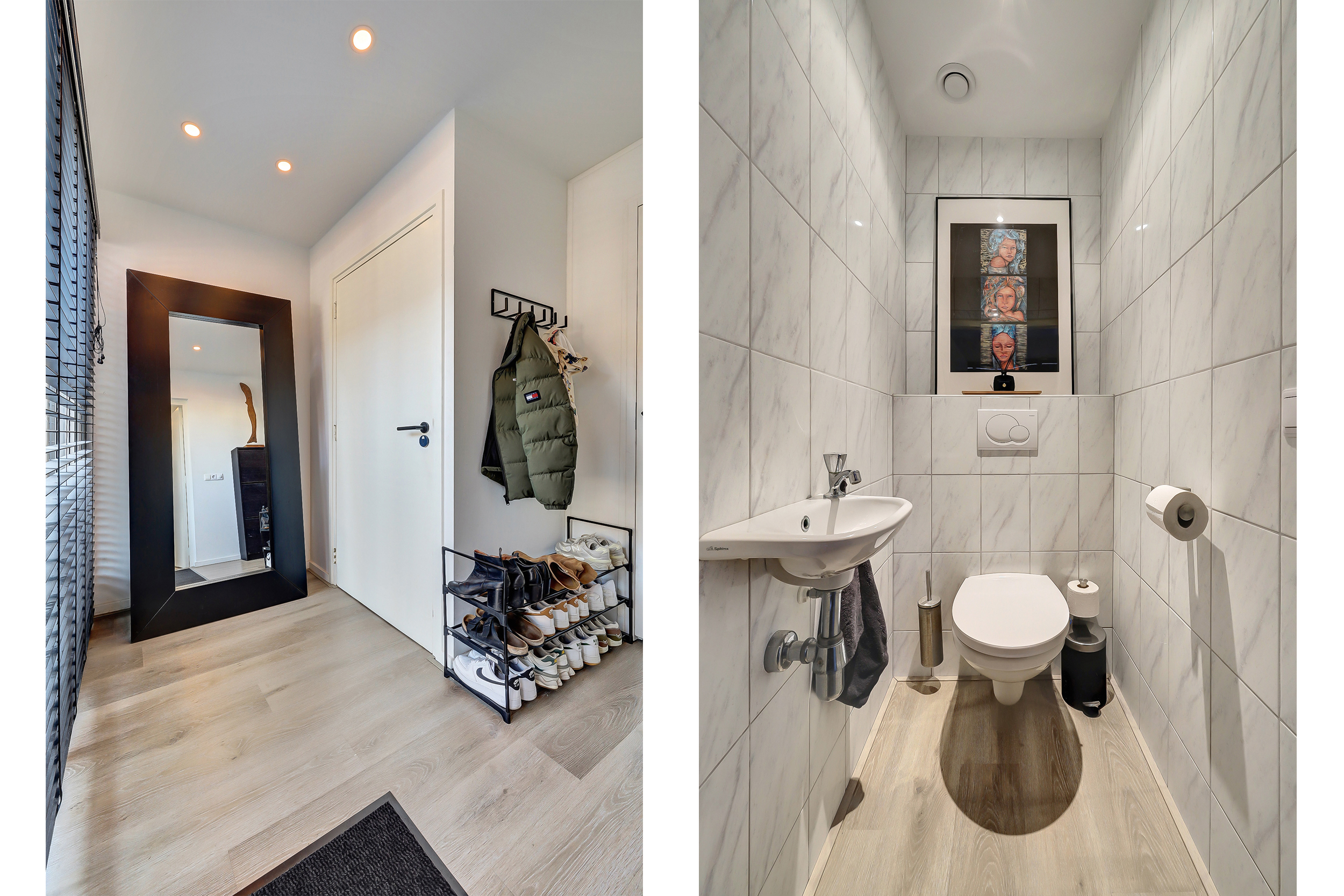 Vanaf de fraaie oprit, waar u maar liefst drie parkeergelegenheden aantreft op een professioneel aangelegde voortuin, valt het oog meteen op de innovatieve tuinverlichting. Deze schakelt automatisch in bij het vallen van de avond en laat u via een handige app de uitschakeltijd naar wens instellen. U rijdt binnen en voelt zich meteen welkom!
