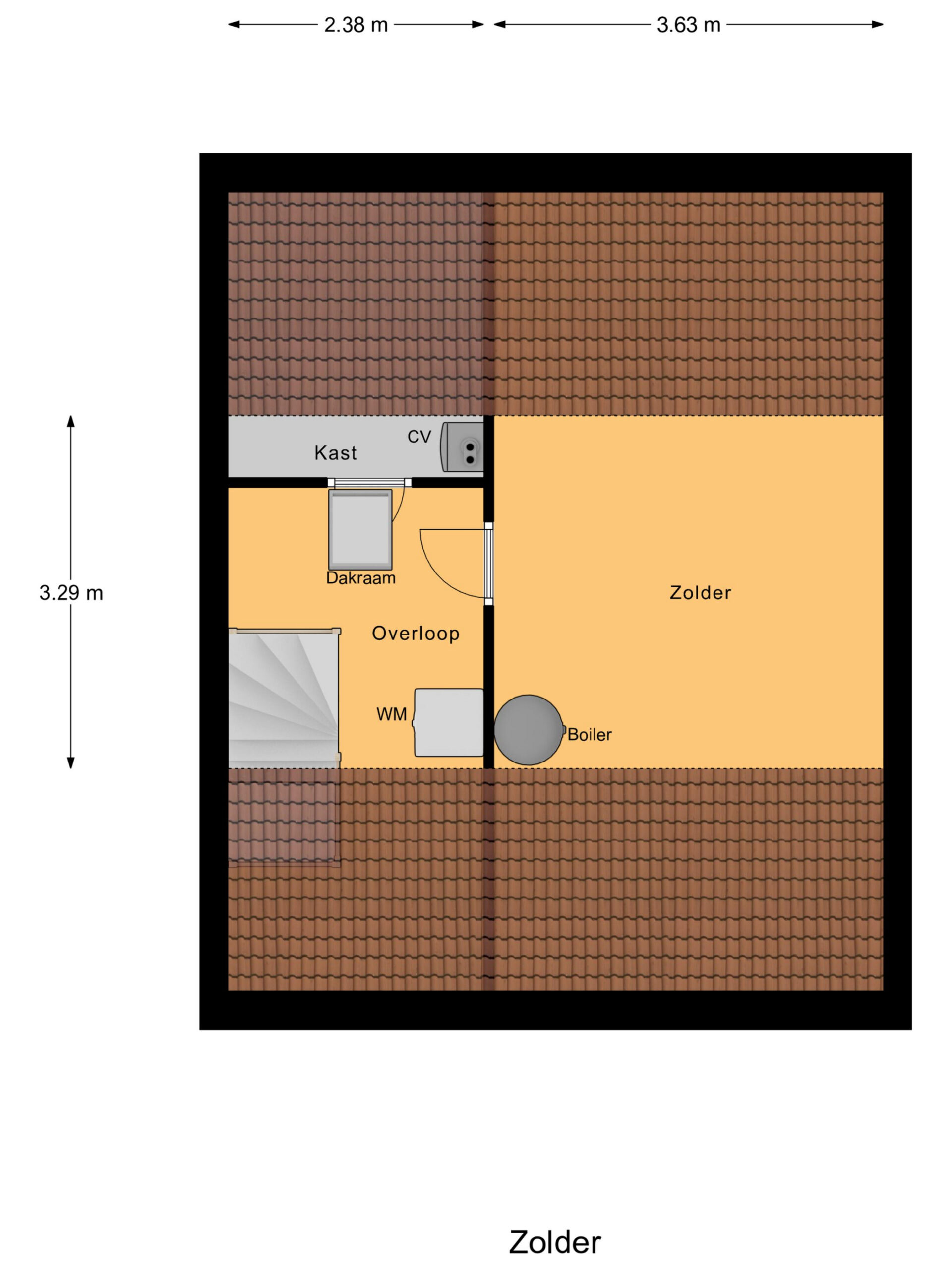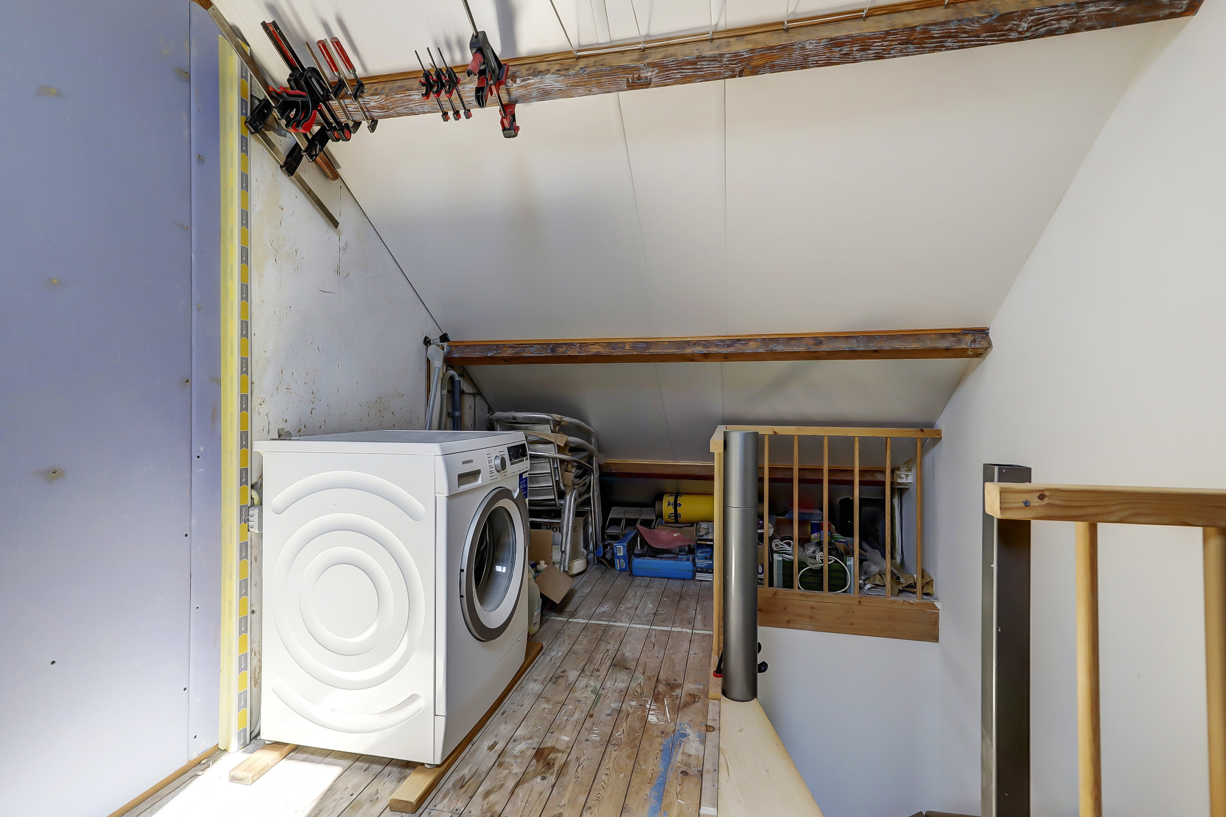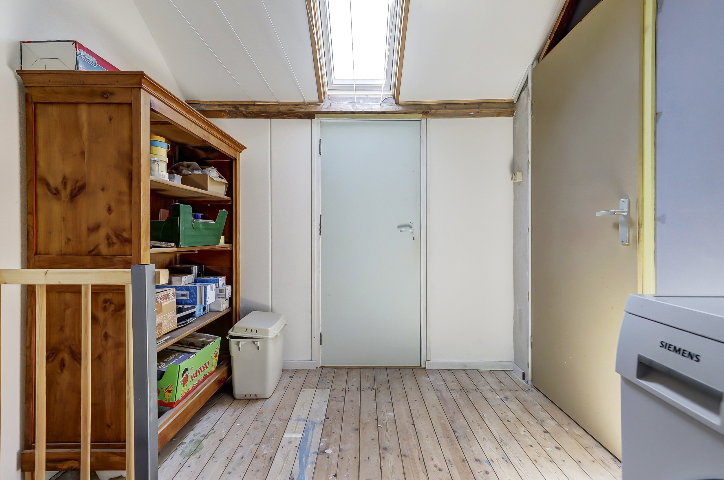 Deze verdieping is slim ingedeeld door de huidige eigenaar. De ruime zolder is verdeeld in een voorzolder (met dakraam) met witgoedaansluitingen en een grote ruimte die op dit moment als bergzolder wordt gebruikt. Het dak is over de volle breedte geïsoleerd en afgewerkt met decoratieve witte isolatieplaten, wat niet alleen bijdraagt aan de energiezuinigheid maar ook zorgt voor een nette, afgewerkte uitstraling. Op de voorzolder zijn de witgoedaansluitingen en een afgesloten ruimte aanwezig, waar de cv-ketel (Vaillant 1989) en omvormer van de zonnepanelen uit het zicht gesitueerd zijn. Uiteraard blijft er ook nog wat bergruimte over.
