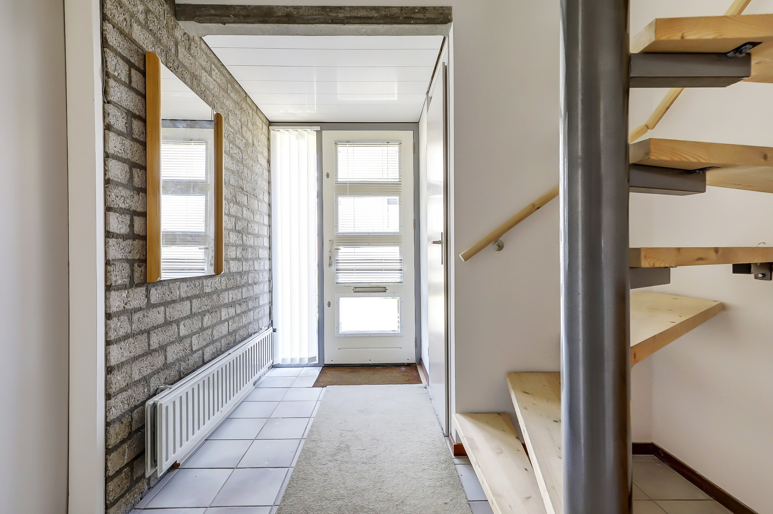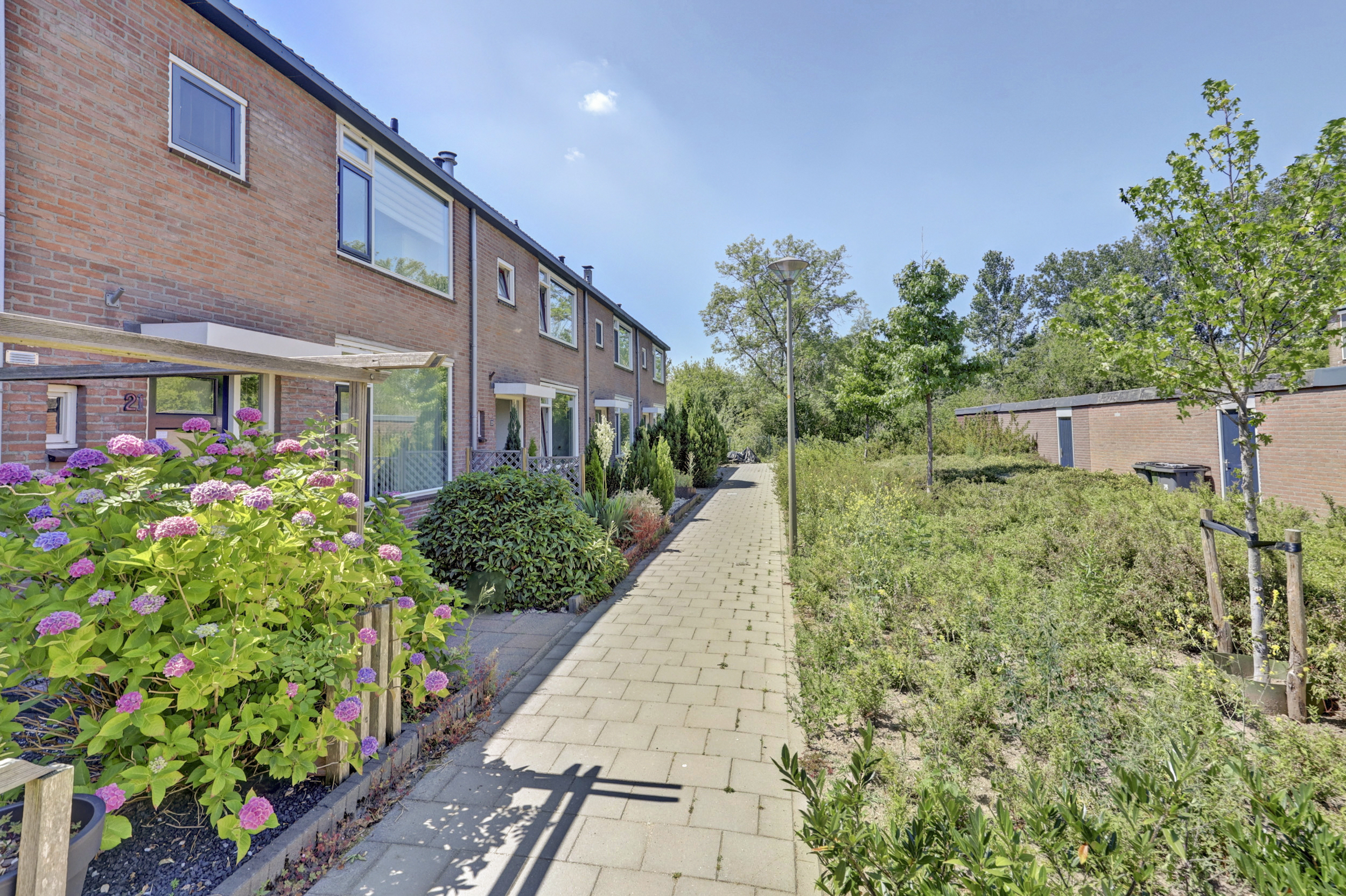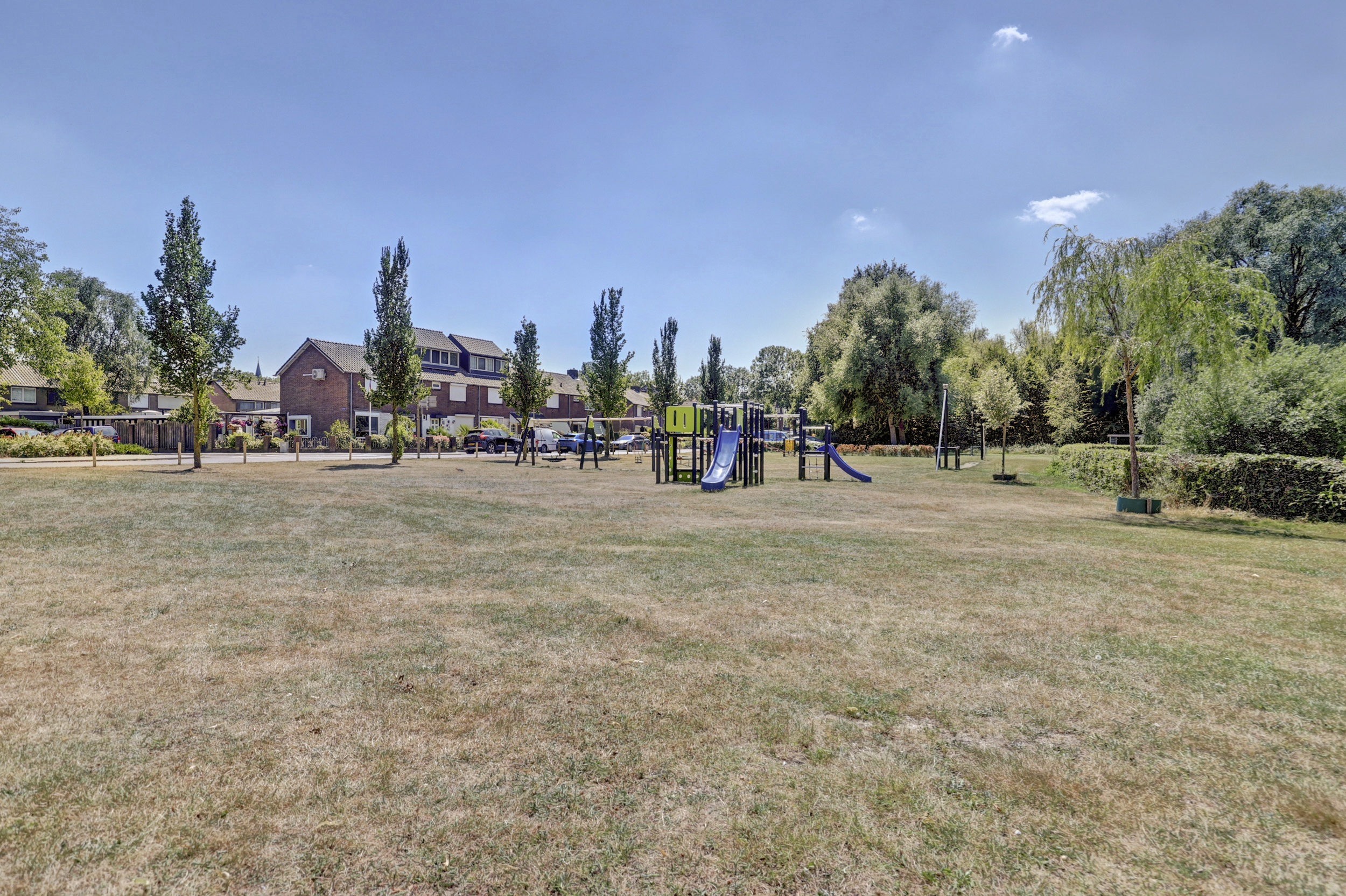 Terug beneden stap je via de keukendeur de onderhoudsvrije achtertuin in. Achterin staat een royale stenen berging over de volledige breedte van de tuin, met toegang tot de achterom. Een elektrisch zonnescherm zorgt voor schaduw op zonnige dagen dankzij de gunstige ligging op het zuiden.