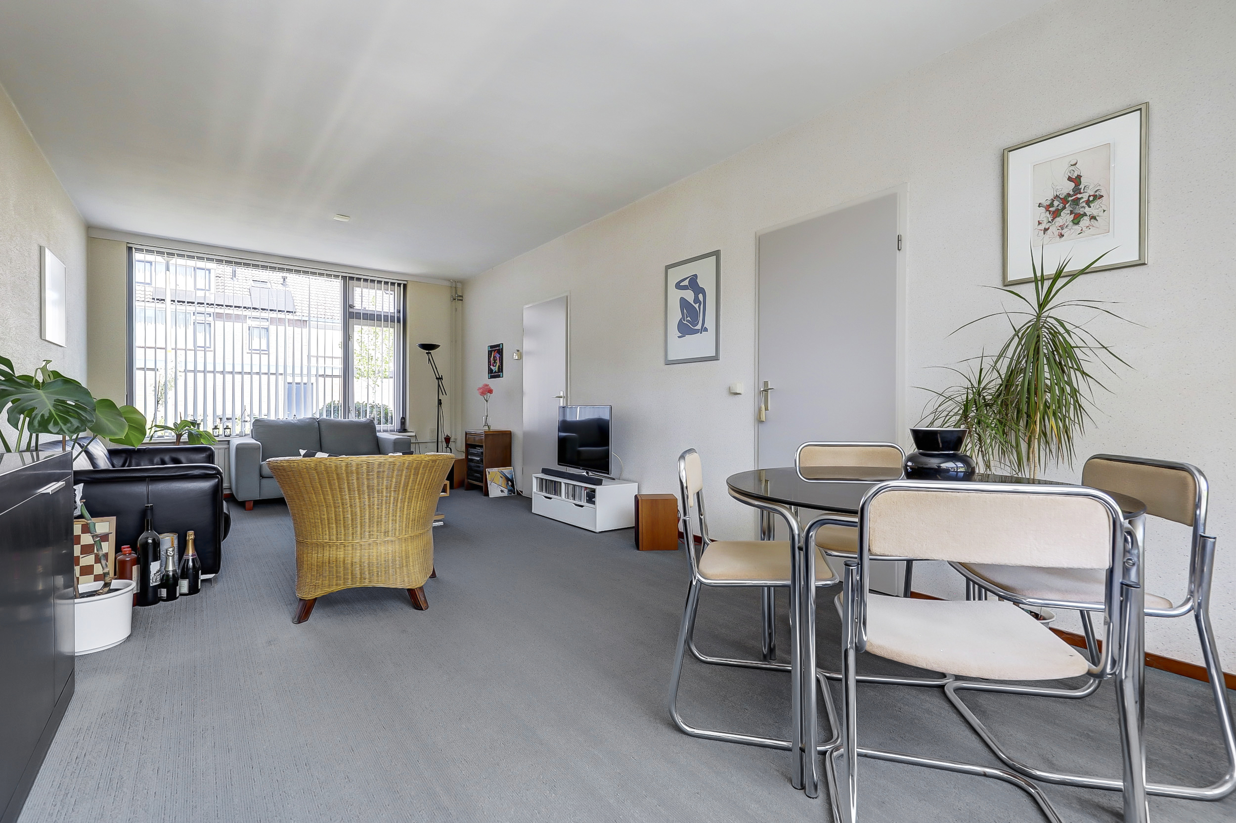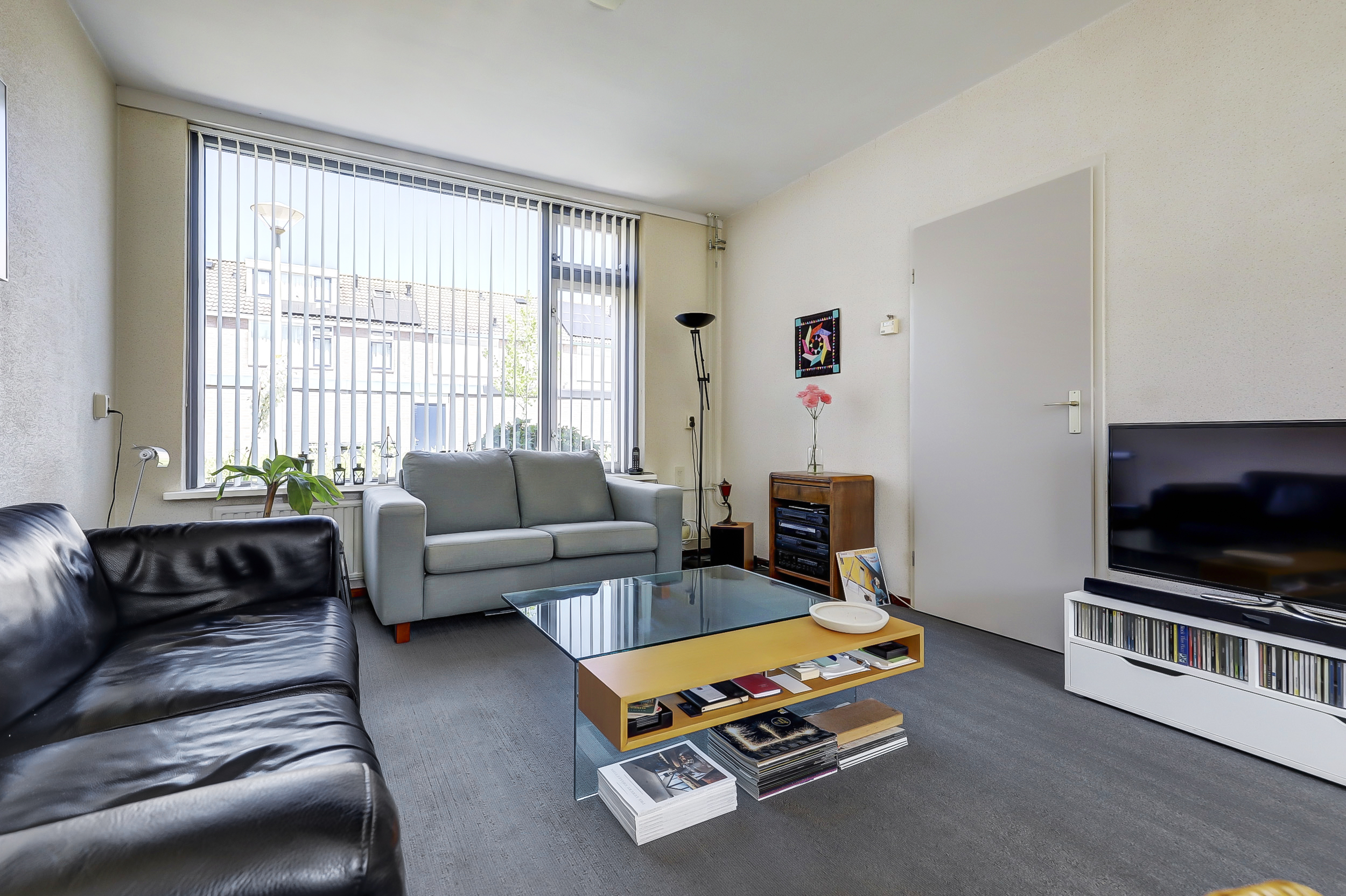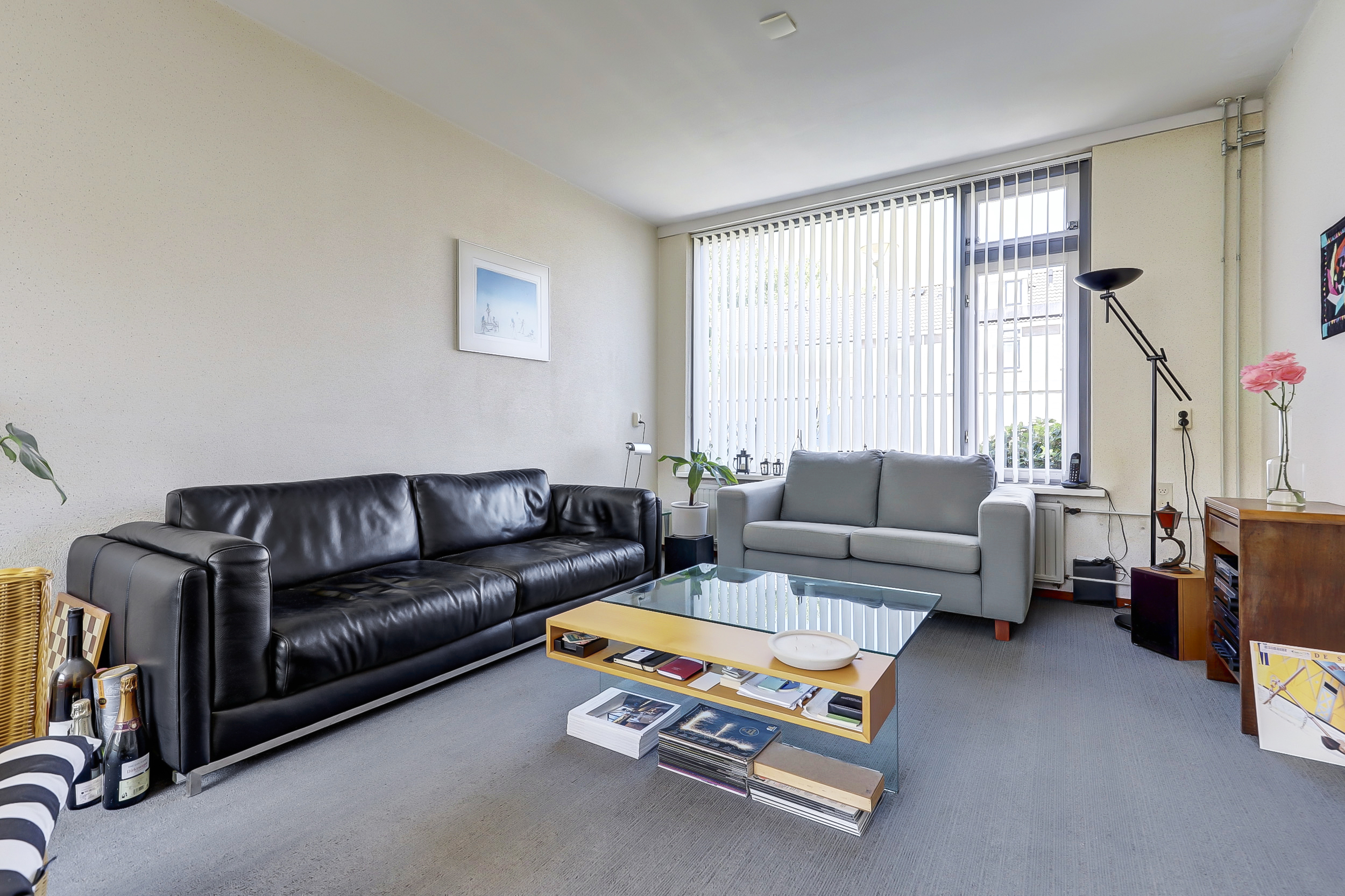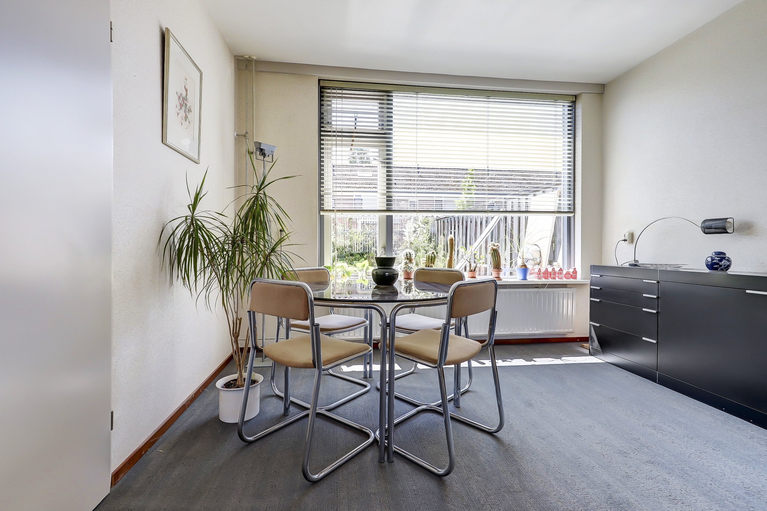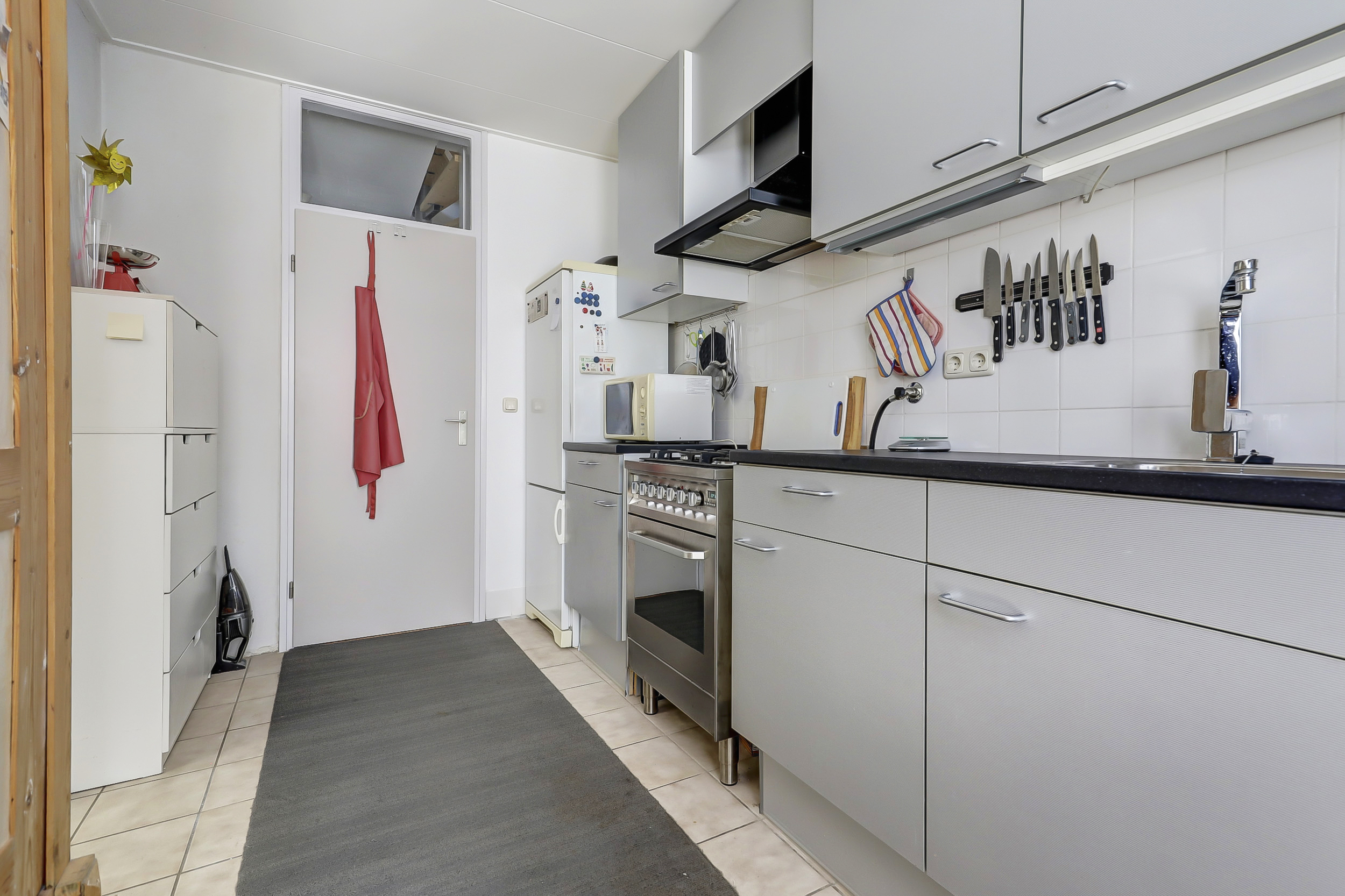 Via de voordeur kom je in de hal met meterkast, een verzorgde toiletruimte met fontein, trapopgang naar de 1e verdieping en toegang tot de woonkamer en keuken. De ruime woonkamer is heerlijk licht dankzij de brede raampartijen. De nette Bruynzeel keuken (model Atlas Zebrano, ontworpen naar een idee van Jan des Bouvrie) is praktisch ingericht met afzuigkap en losstaande apparatuur. Via de achterdeur loop je zo de tuin in. We lopen eerst terug naar de gang en nemen de trap naar……