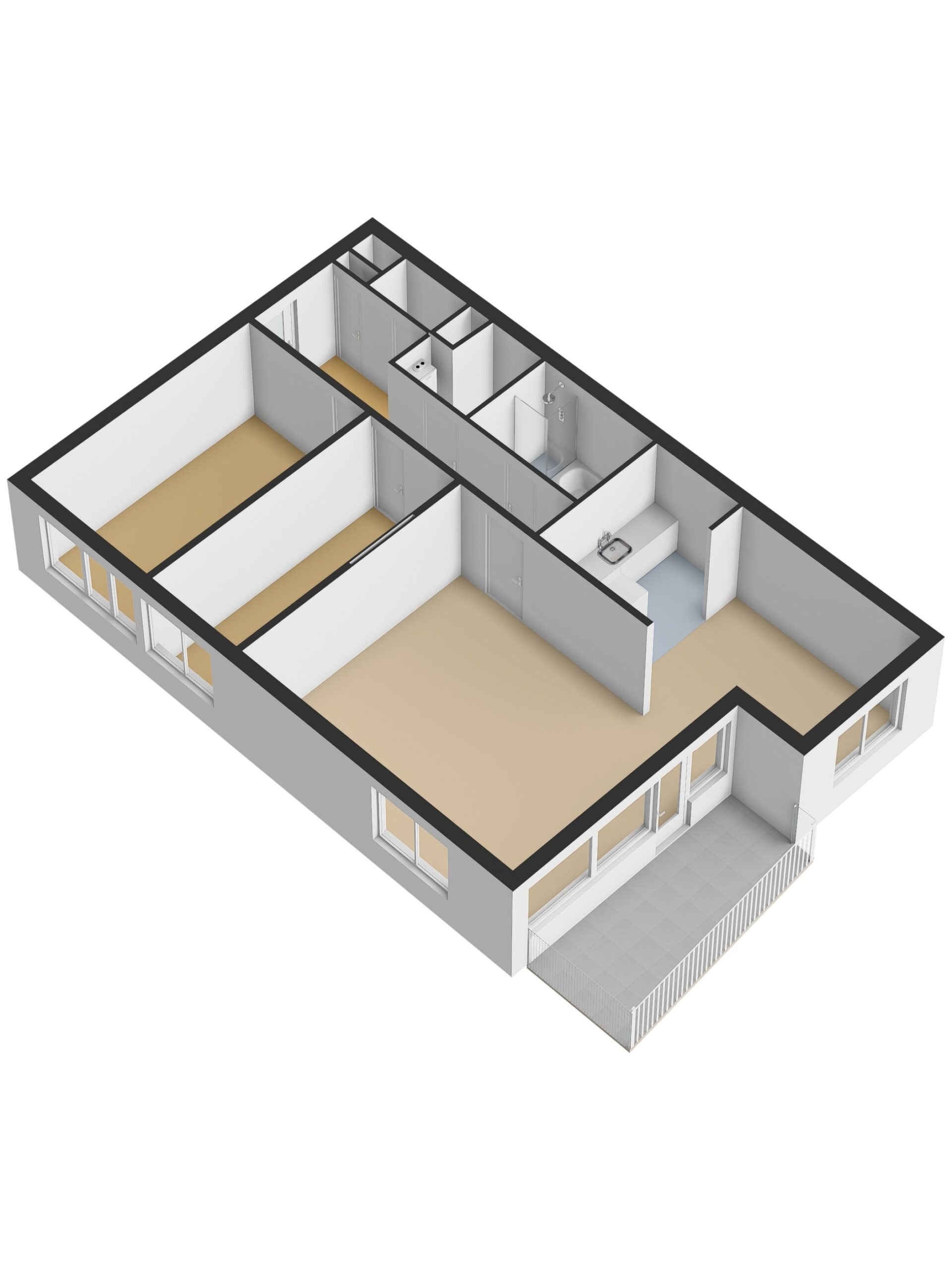 Er zijn twee slaapkamers van ca. 15 m2 en 11 m2. Vanuit de woonkamer is de kleinste slaapkamer middels openslaande dubbele deuren te bereiken; deze ruimte kan dus in plaats van een slaapkamer, ook een verruiming betekenen van de woonkamer. Uiteraard zijn beide slaapkamers ook via de gang te bereiken.