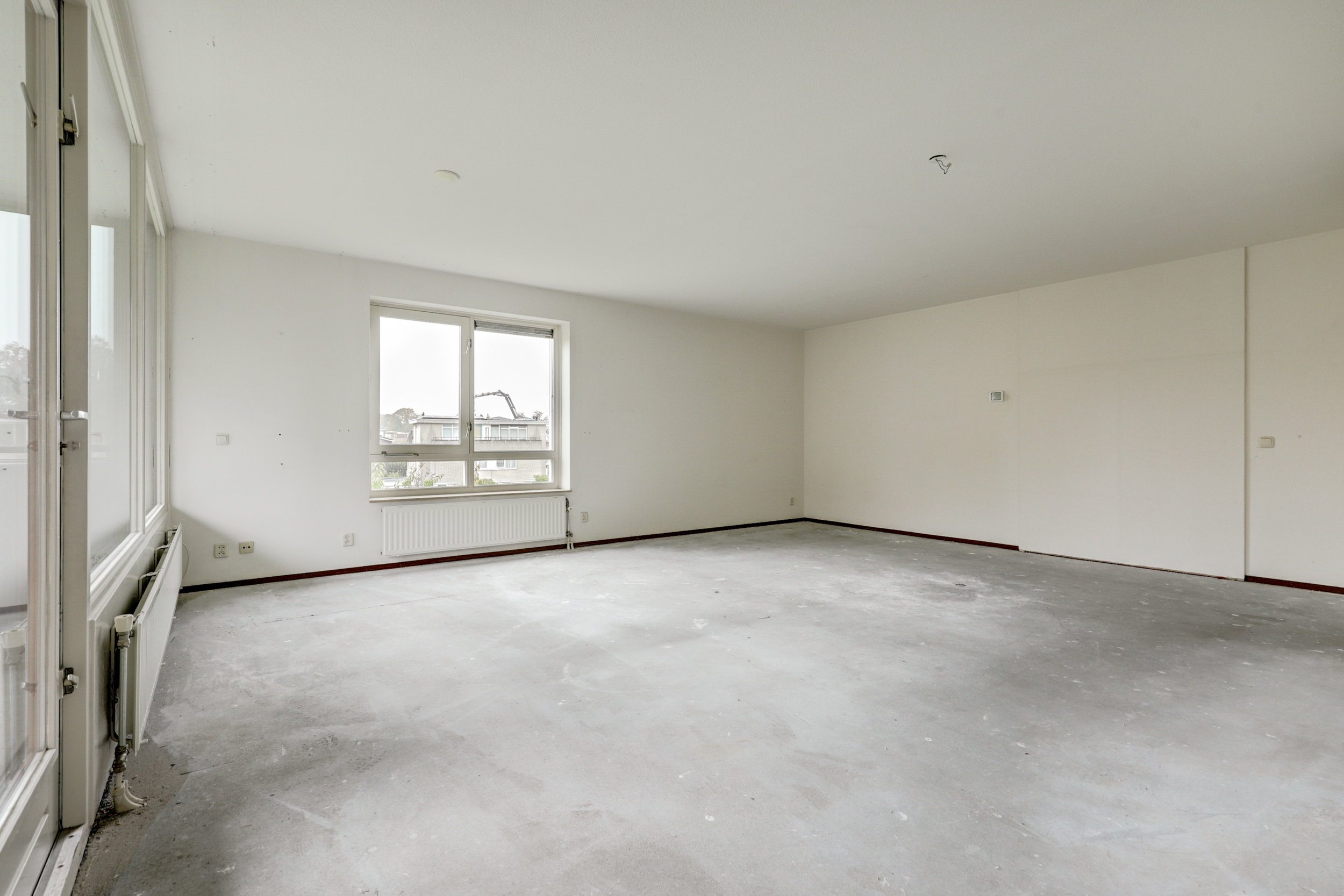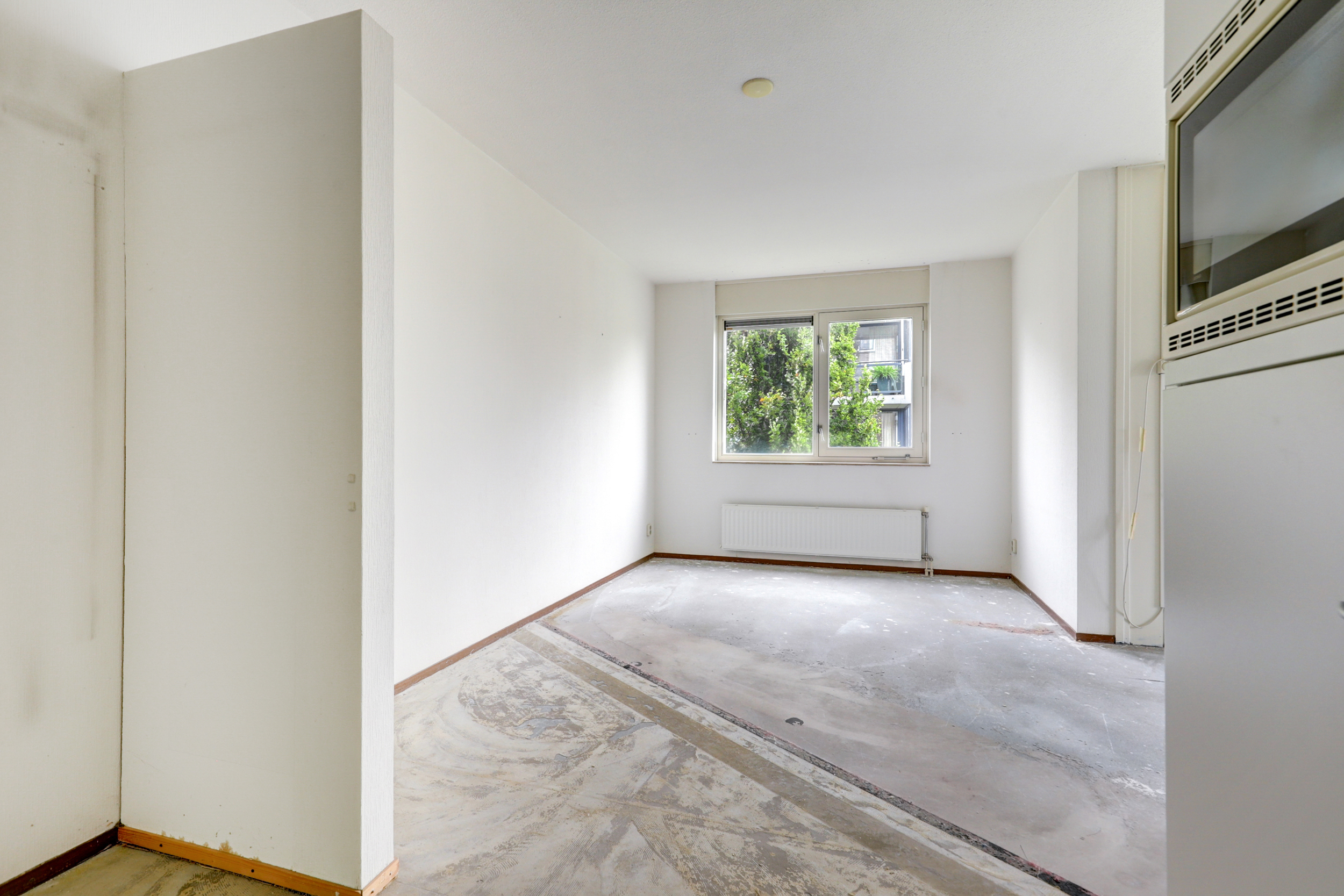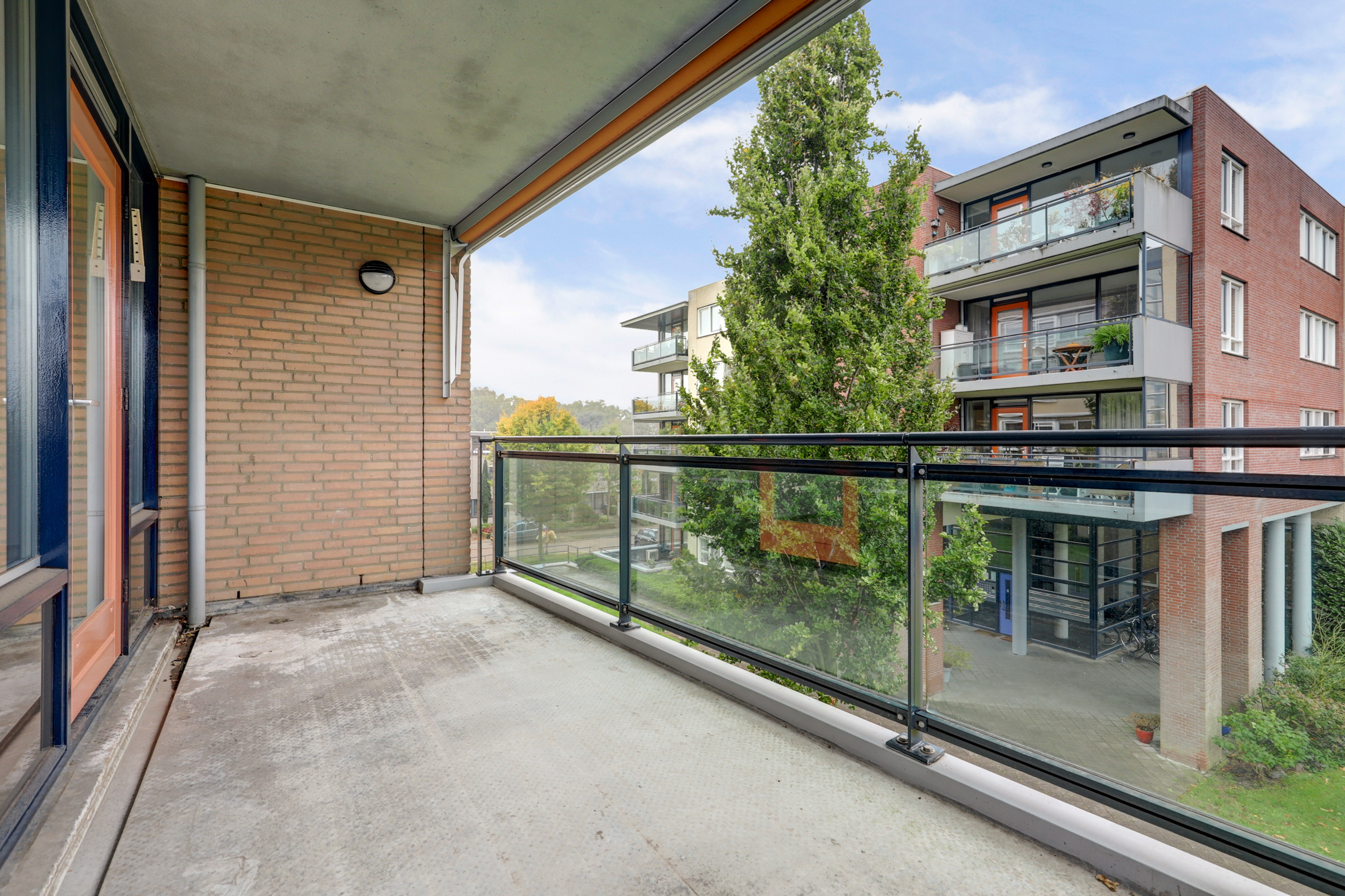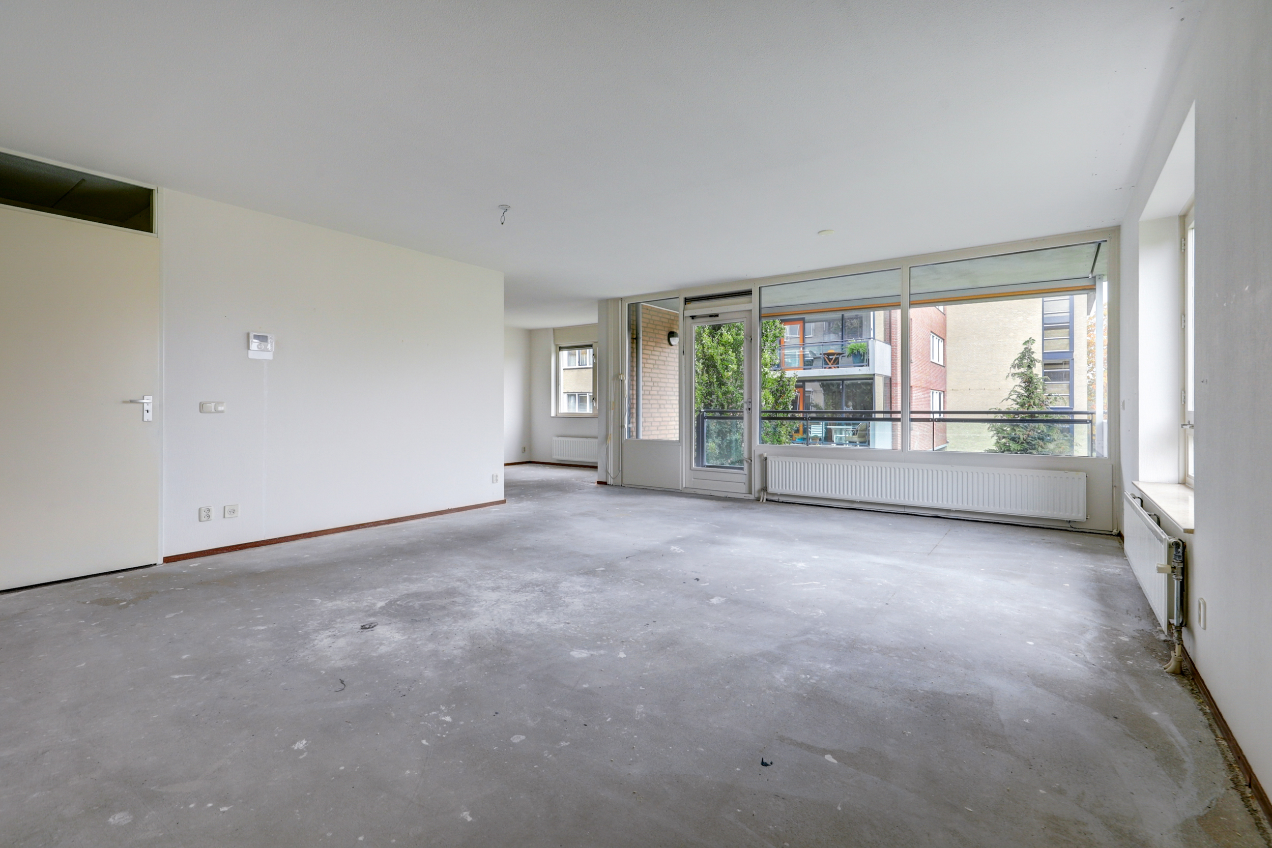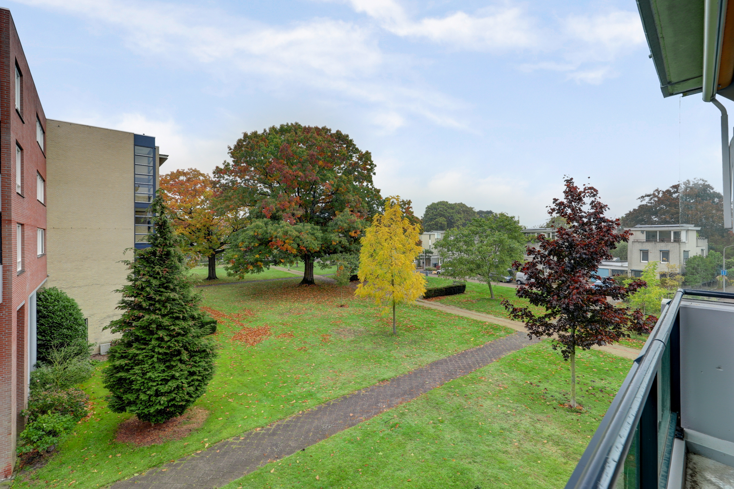 De lichte woonkamer geeft toegang tot het ruime balkon en tot de halfopen woonkeuken voorzien van diverse inbouwapparatuur. Er is plaats voor een ruime eettafel en door de grote raampartij is het ook hier weer erg licht; kortom een heerlijke plekje om gezellig te tafelen. Het vertoeven op het balkon is geen straf; je kunt genieten van een prachtig uitzicht over het park met de oude bomen.