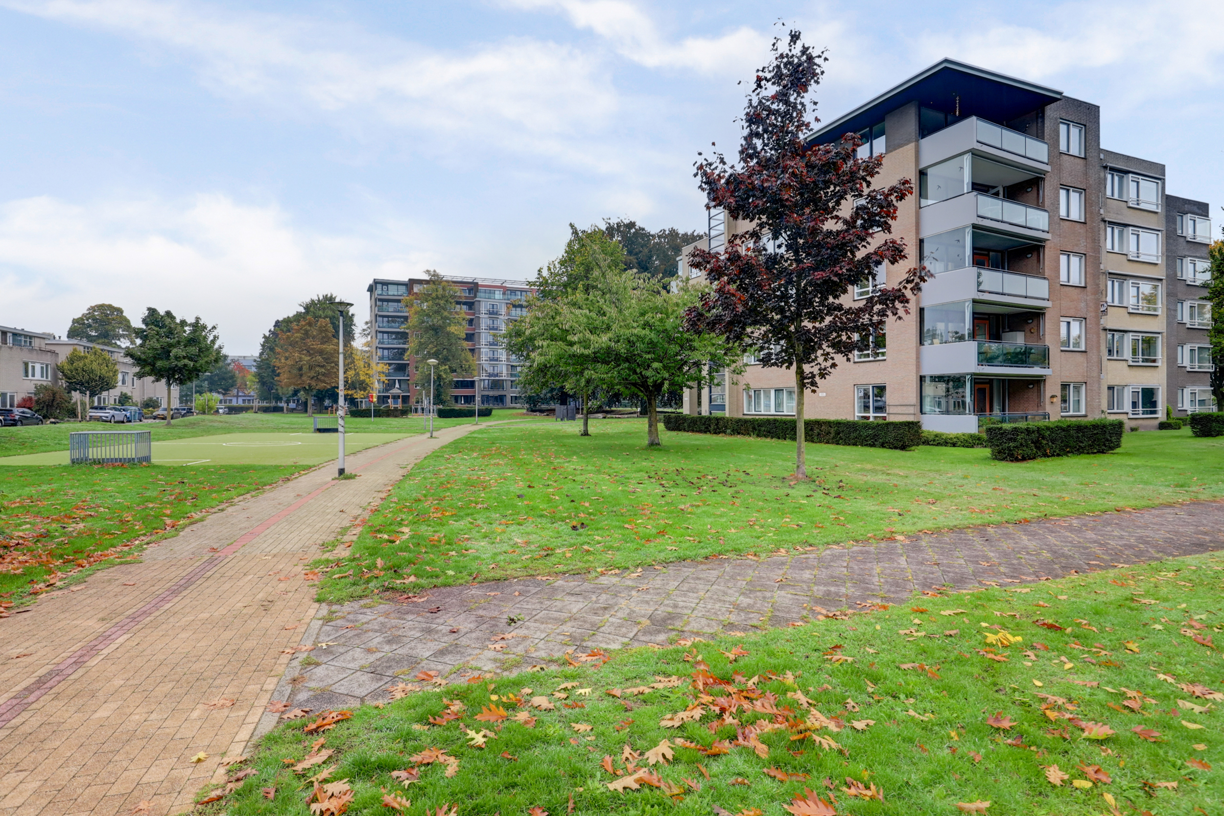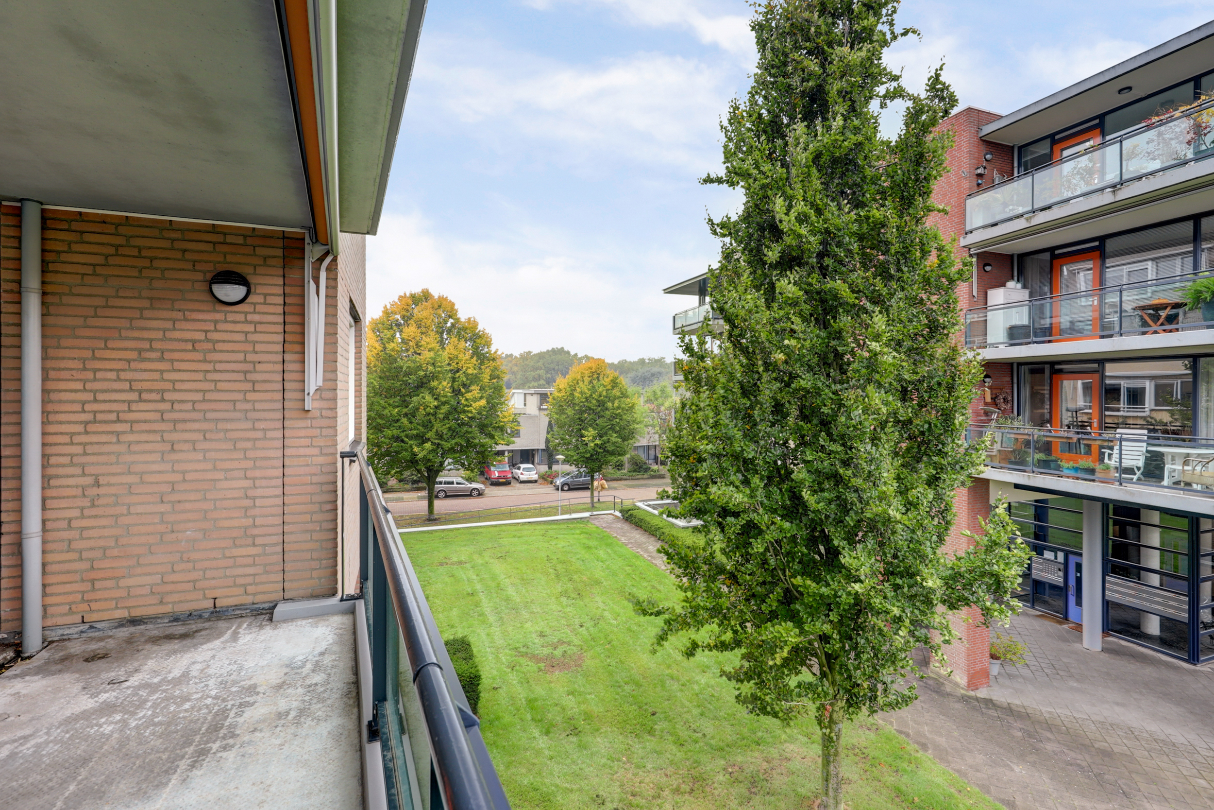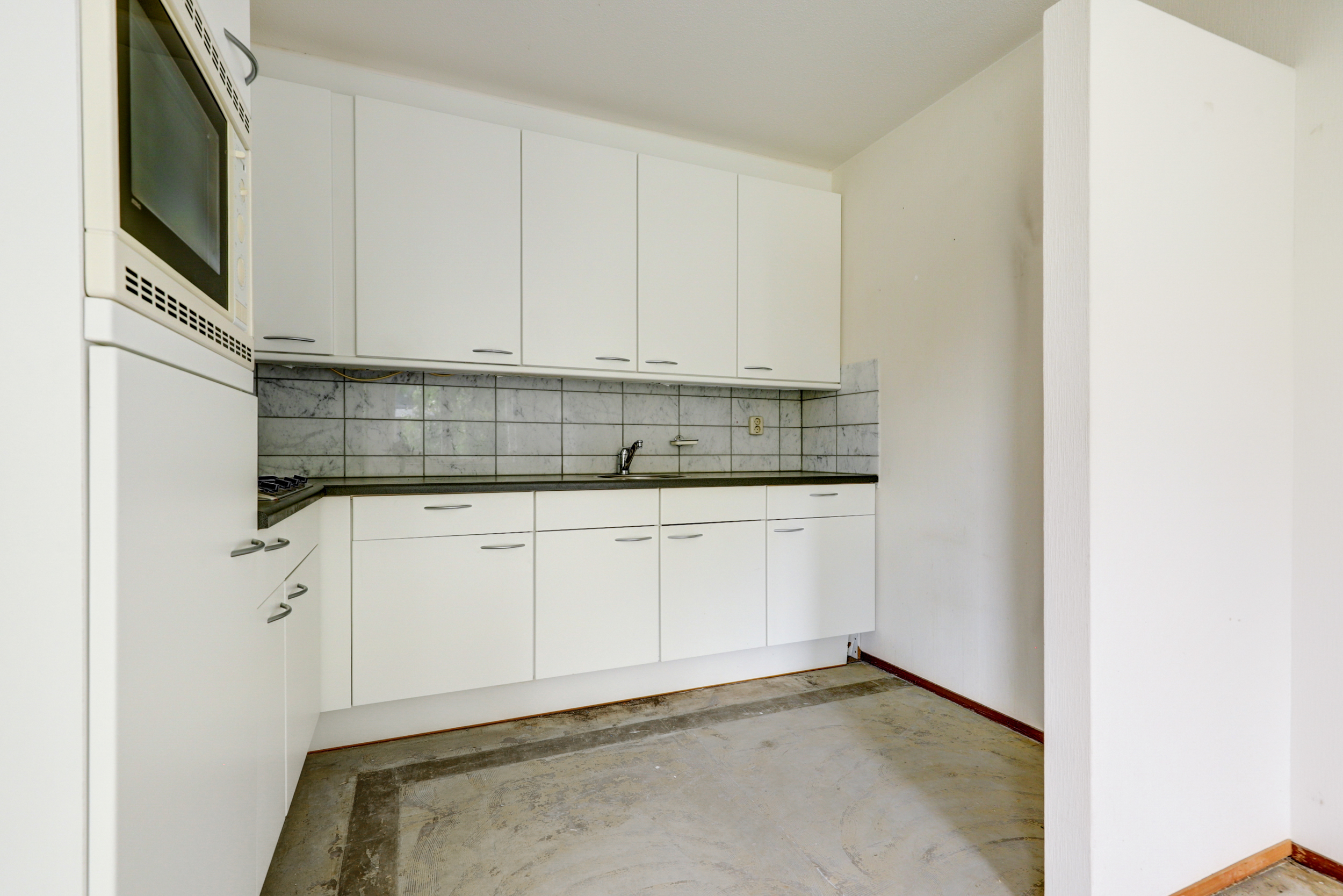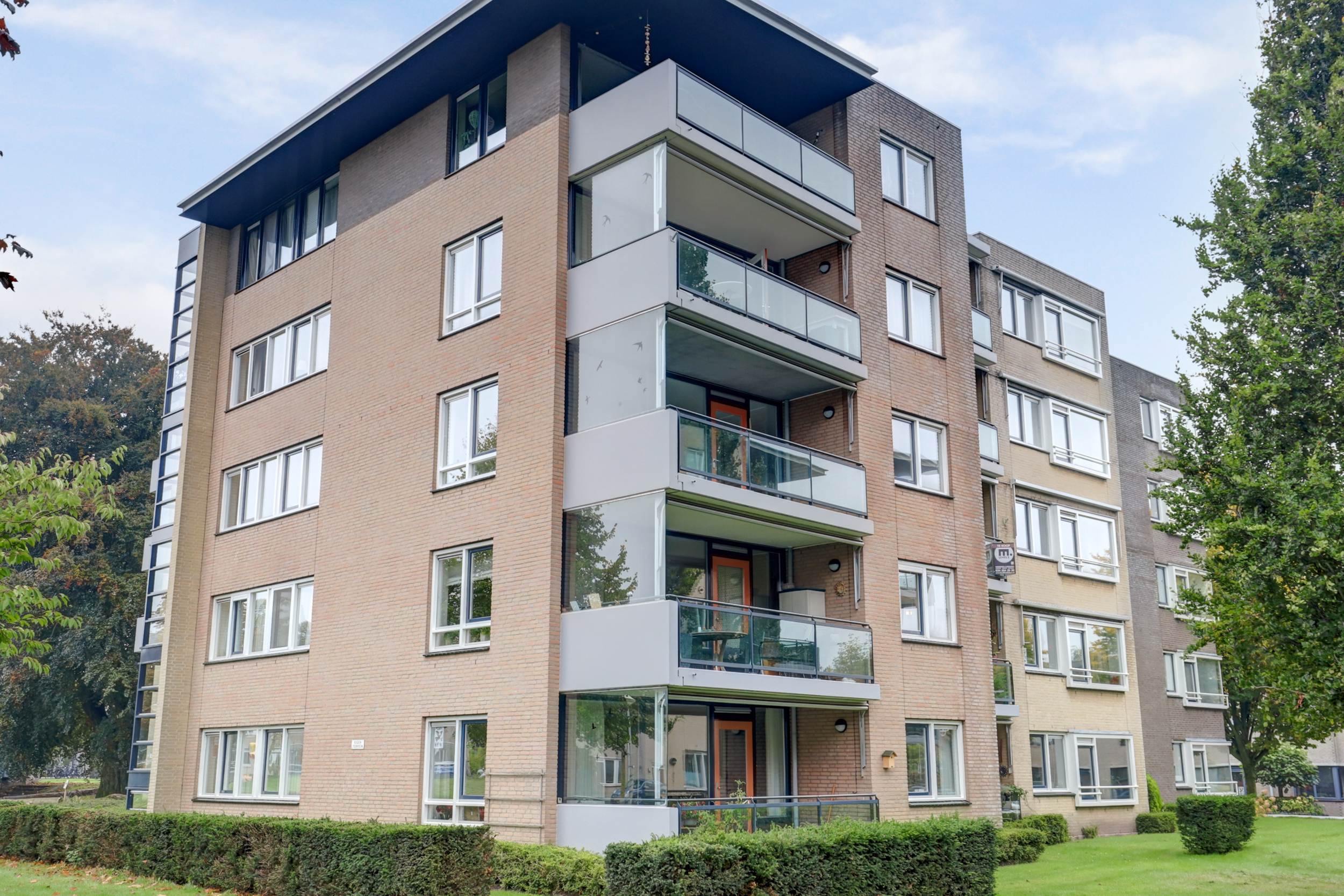 De lichte woonkamer geeft toegang tot het ruime balkon en tot de halfopen woonkeuken voorzien van diverse inbouwapparatuur. Er is plaats voor een ruime eettafel en door de grote raampartij is het ook hier weer erg licht; kortom een heerlijke plekje om gezellig te tafelen. Het vertoeven op het balkon is geen straf; je kunt genieten van een prachtig uitzicht over het park met de oude bomen.