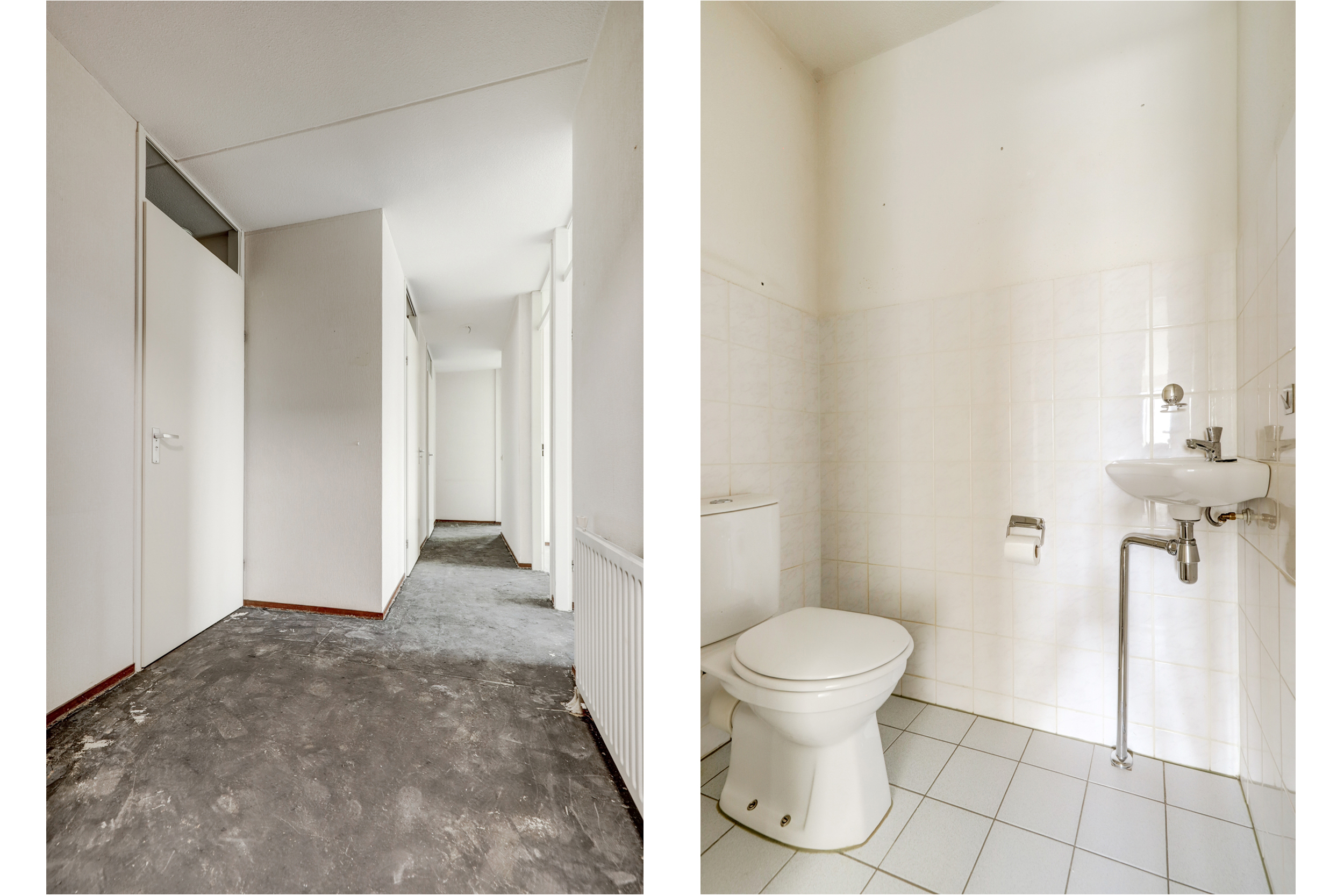 Begane grond: entree, hal met brievenbussen en videofooninstallatie. Trapopgang en lift naar de verdiepingen.