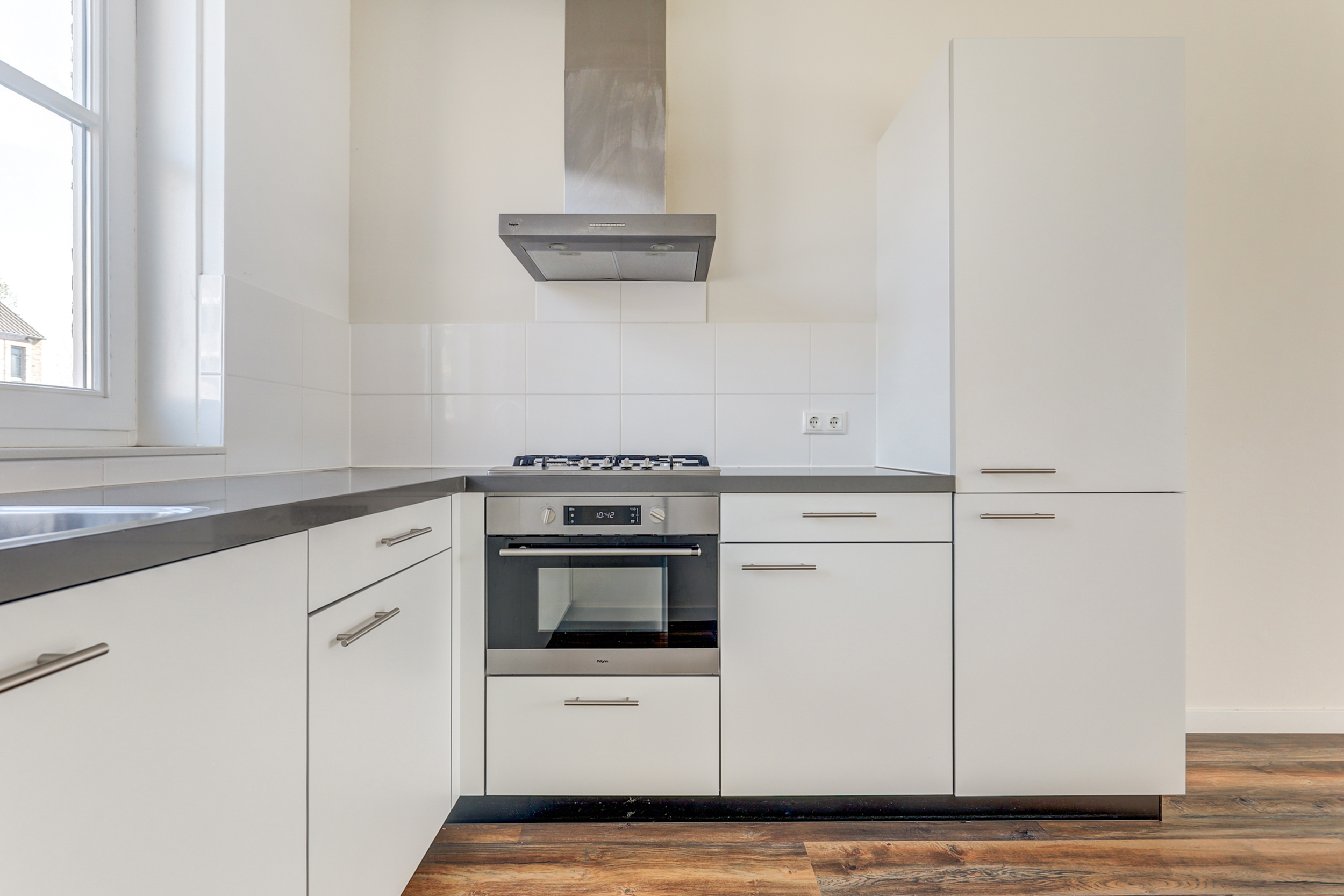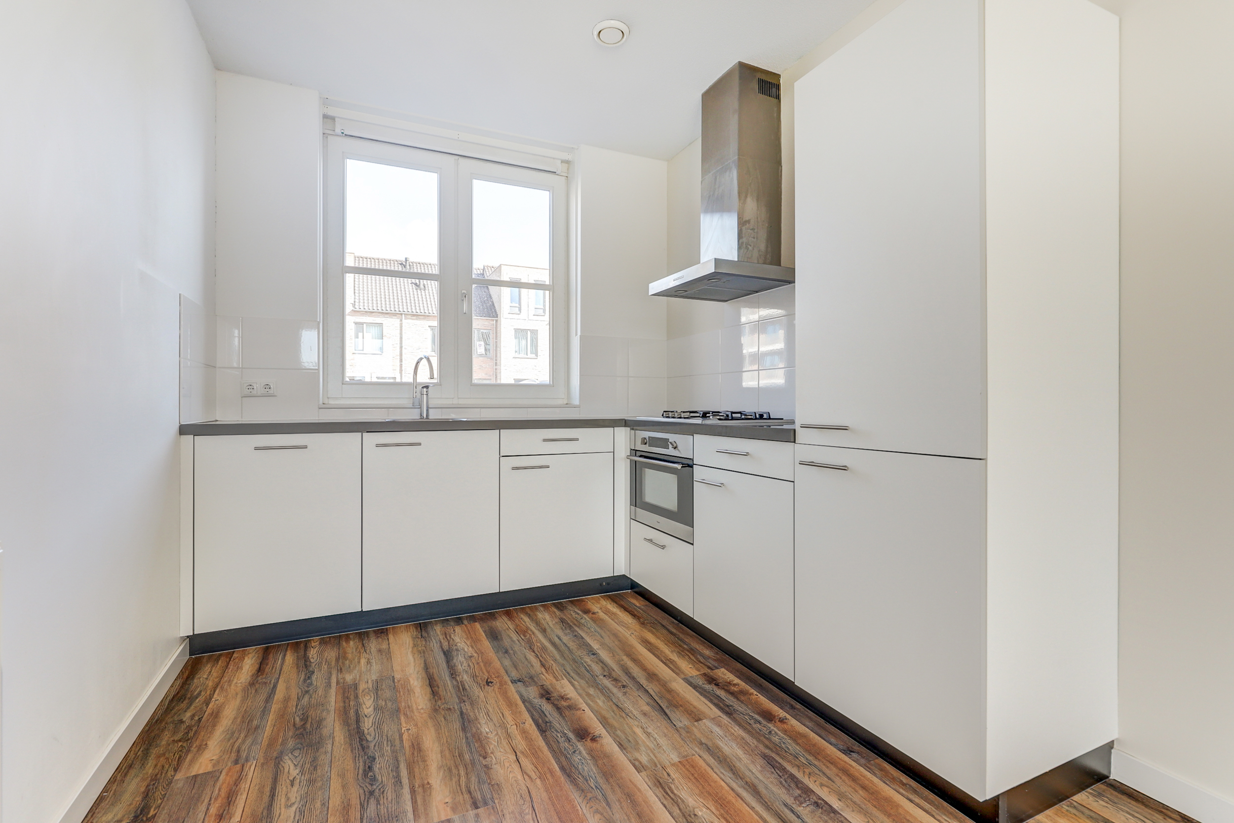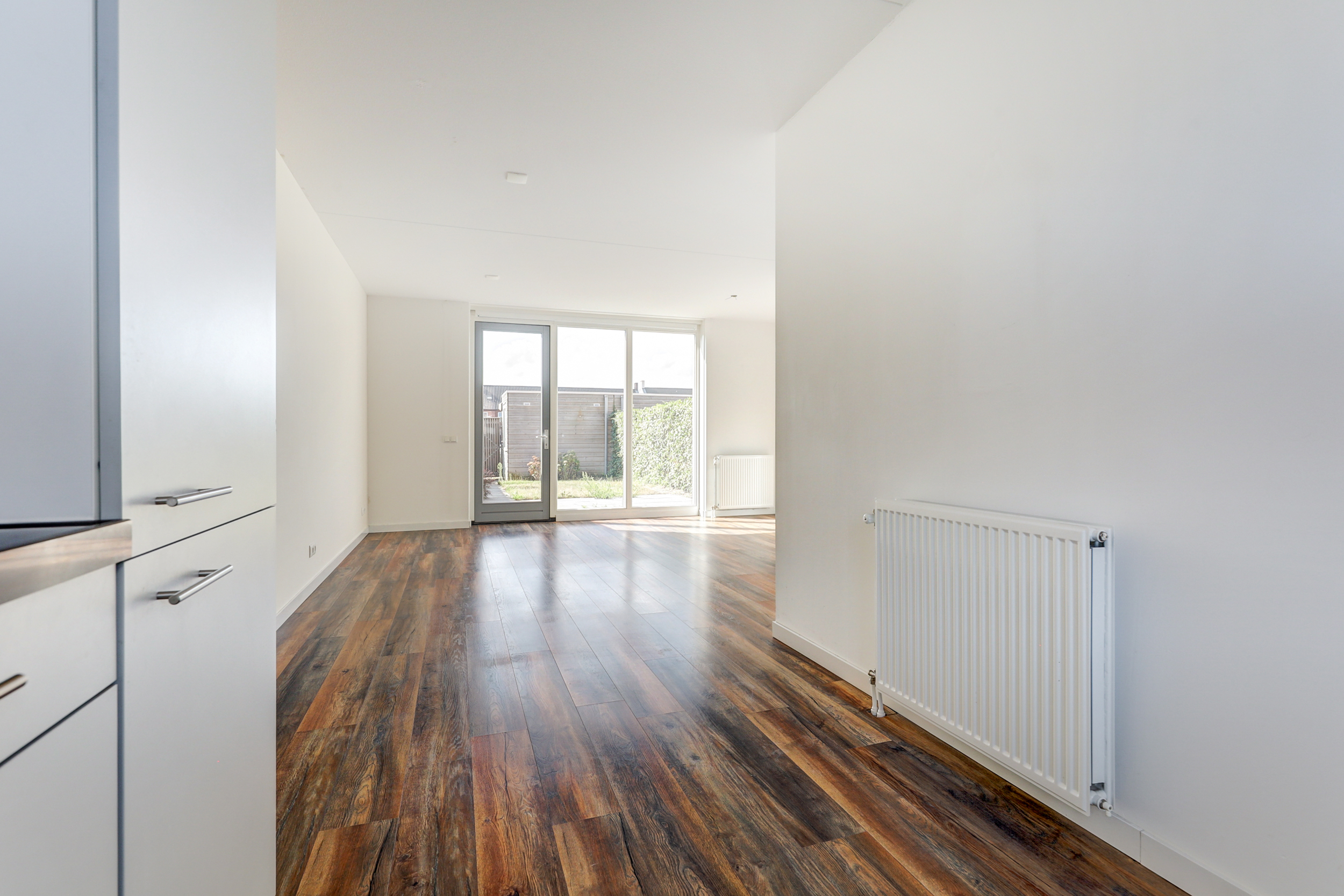 Stap binnen in de ruime hal met meterkast, zwevend toilet met fontein en de trap naar de eerste verdieping. Vanuit de hal loop je door naar de lichte woonkamer, voorzien van grote raampartijen en een prettige verbinding met de tuin. In de woonkamer vind je bovendien een handige trapkast voor extra bergruimte! Aan de voorzijde van de woning bevindt zich de strakke open keuken, compleet uitgerust met moderne inbouwapparatuur zoals vaatwasser, combi-oven, afzuigkap, koelkast en diepvries en een 4-pits gasfornuis.