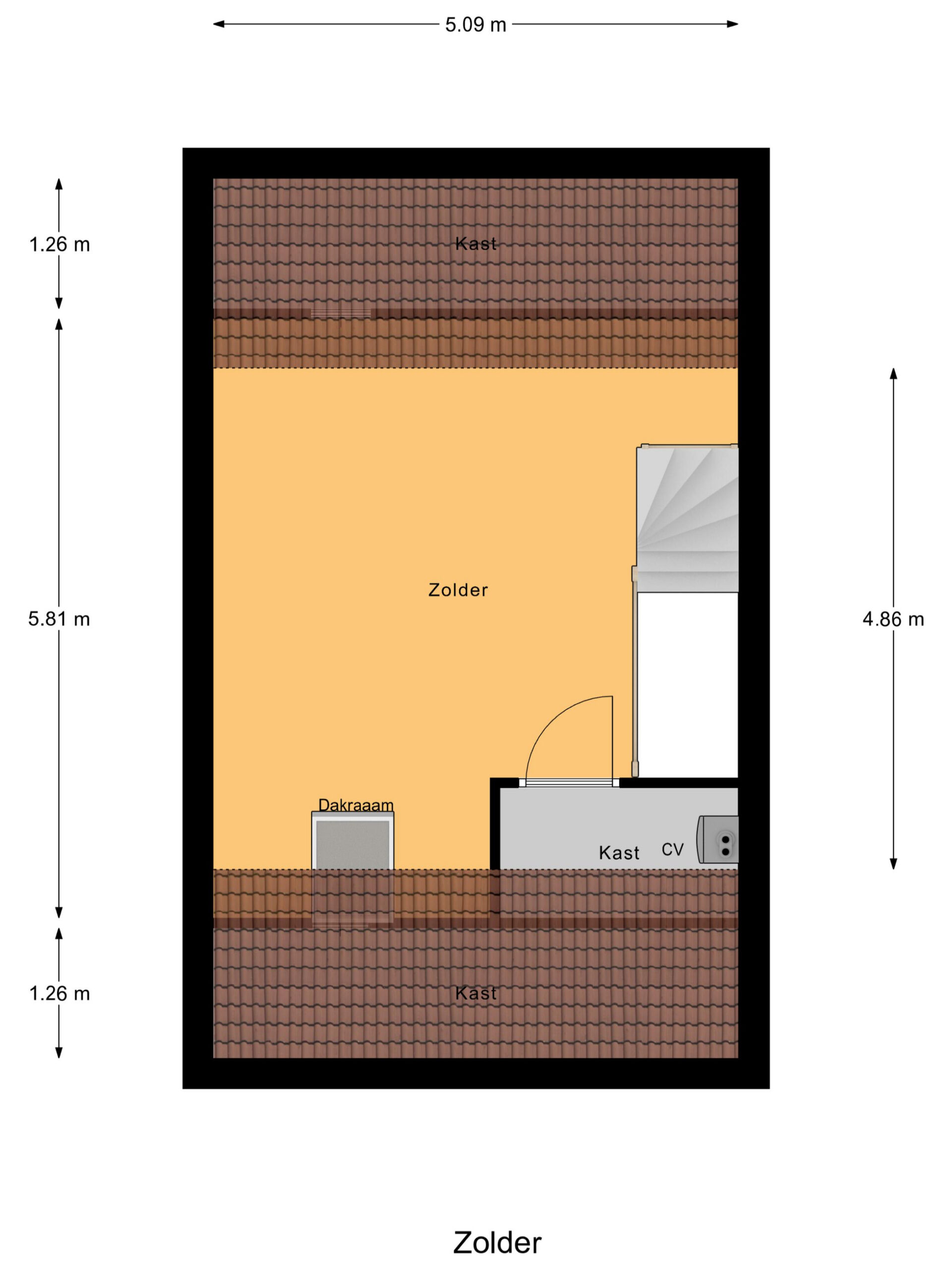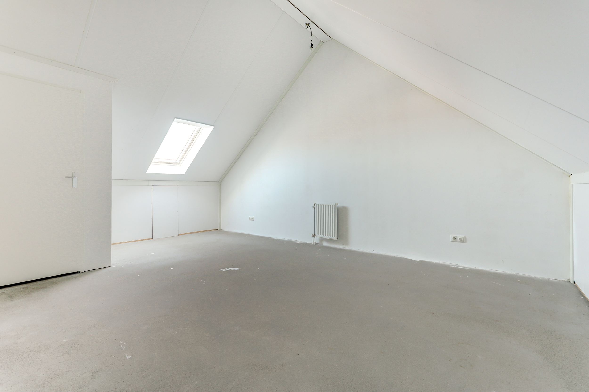 Via de vaste trap bereik je de ruime zolderverdieping, voorzien van een dakraam. Door het plaatsen van extra dakramen of een dakkapel zijn er mogelijkheden tot het realiseren van twee extra slaapkamers.