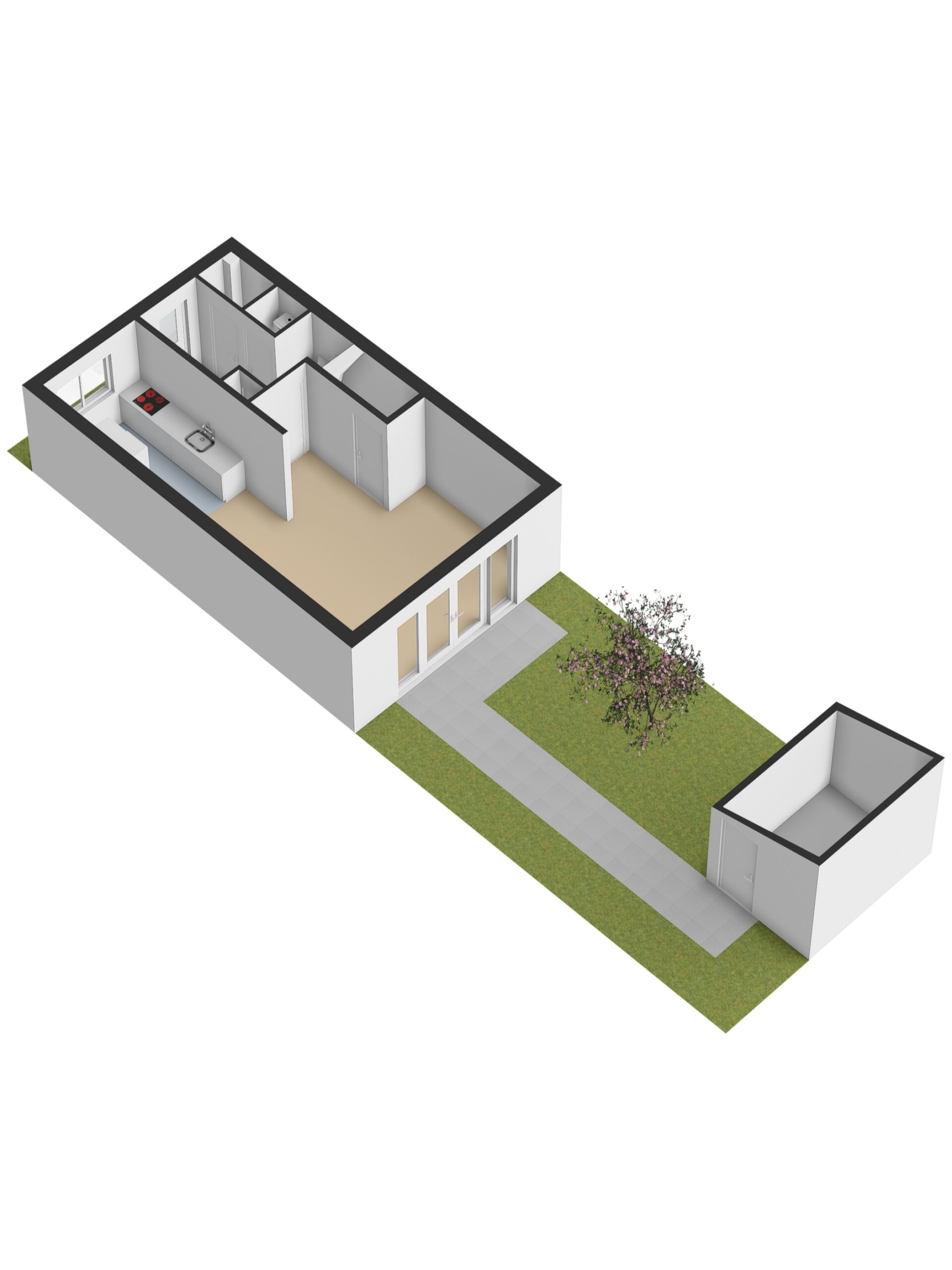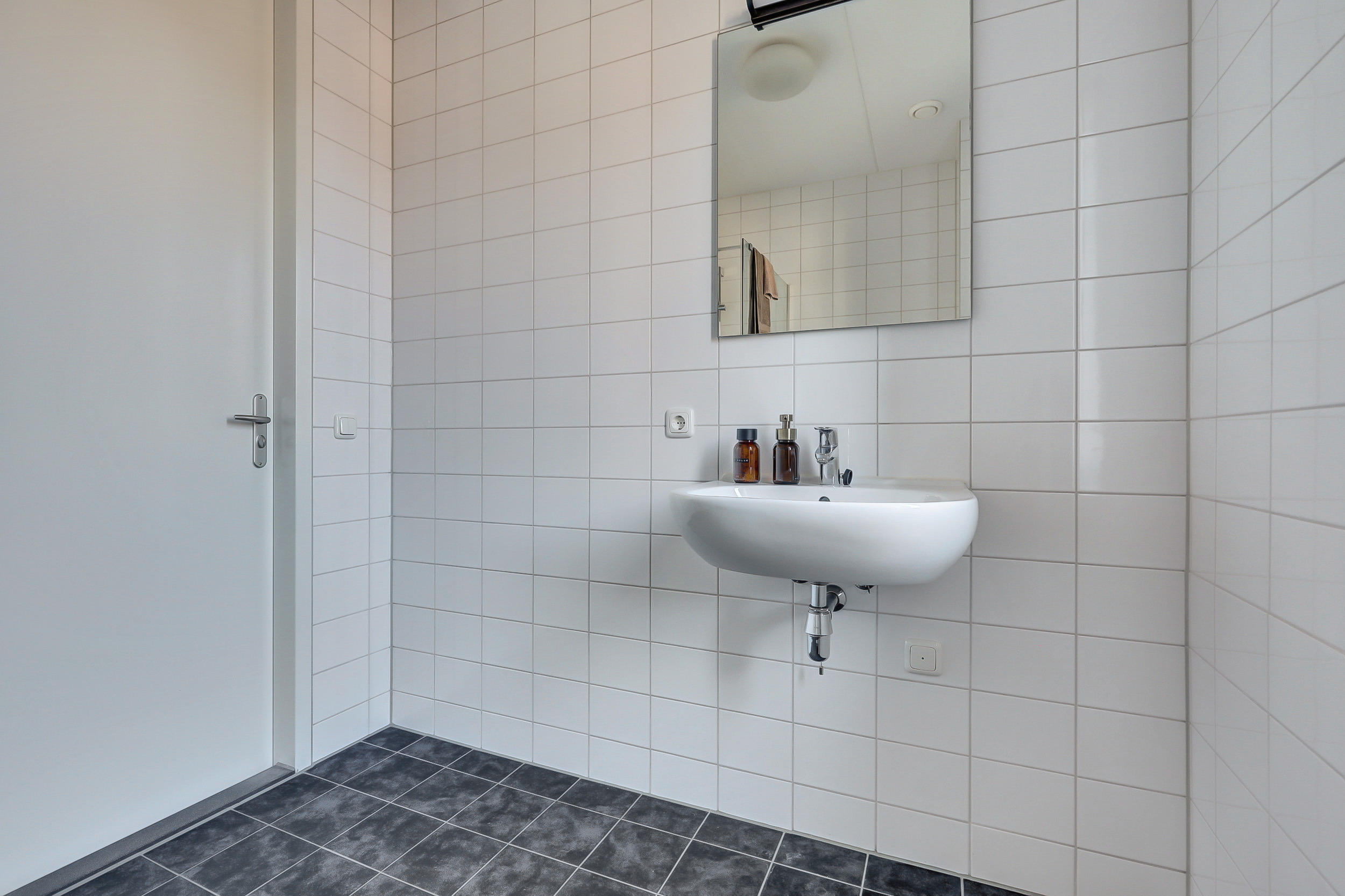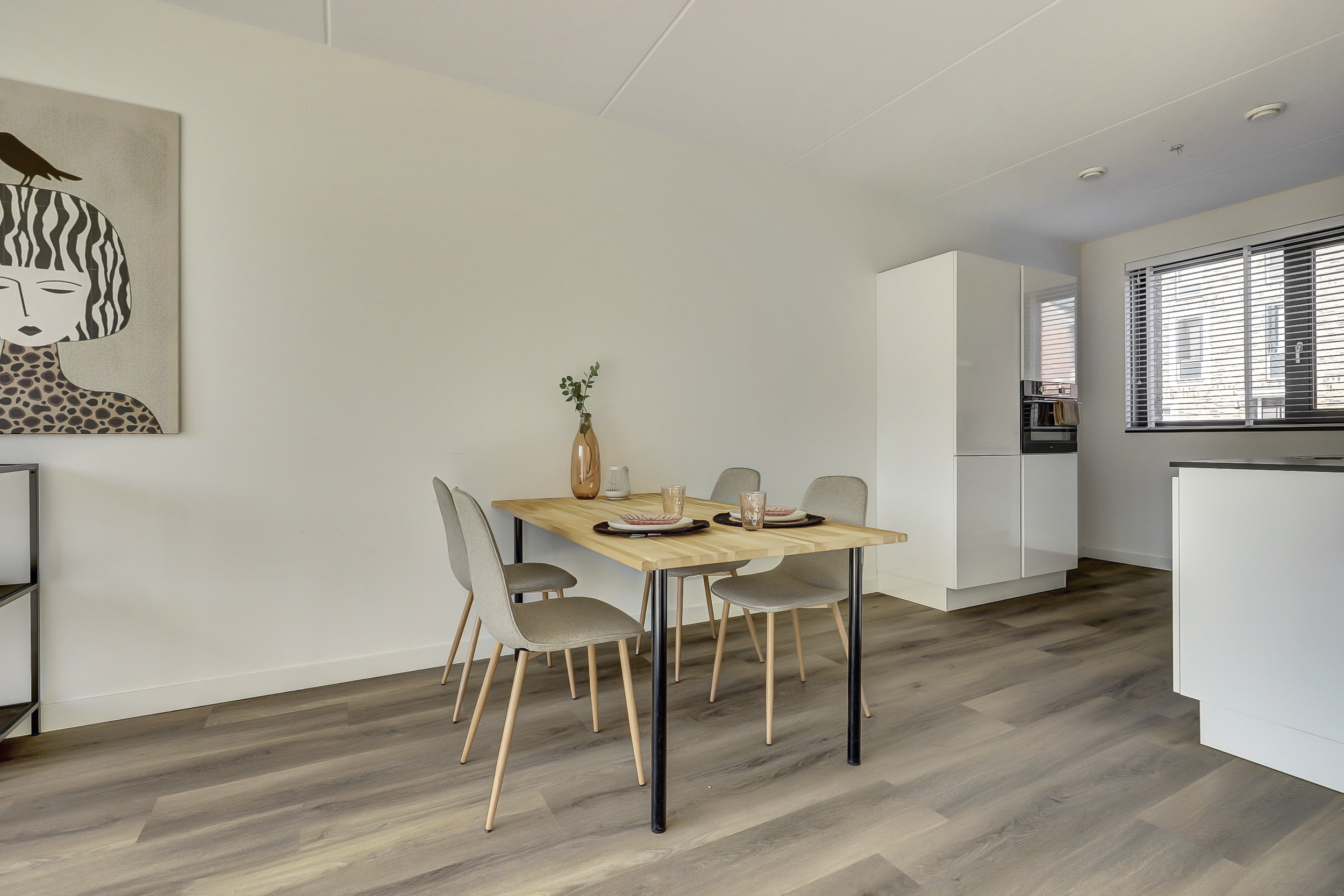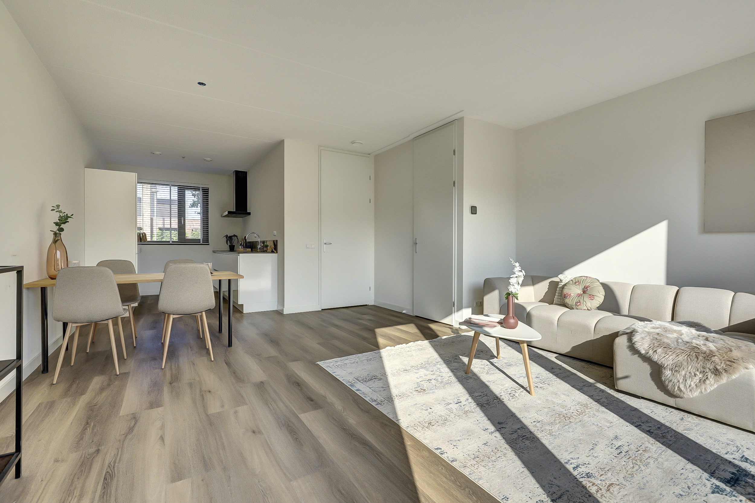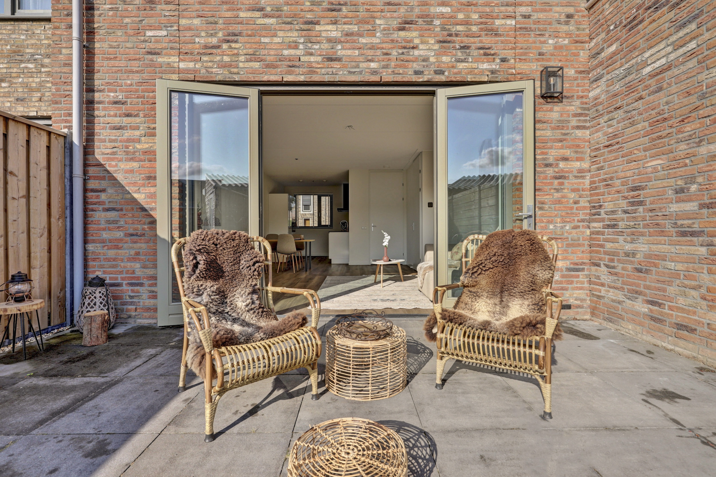 Je komt binnen in de hal met meterkast, toilet met fontein en een bergkast met de warmtepomp en elektrische boiler. De lichte woonkamer heeft openslaande deuren naar de achtertuin en een praktische trapkast met verdeler voor de vloerverwarming. De open keuken in dubbele wandopstelling is compleet uitgerust met een inductiekookplaat, combi-oven, koel-/vriescombi, vaatwasser, afzuigkap en een spoelbak – perfect voor kookliefhebbers!
