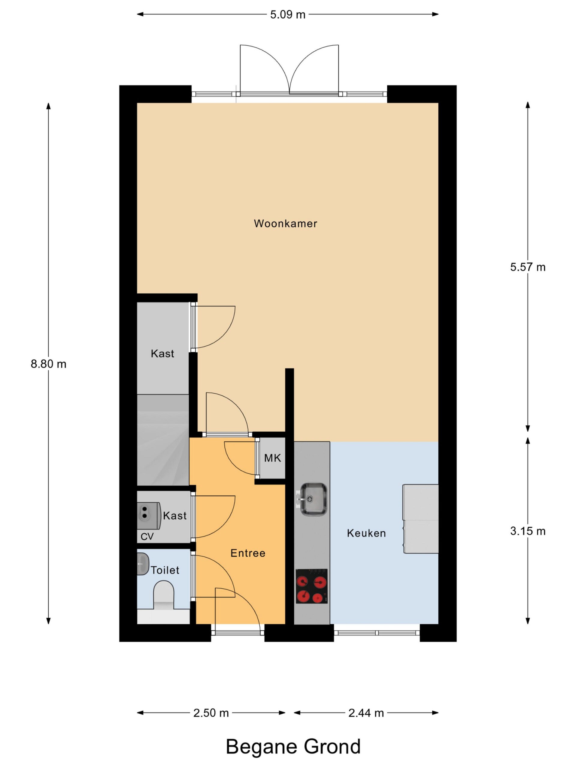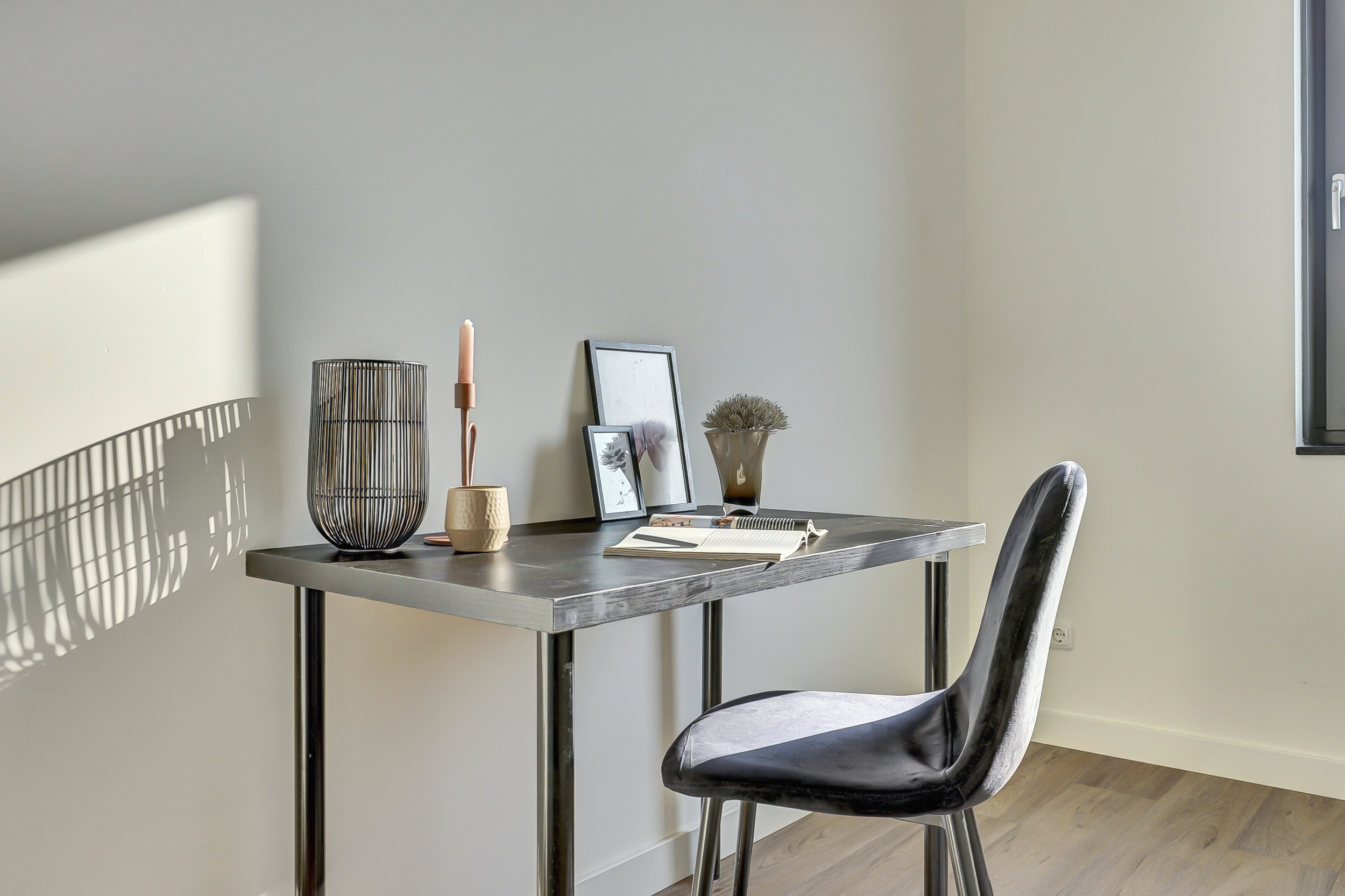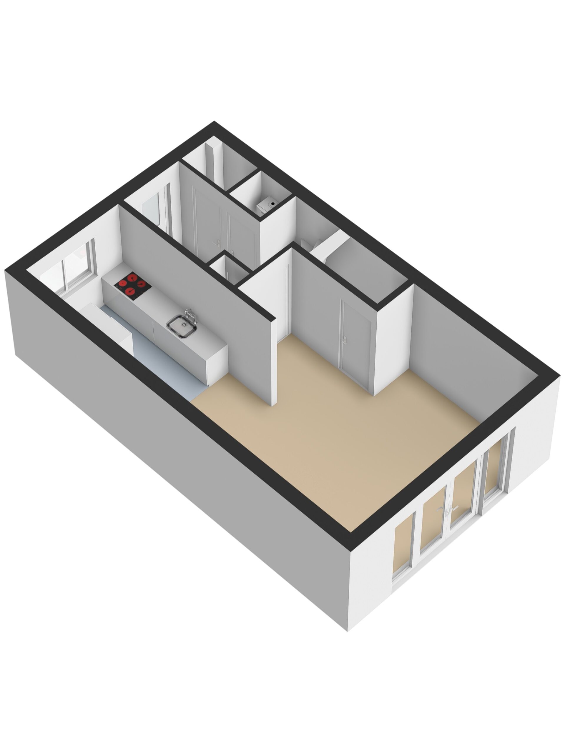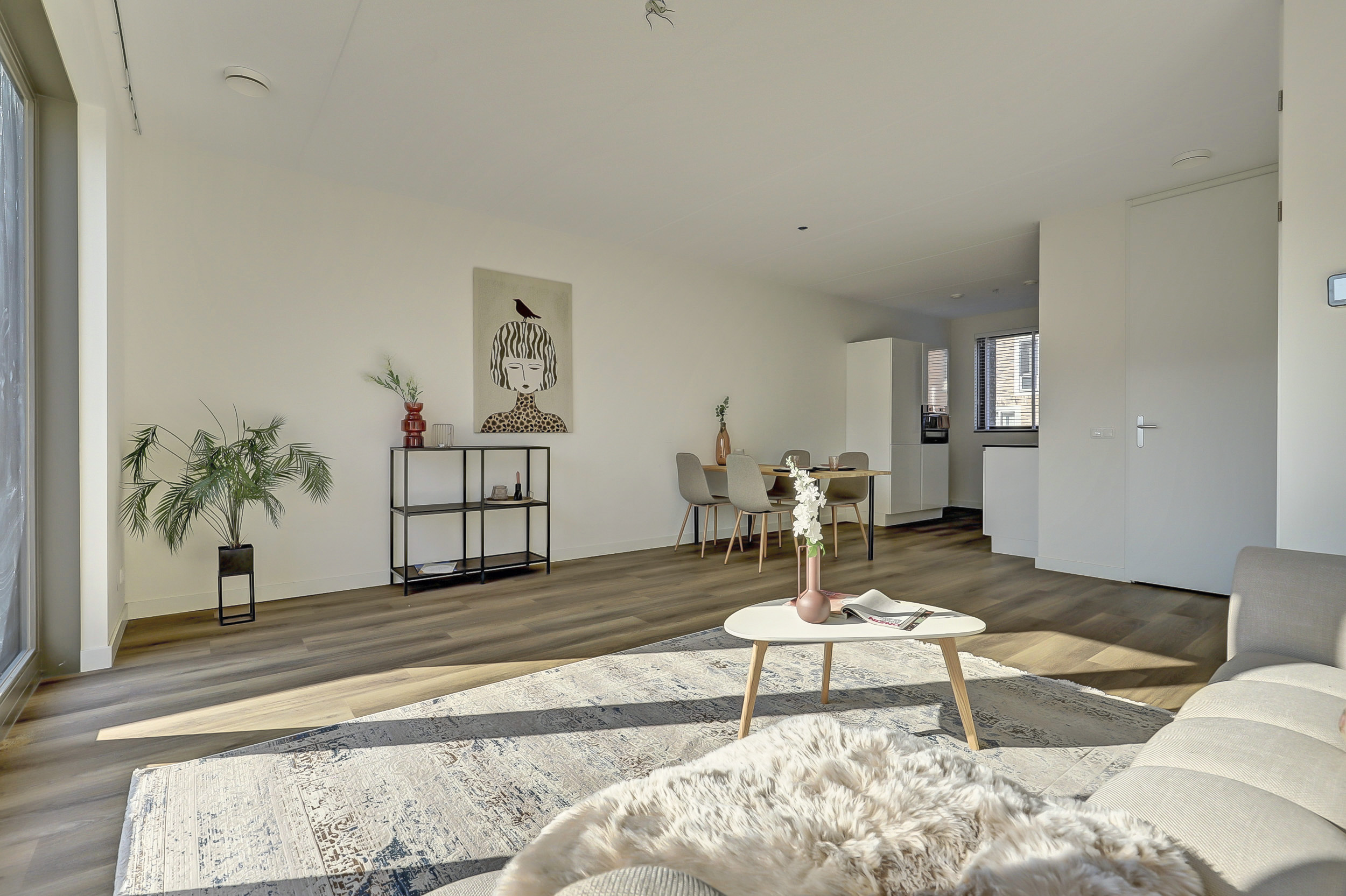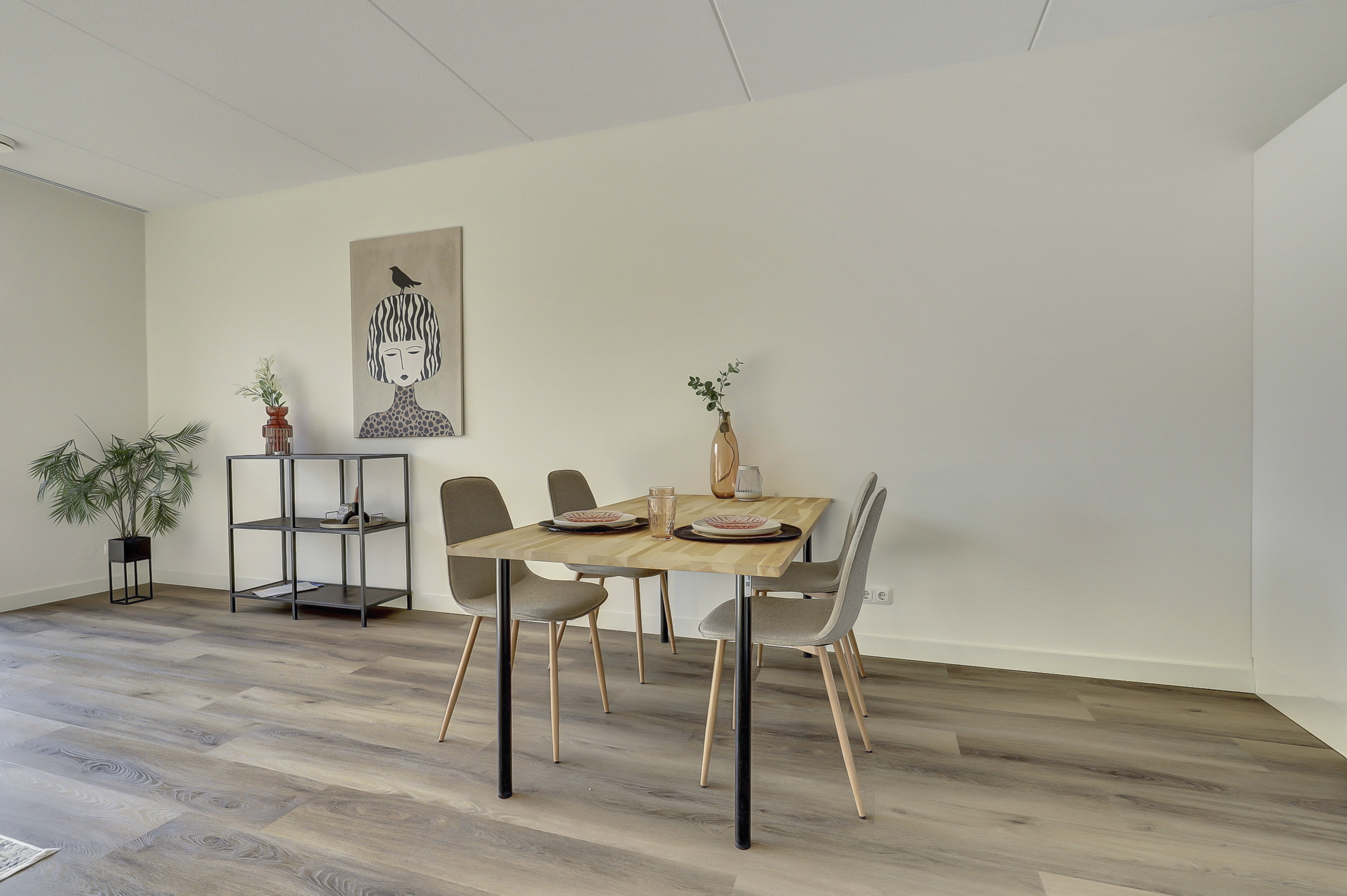 Je komt binnen in de hal met meterkast, toilet met fontein en een bergkast met de warmtepomp en elektrische boiler. De lichte woonkamer heeft openslaande deuren naar de achtertuin en een praktische trapkast met verdeler voor de vloerverwarming. De open keuken in dubbele wandopstelling is compleet uitgerust met een inductiekookplaat, combi-oven, koel-/vriescombi, vaatwasser, afzuigkap en een spoelbak – perfect voor kookliefhebbers!
