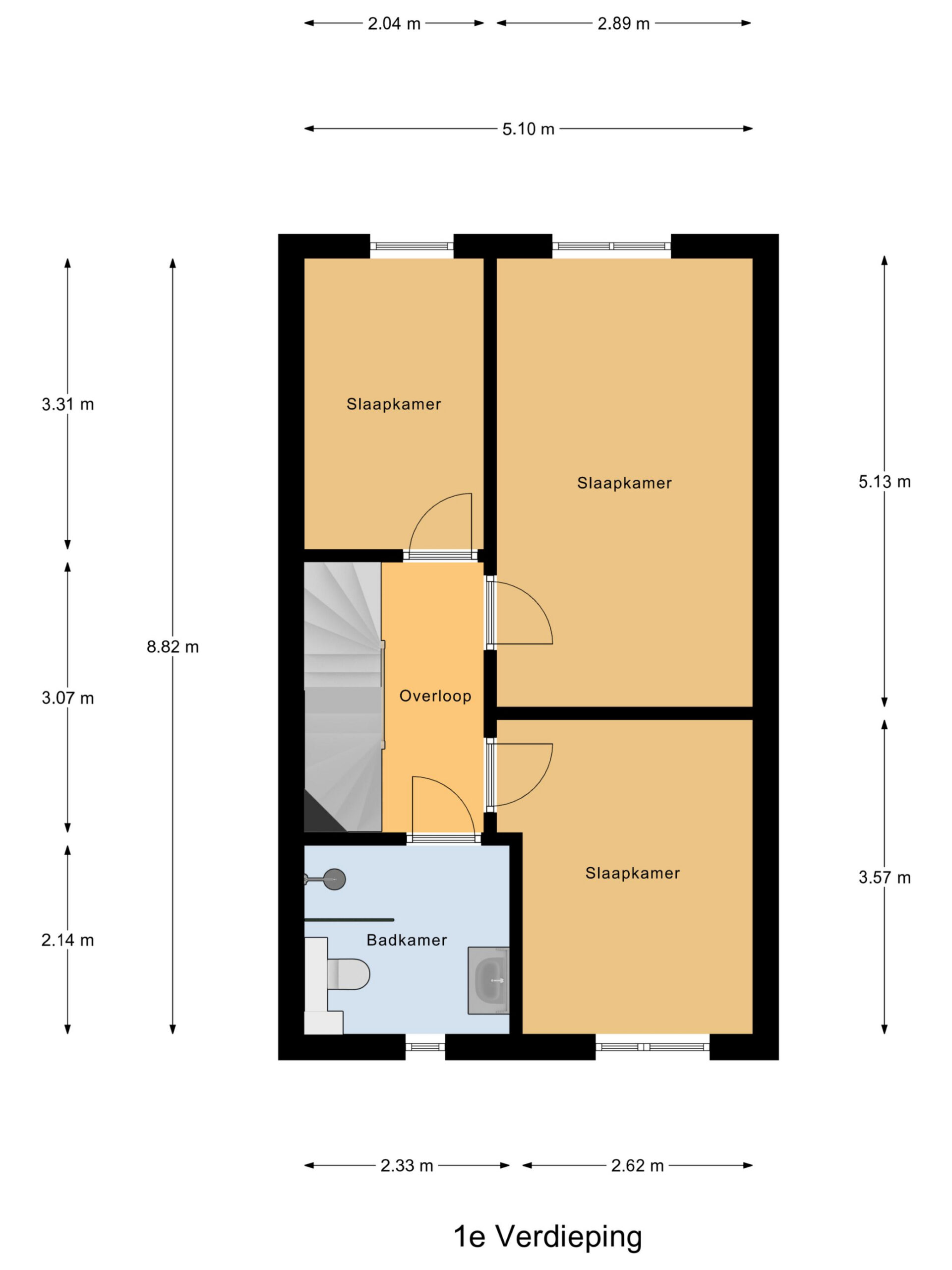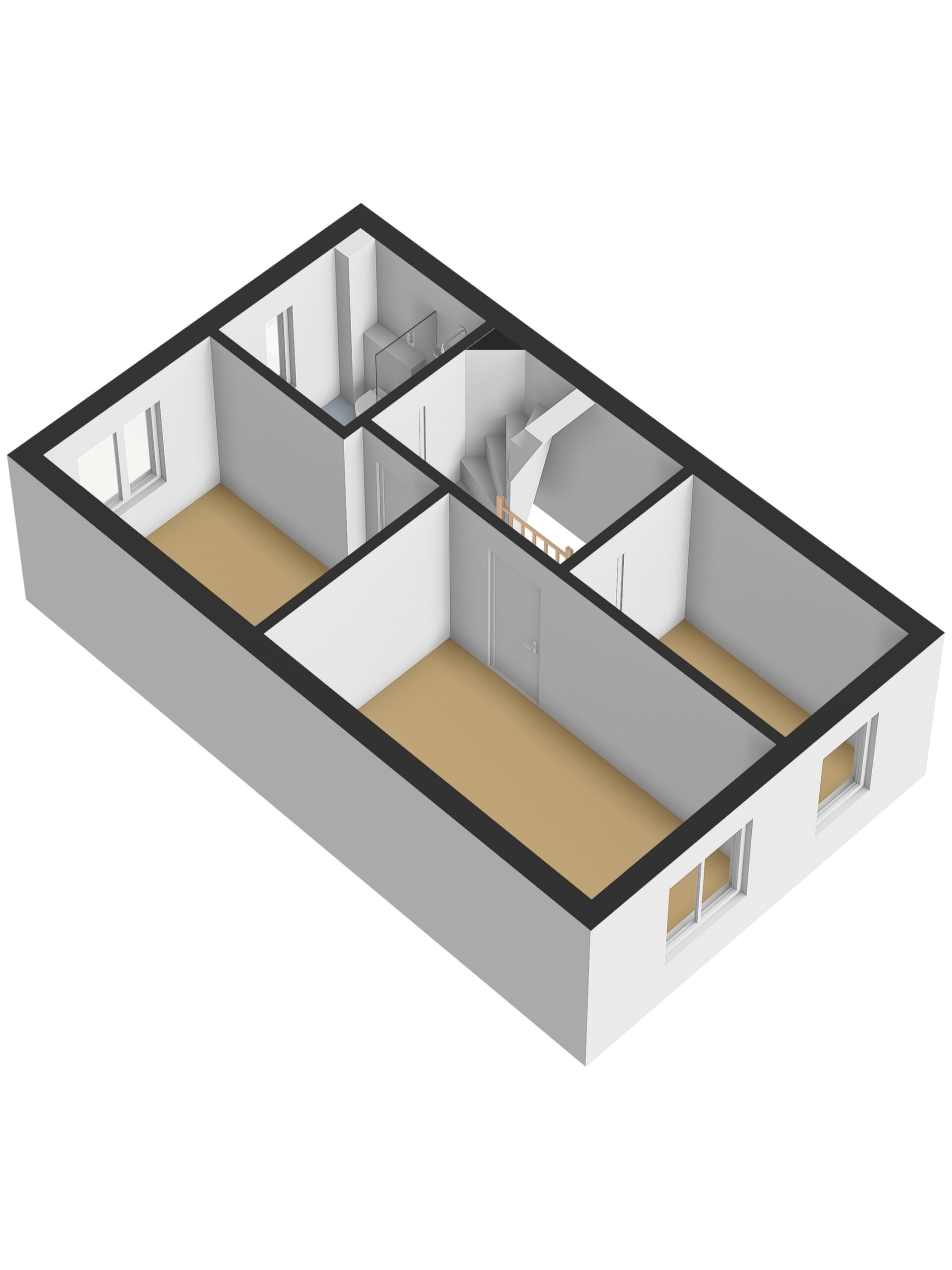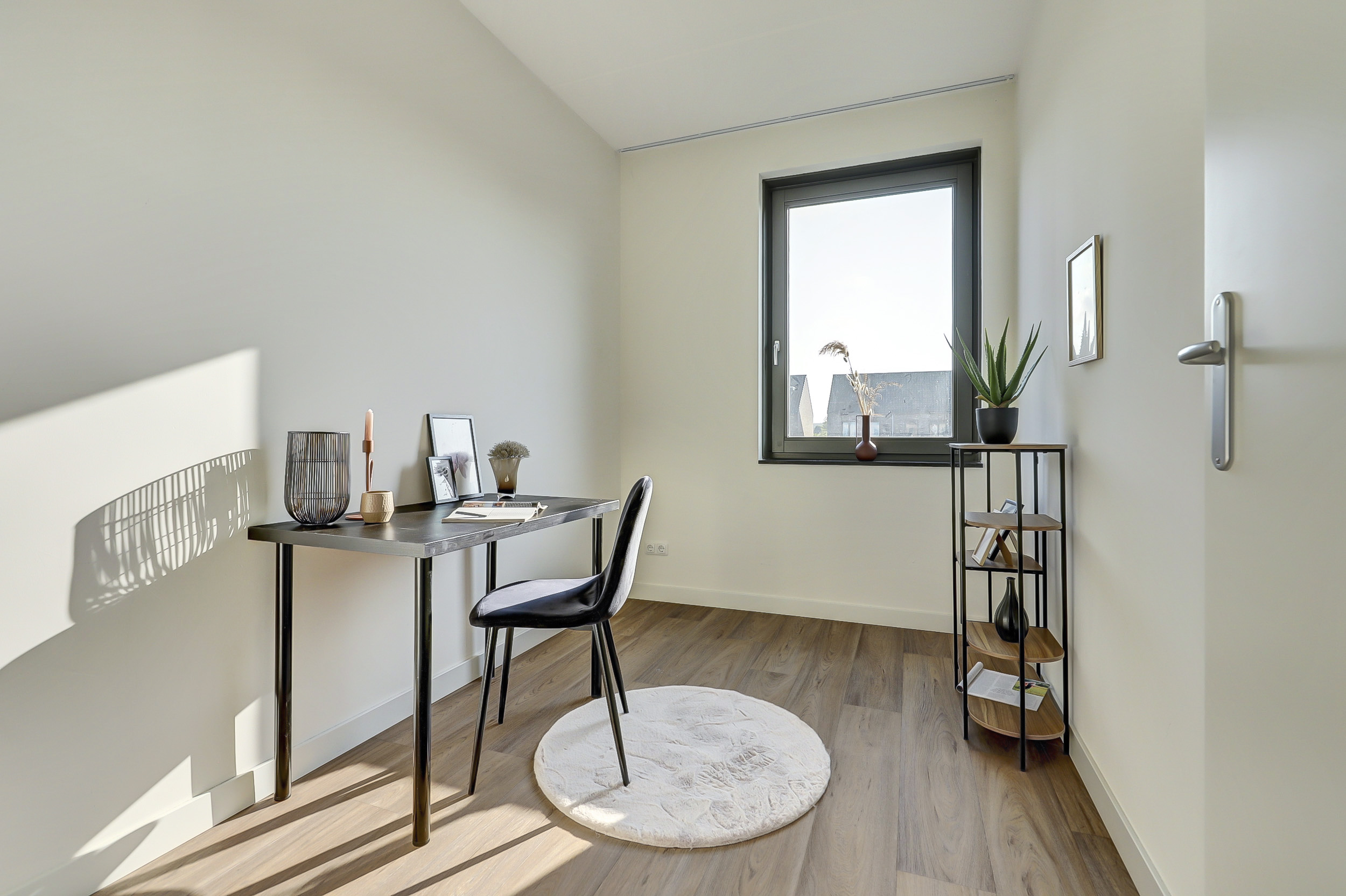 Hier vind je drie goed bemeten slaapkamers. De moderne badkamer beschikt over een inloopdouche, toilet en wastafel. Deze verdieping is voorzien van een linoleumvloer en eveneens volledig uitgerust met vloerverwarming.