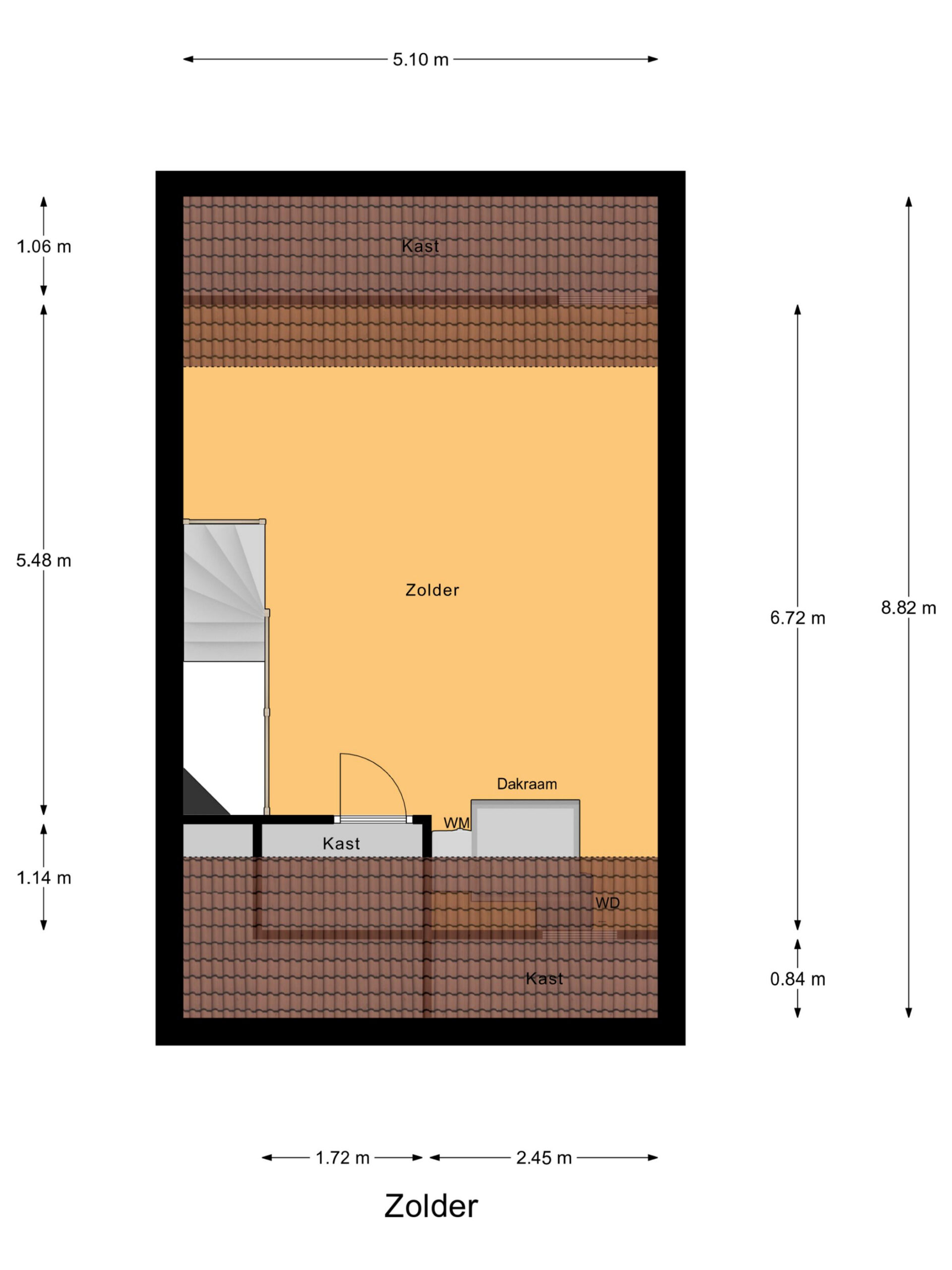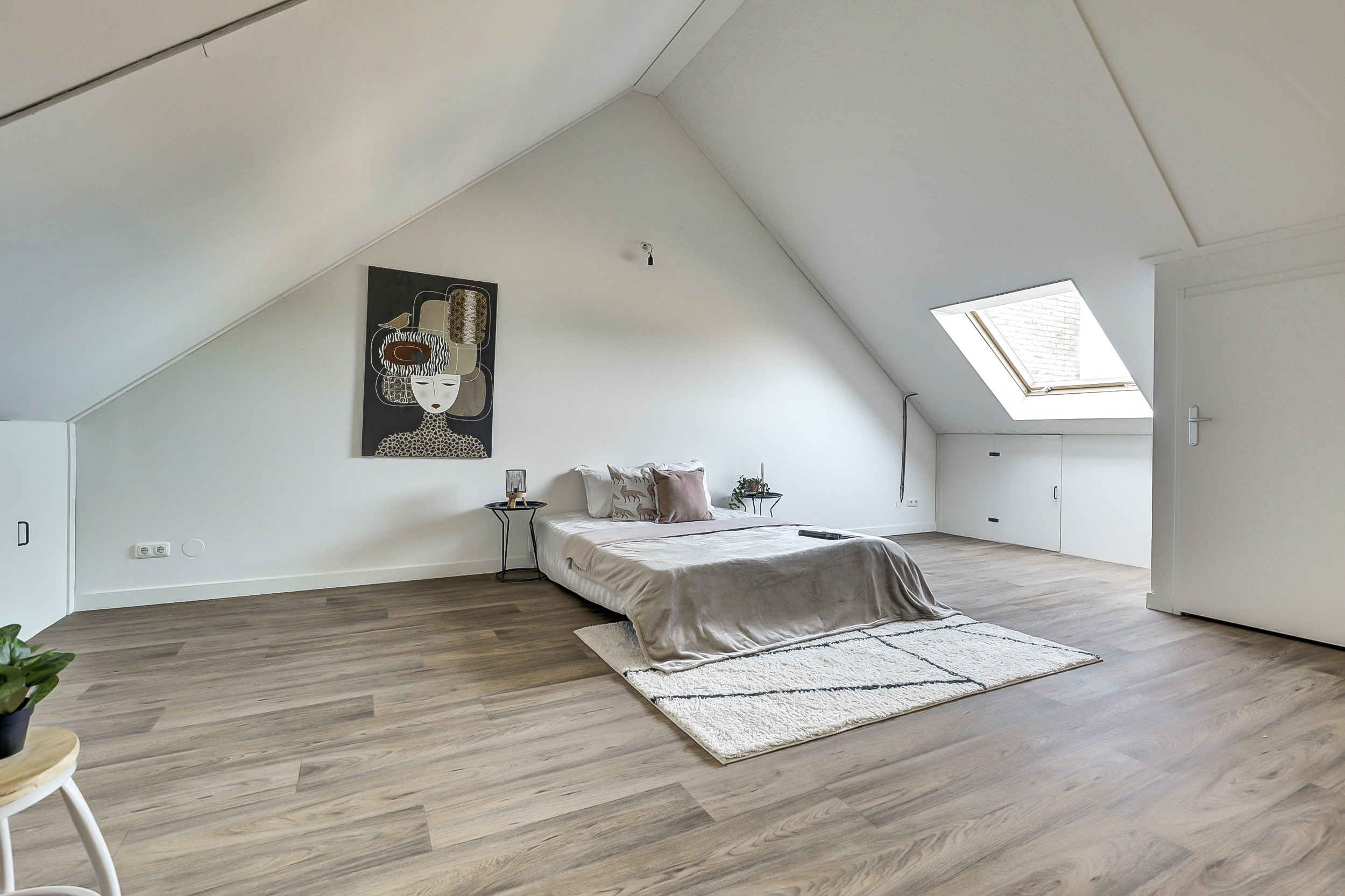 Een royale zolderruimte met dakraam, witgoedaansluitingen, knieschotten voor extra bergruimte en een aparte bergkast met de warmte-terugwininstallatie. Ook deze verdieping is voorzien van een linoleumvloer. Ideaal als extra slaapkamer, werkkamer of hobbyruimte!