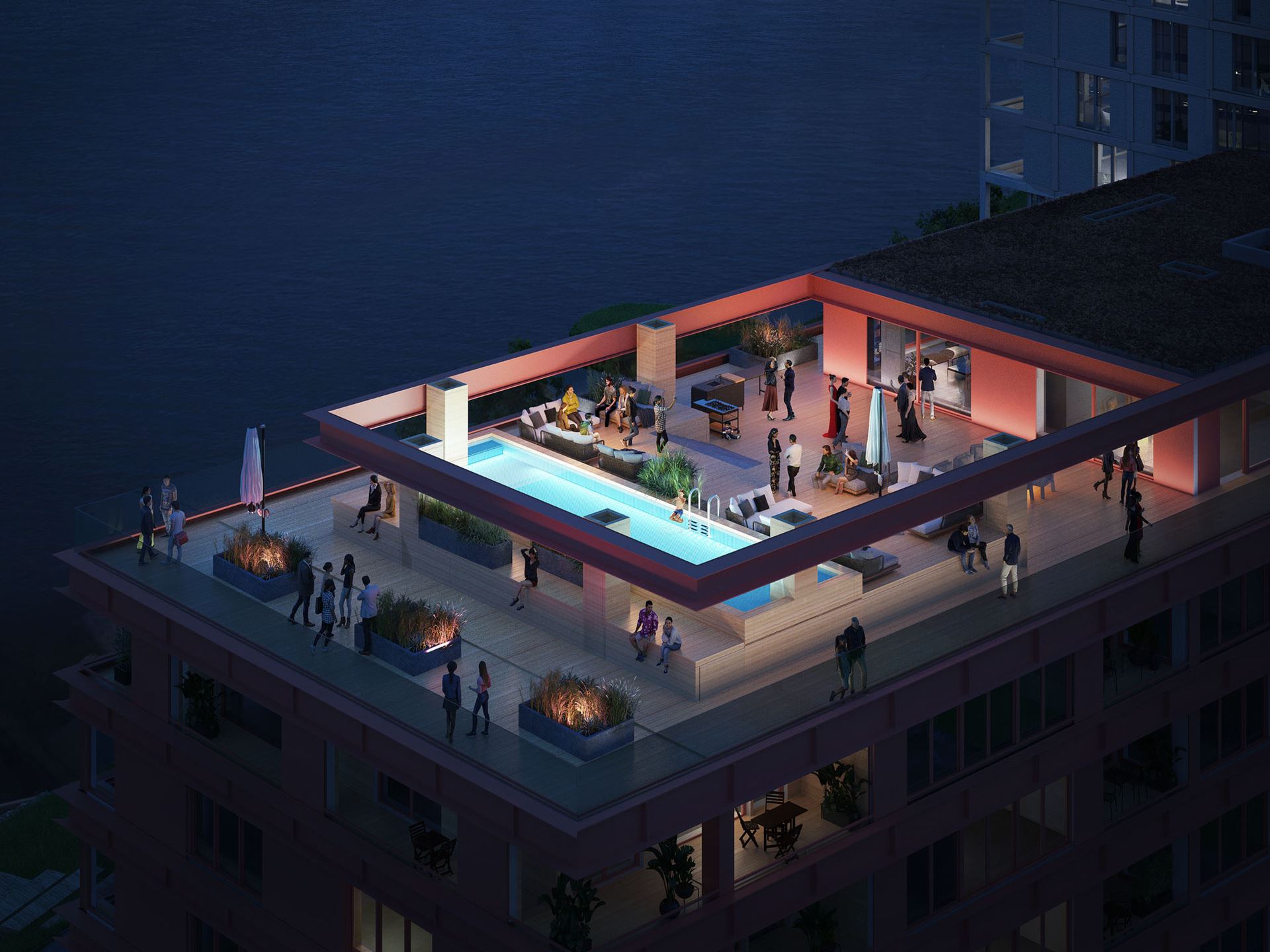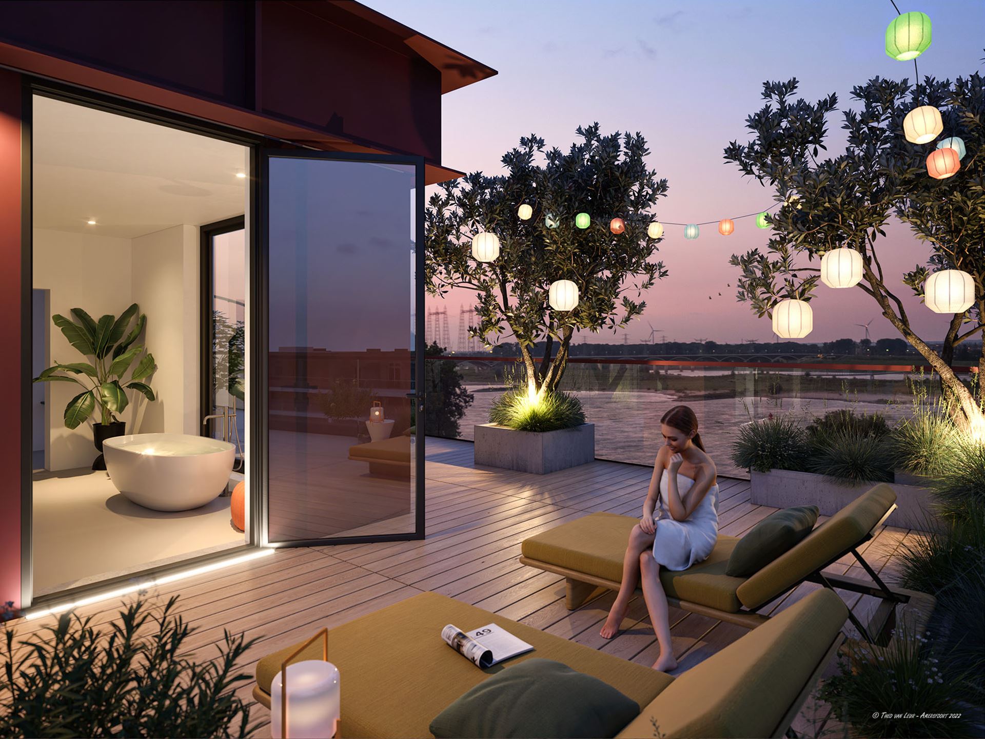 Er zijn vijf kleurrijke penthouses. Elke met een eigen naam en allemaal uniek. Net als jij, want jij bent Iris. The Flint siert de hoek van de Waalhaven en de Waal. De naam verwijst naar de kleur van het gebouw: lichtgrijs en wit. The Jade dankt haar naam aan het groen in het gebouw en kijkt op 70 meter hoogte over alles heen. The Ruby, op het roodbruine gebouw, is wel heel speciaal en niet alleen door het zwembad en het hele grote dakterras, maar ook door het prachtige panorama dat je hebt over de Waal en uiterwaarden. Net als Iris, is elk Penthouse uniek, op grote hoogte, met een zwembad, of vanwege het prachtige uitzicht. Onder The Ruby zijn nog 2 penthouses met een groot overdekt dakterras.