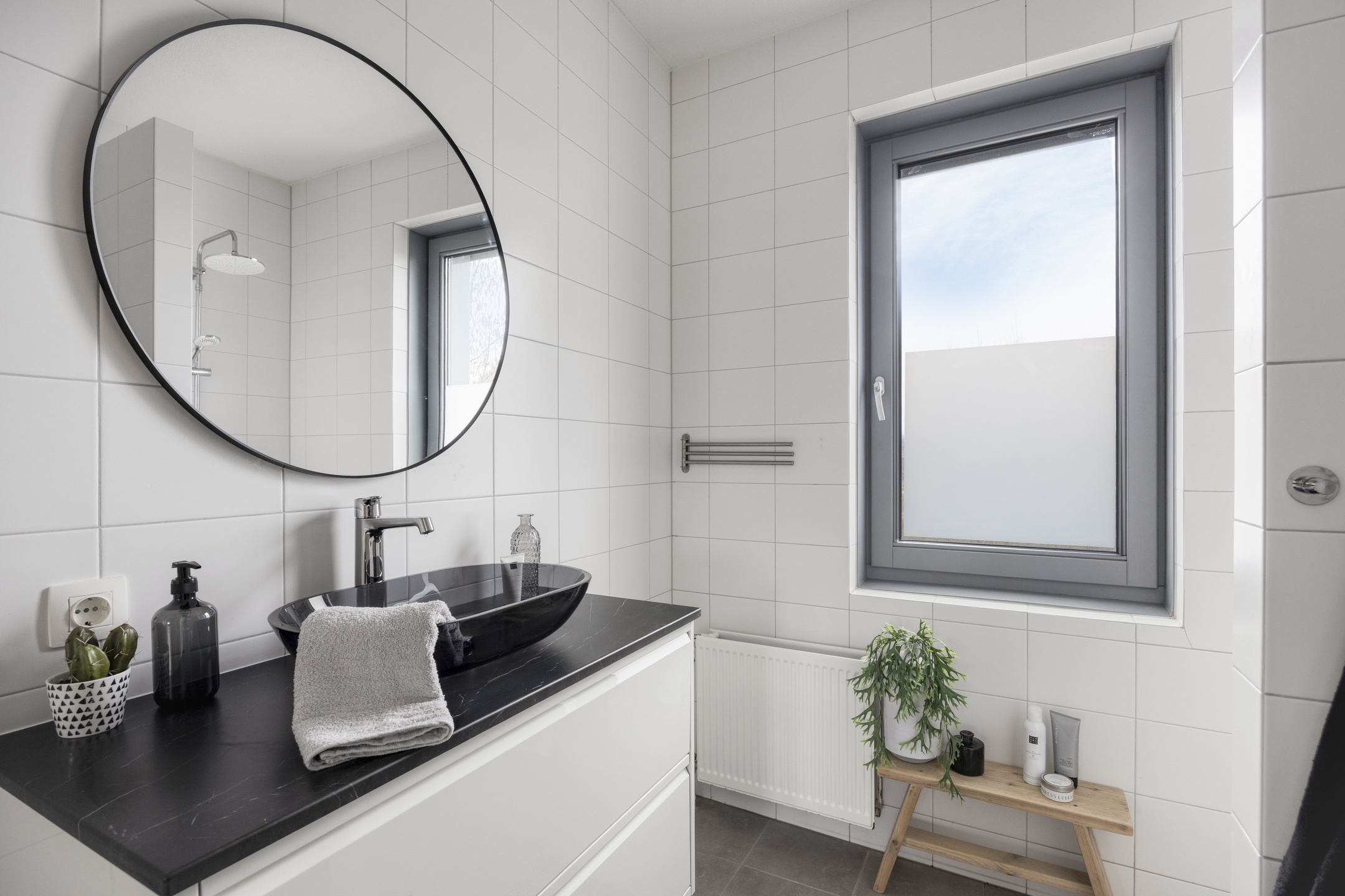Vanuit de overloop hebben we toegang tot drie volwaardige slaapkamers en een nette badkamer met wastafel met -meubel, inloopdouche en zwevend toilet.
