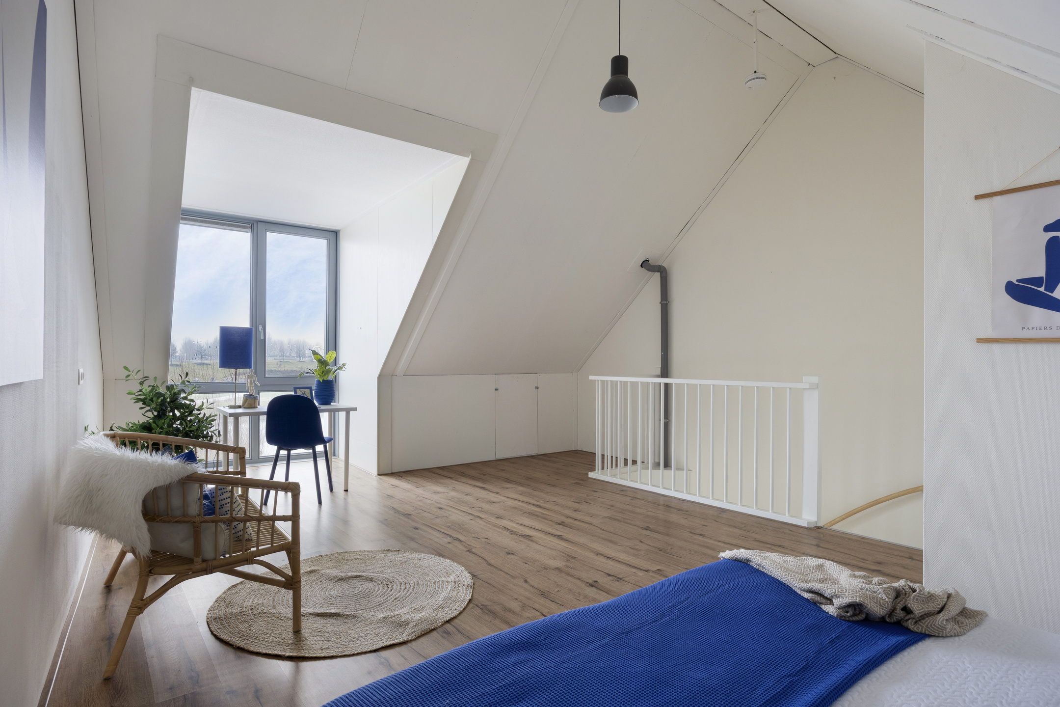 Via een vaste open trap bereiken we een riante open ruimte met dakkapel. Deze dakkapel heeft raampartijen tot de vloer waardoor je hier een uniek uitzicht hebt over het park. Een heerlijke plek om bijvoorbeeld een slaapkamer, werkkamer of hobbykamer van te maken. Er is een aparte ruimte aanwezig met de aansluitpunten voor de wasmachine en -droger, de mechanische ventilatie unit en zonnepanelenomvormer.