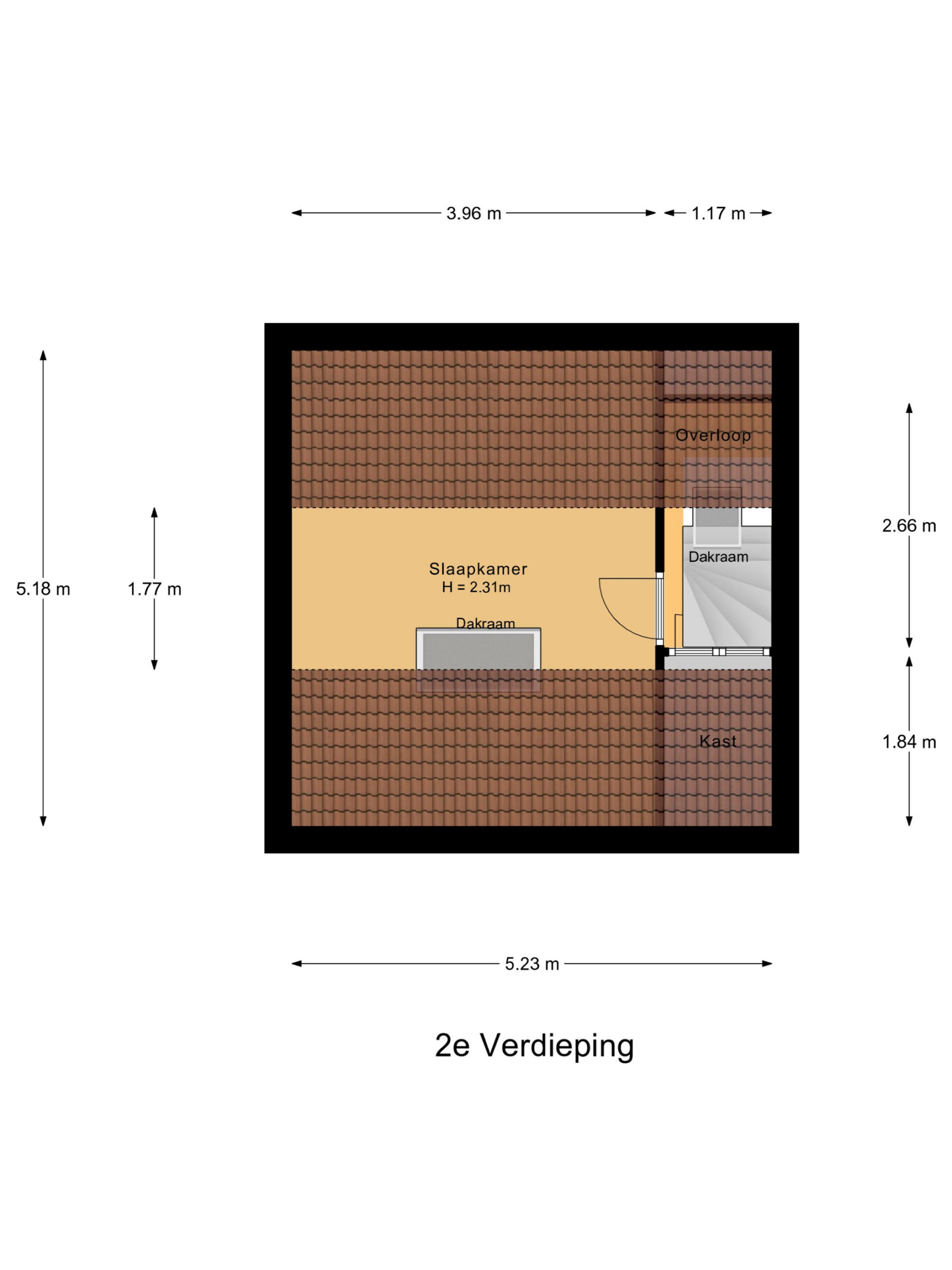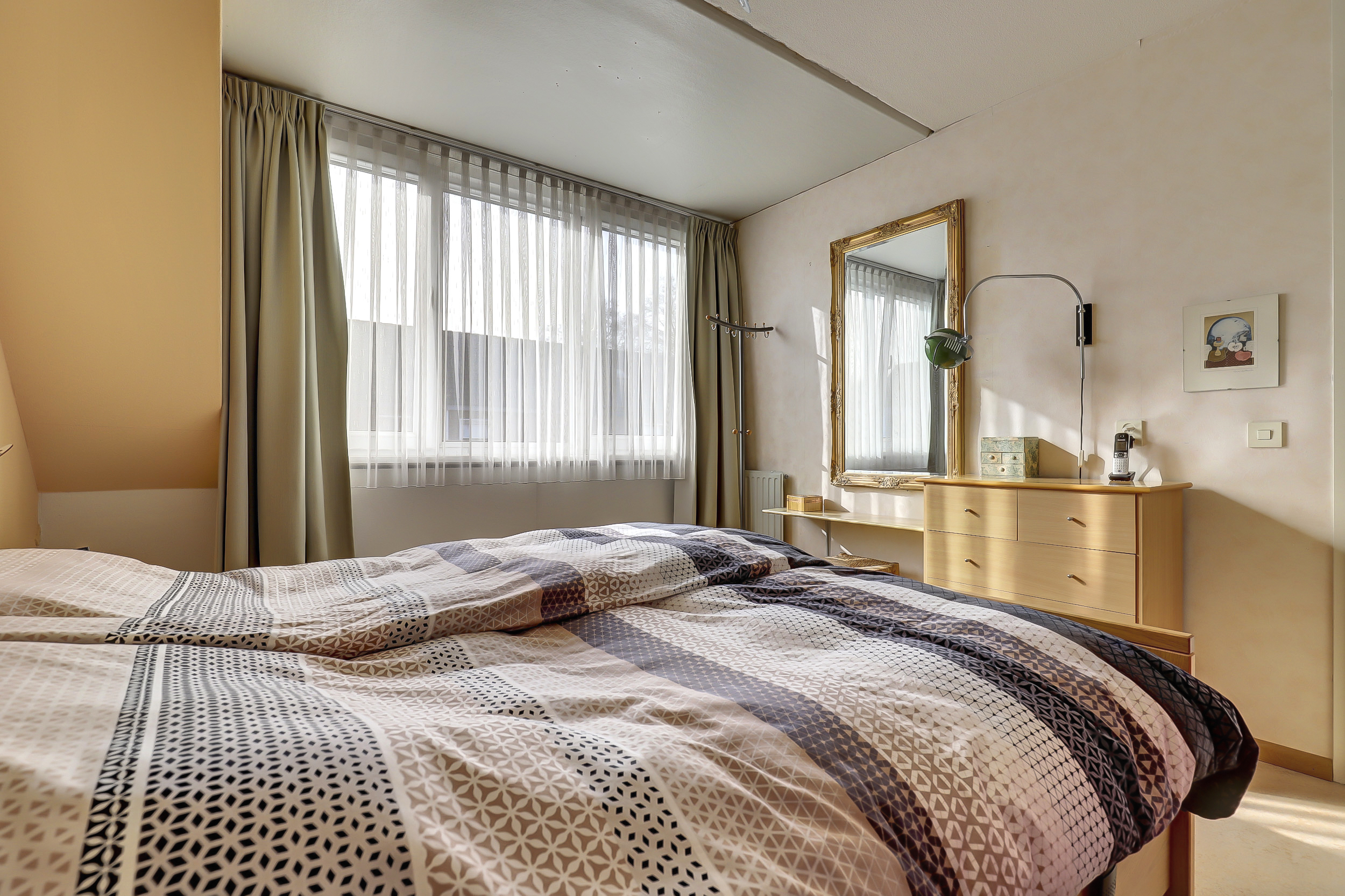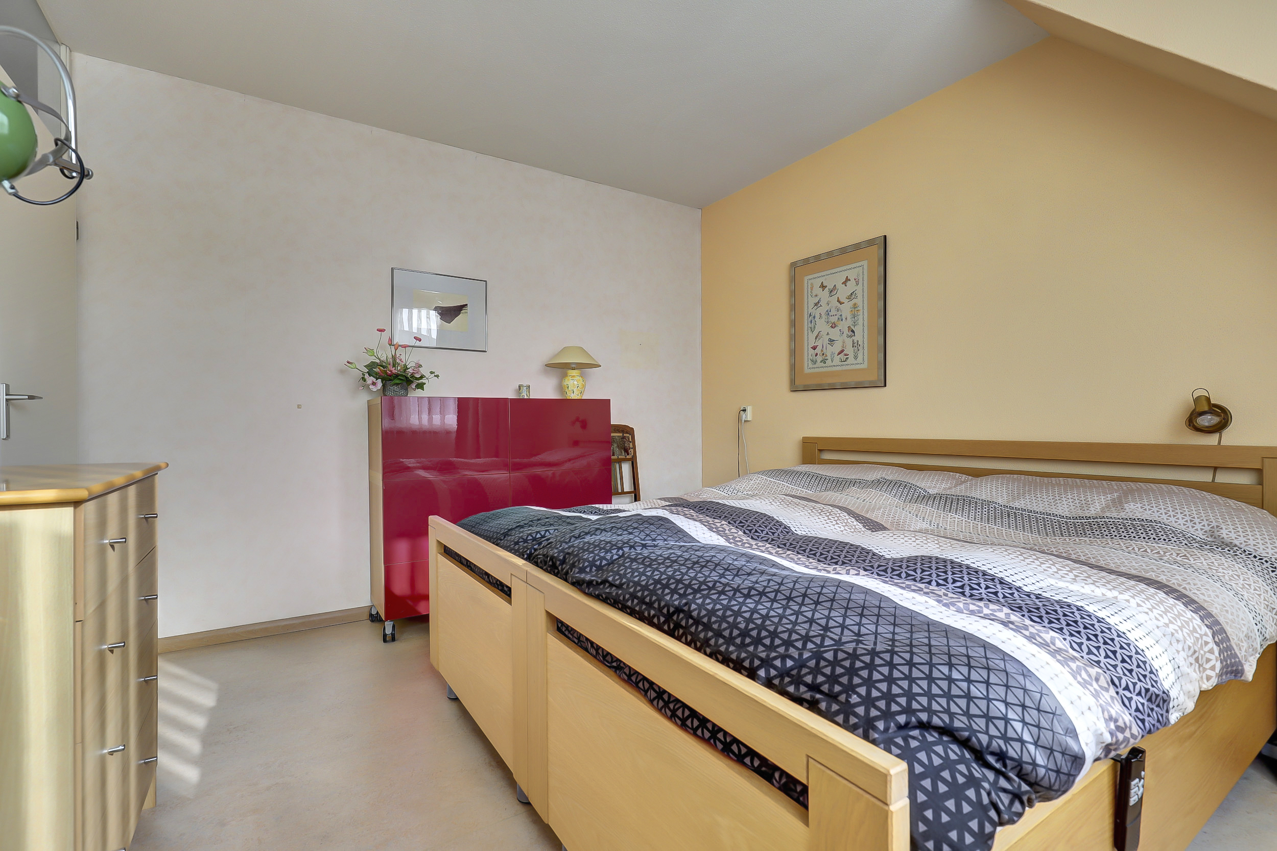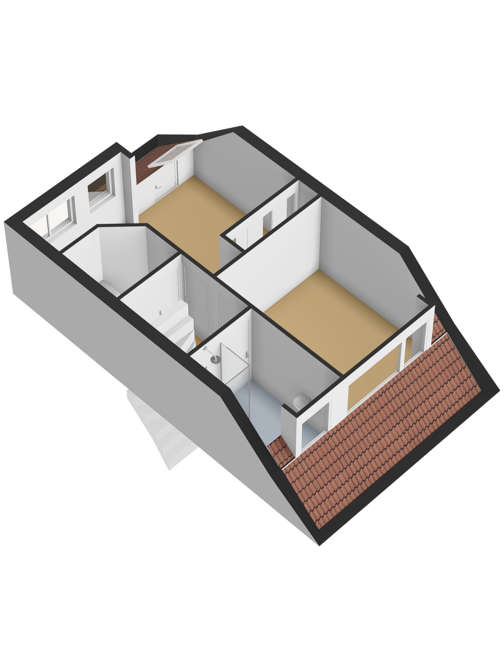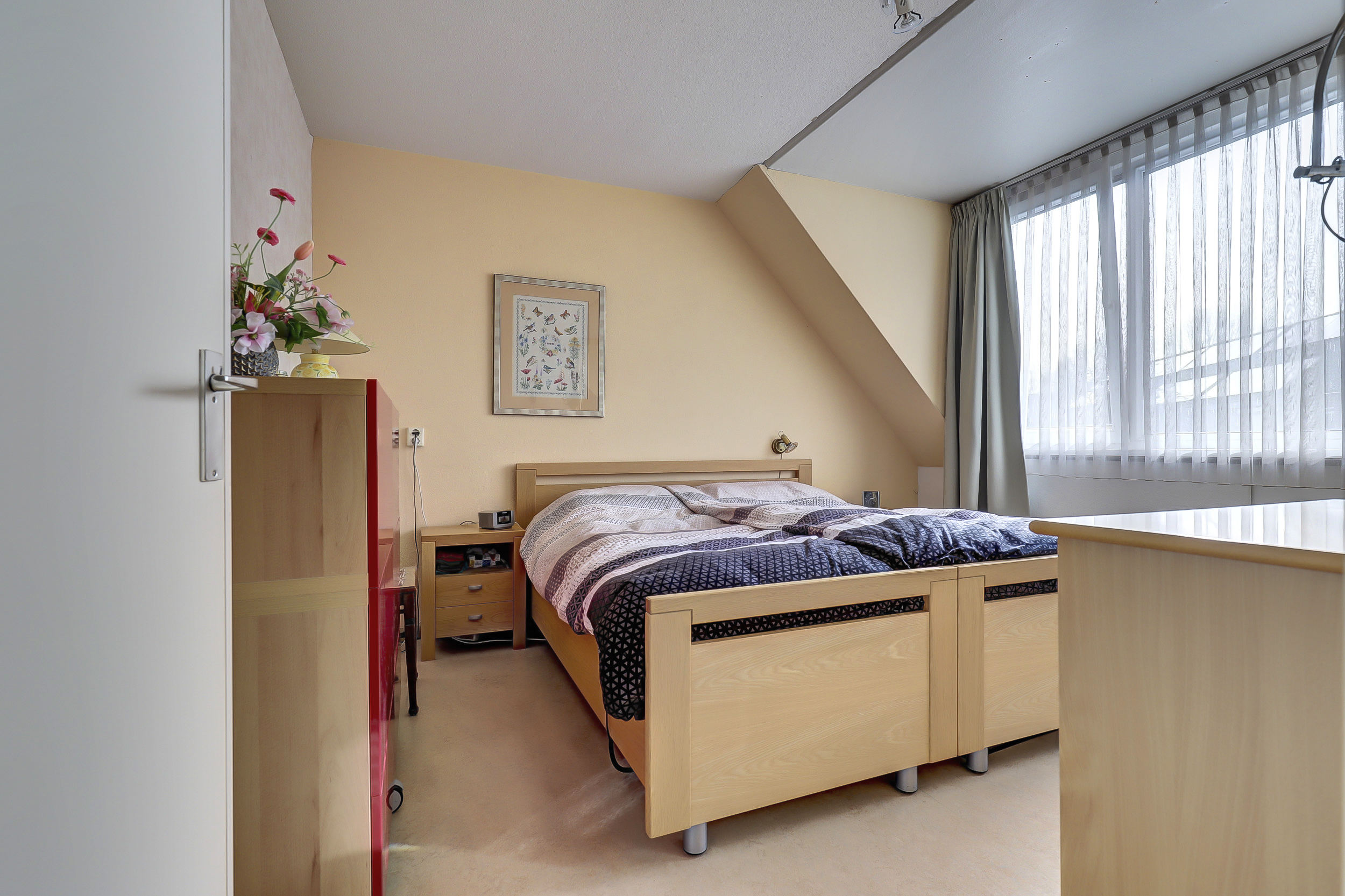 Op de tweede verdieping vind je nog extra kastruimte en een derde slaapkamer. Dankzij het grote dakraam valt er hier heerlijk veel daglicht naar binnen, wat de ruimte een lichte en prettige sfeer geeft. Ideaal als extra slaapkamer, werkplek of hobbyruimte.