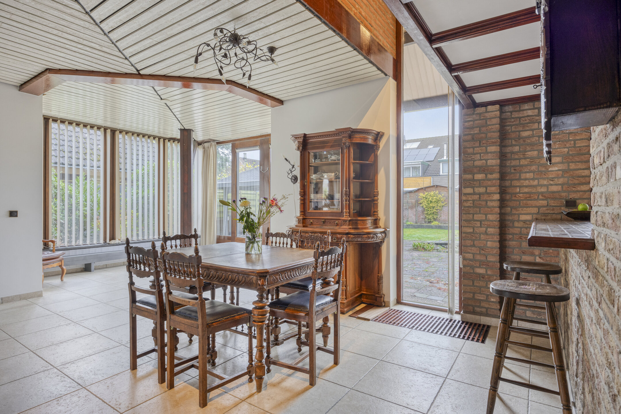 • Aangebouwde serre (1985) met uitzicht op de fraaie tuin