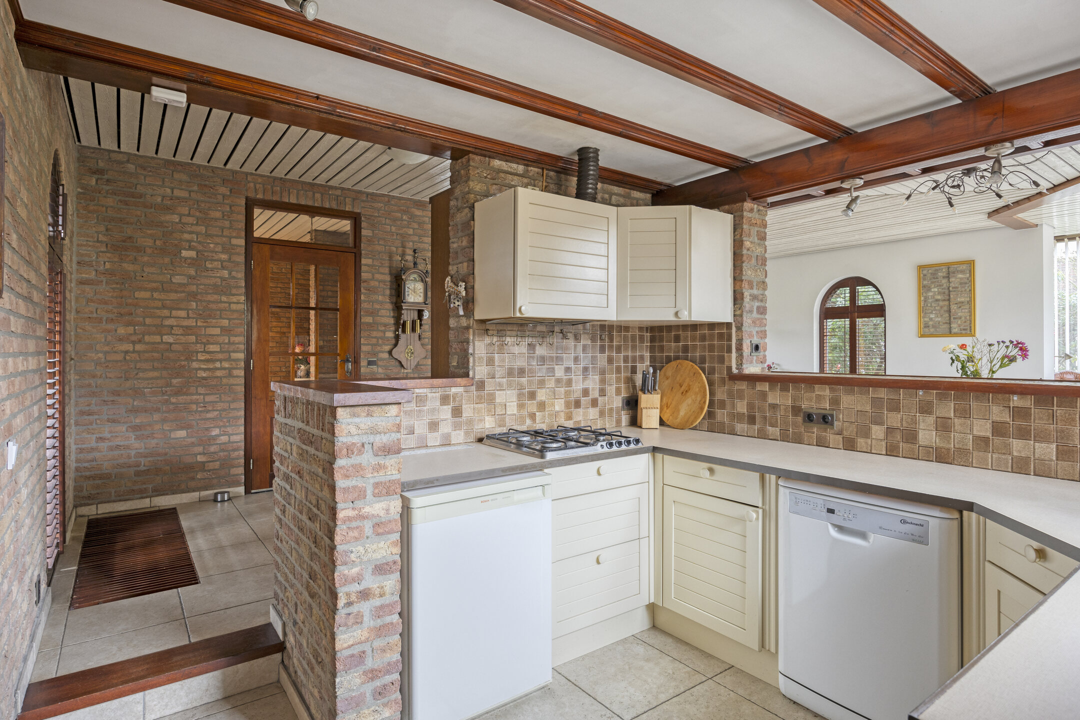 De keuken bevindt zich in de oorspronkelijke staat (bouwjaar 1981) en biedt volop mogelijkheden voor een moderne update. Aansluitend vind je de praktische bijkeuken/inpandige berging, voorzien van verwarming, water en elektra. Deze ruimte is eventueel bij de keuken te betrekken voor het realiseren van een royale woonkeuken, of te transformeren tot een extra slaapkamer.