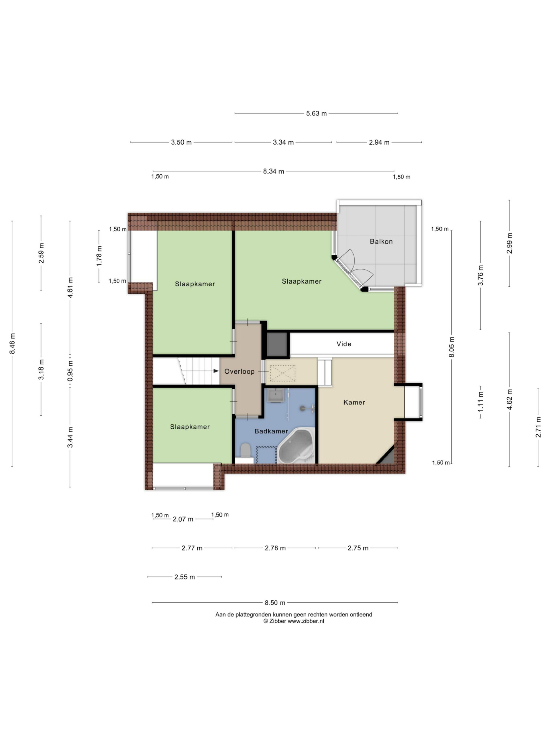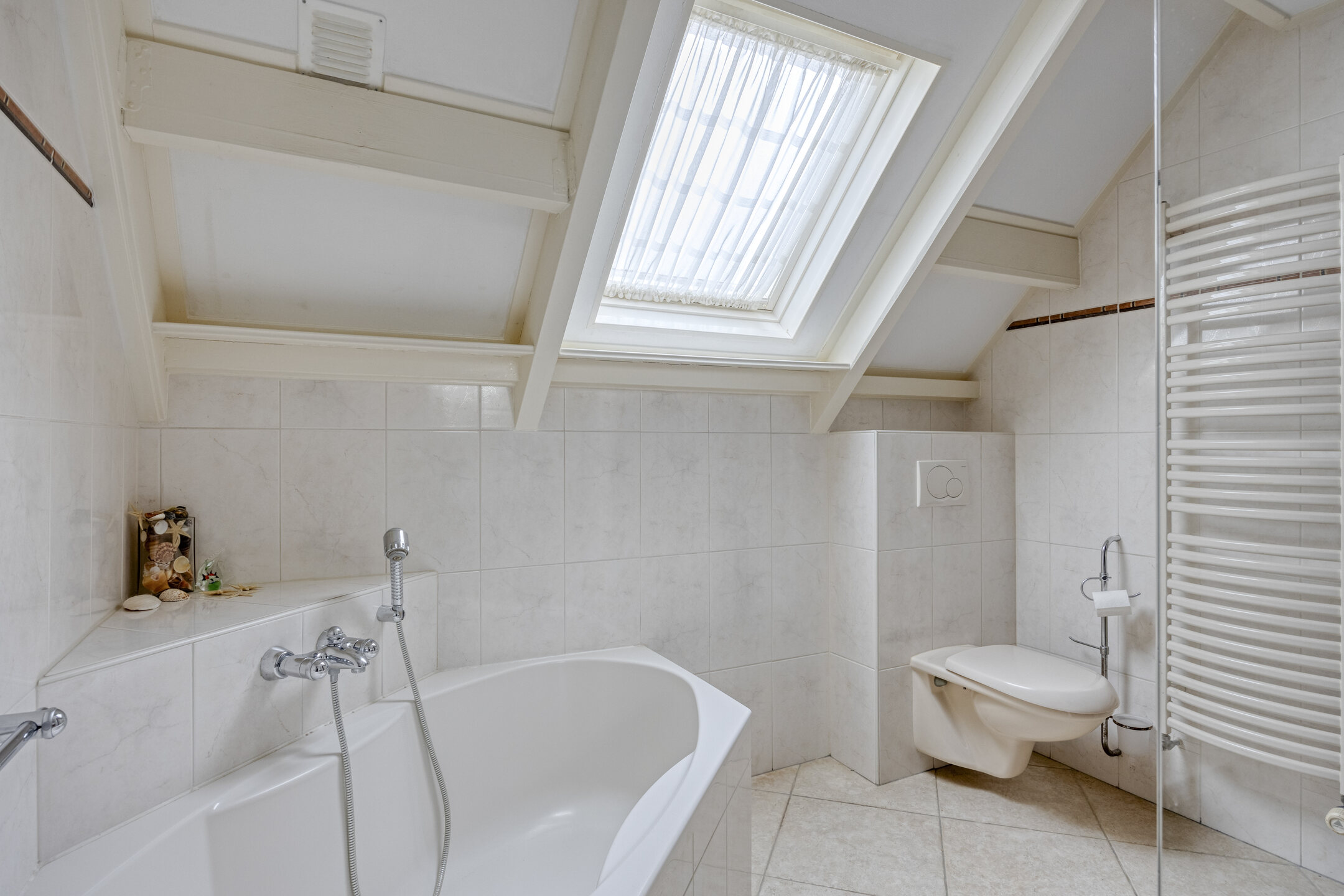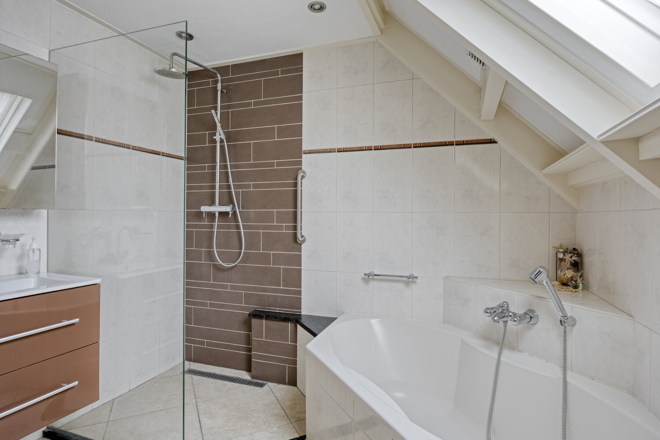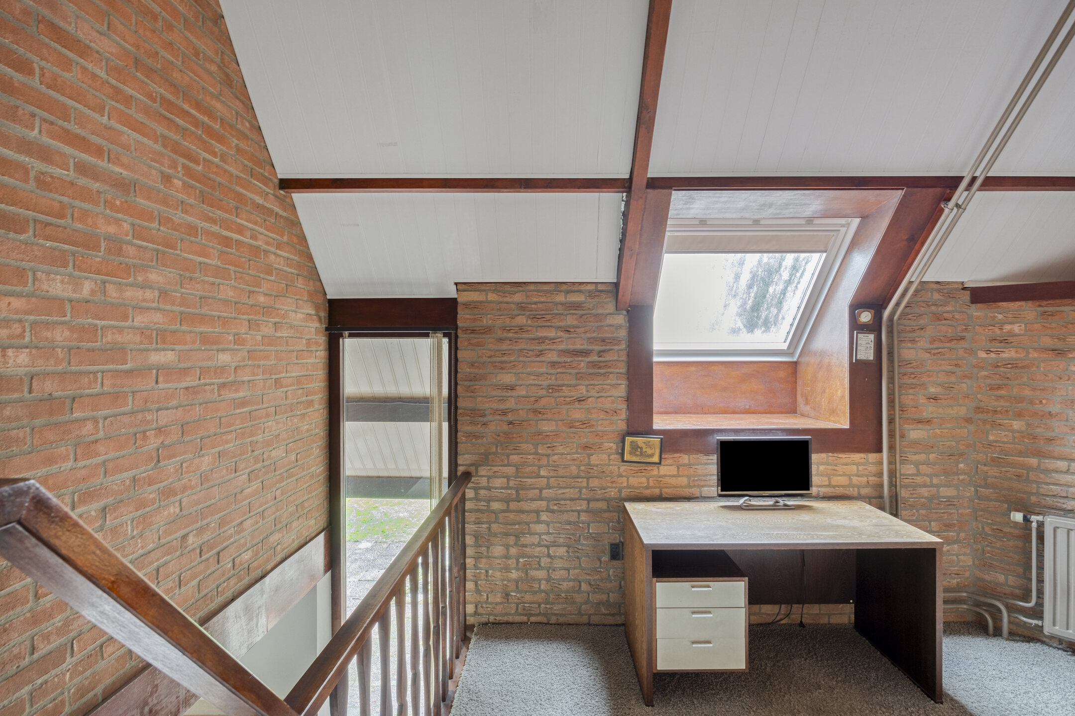 De overloop biedt toegang tot drie ruime slaapkamers. De masterbedroom beschikt over een balkon, dat eventueel bij de kamer getrokken kan worden voor extra woonoppervlak. Dankzij het aanwezige dakraam is de vide een lichte ruimte. Momenteel wordt deze gebruikt als werkkamer, maar het creëren van een vierde slaapkamer behoort hier zeker tot de mogelijkheden. De badkamer is voorzien van een ligbad, inloopdouche, toilet, vloerverwarming, wastafel en wastafelmeubel. Dankzij de raampartijen geniet je hier van natuurlijke lichtinval en goede ventilatie.