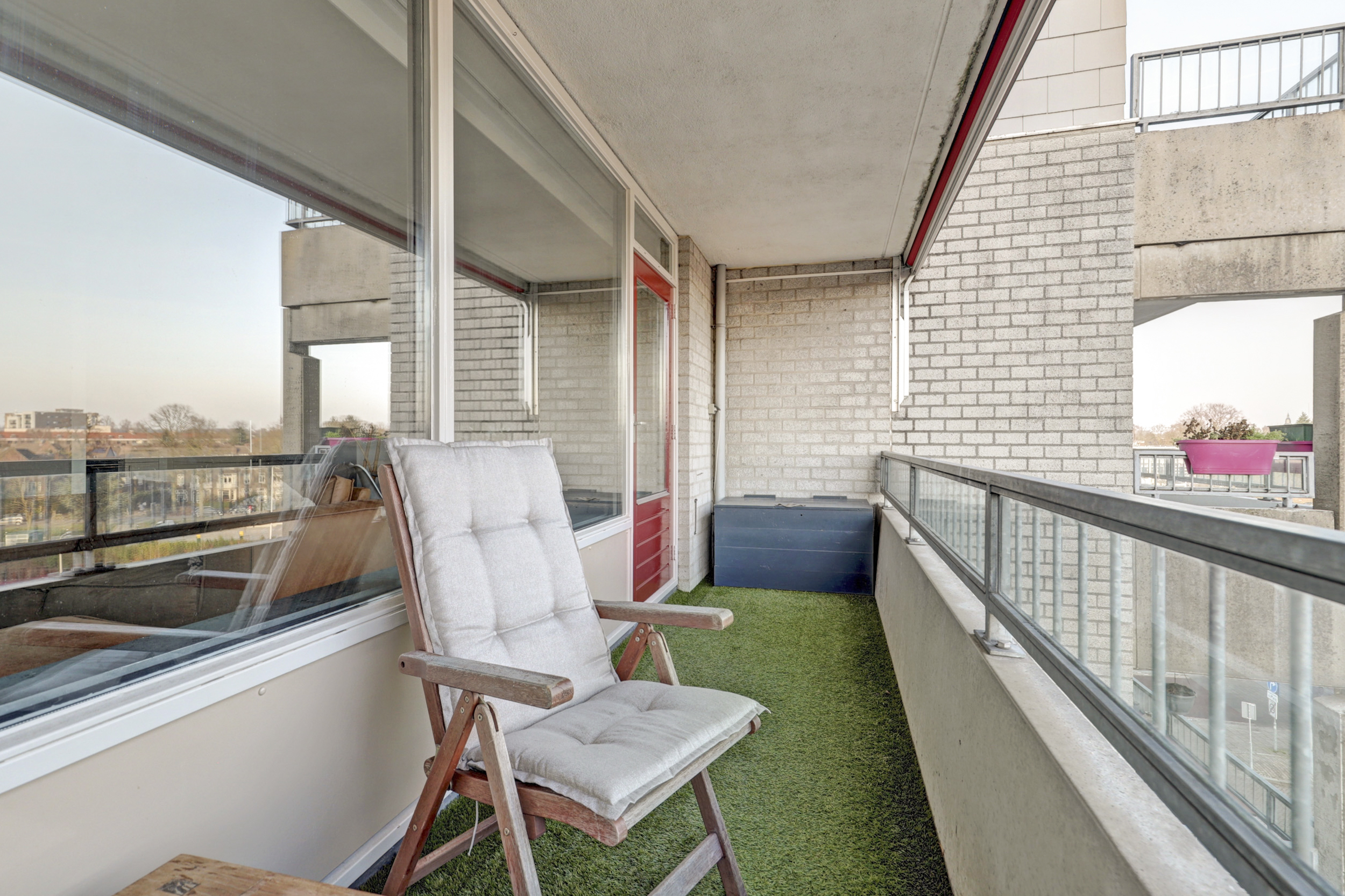 Je betreedt het appartement op de vierde verdieping van een complex met liftinstallatie. Vanaf het overdekte balkon aan de voorzijde geniet je elke dag van een fraai stadsbeeld. Bovendien beschikt de woning over een eigen parkeerplaats in de afgesloten parkeerkelder, en extra parkeergelegenheid vind je op de afgesloten binnenplaats en in de directe omgeving.