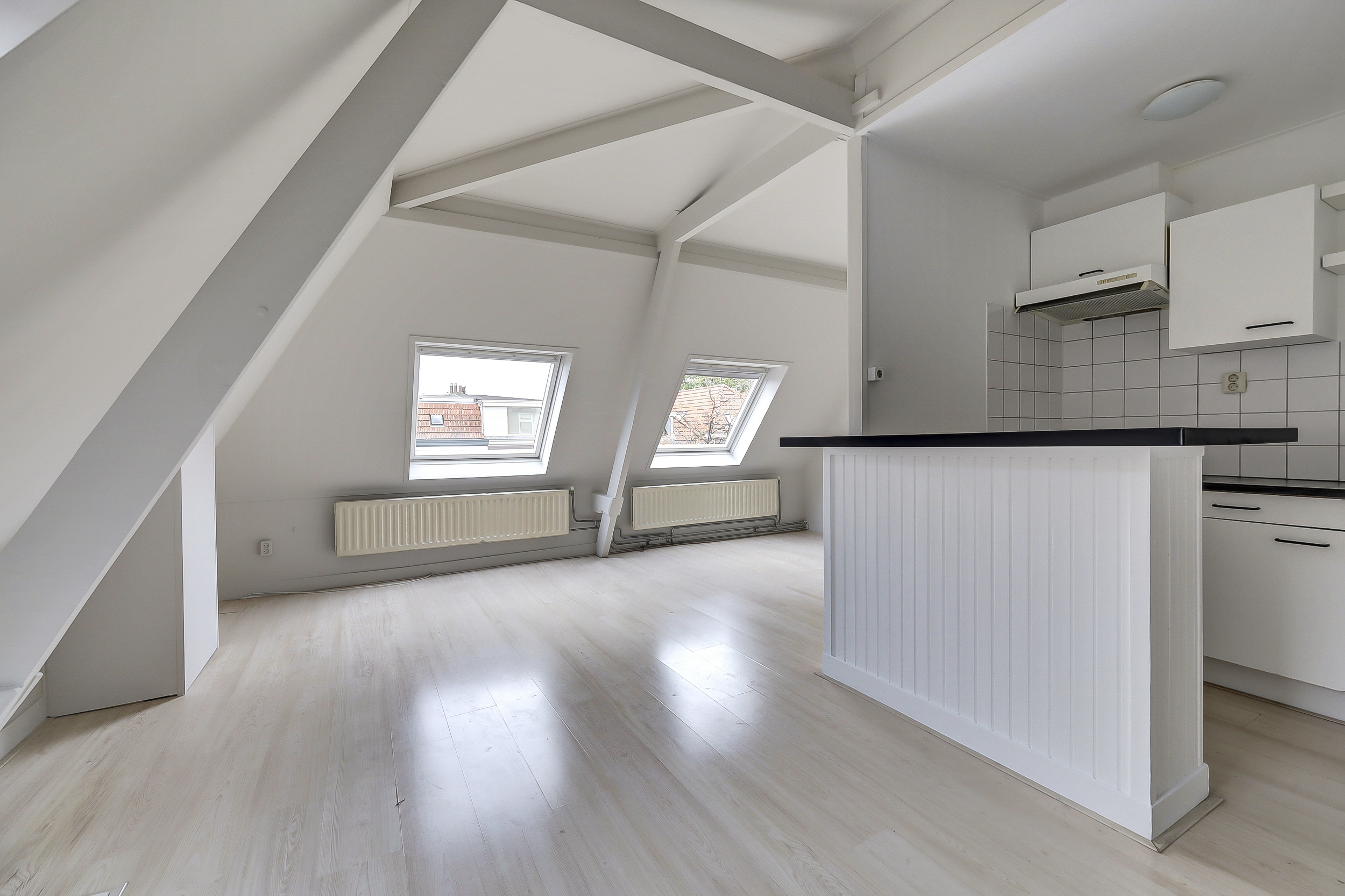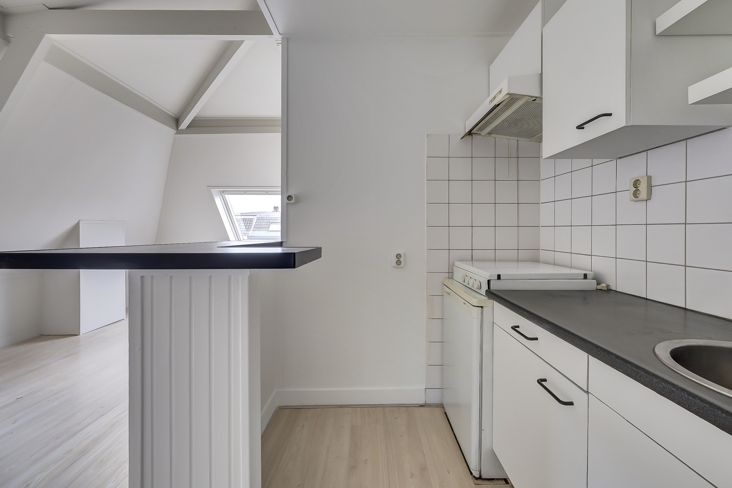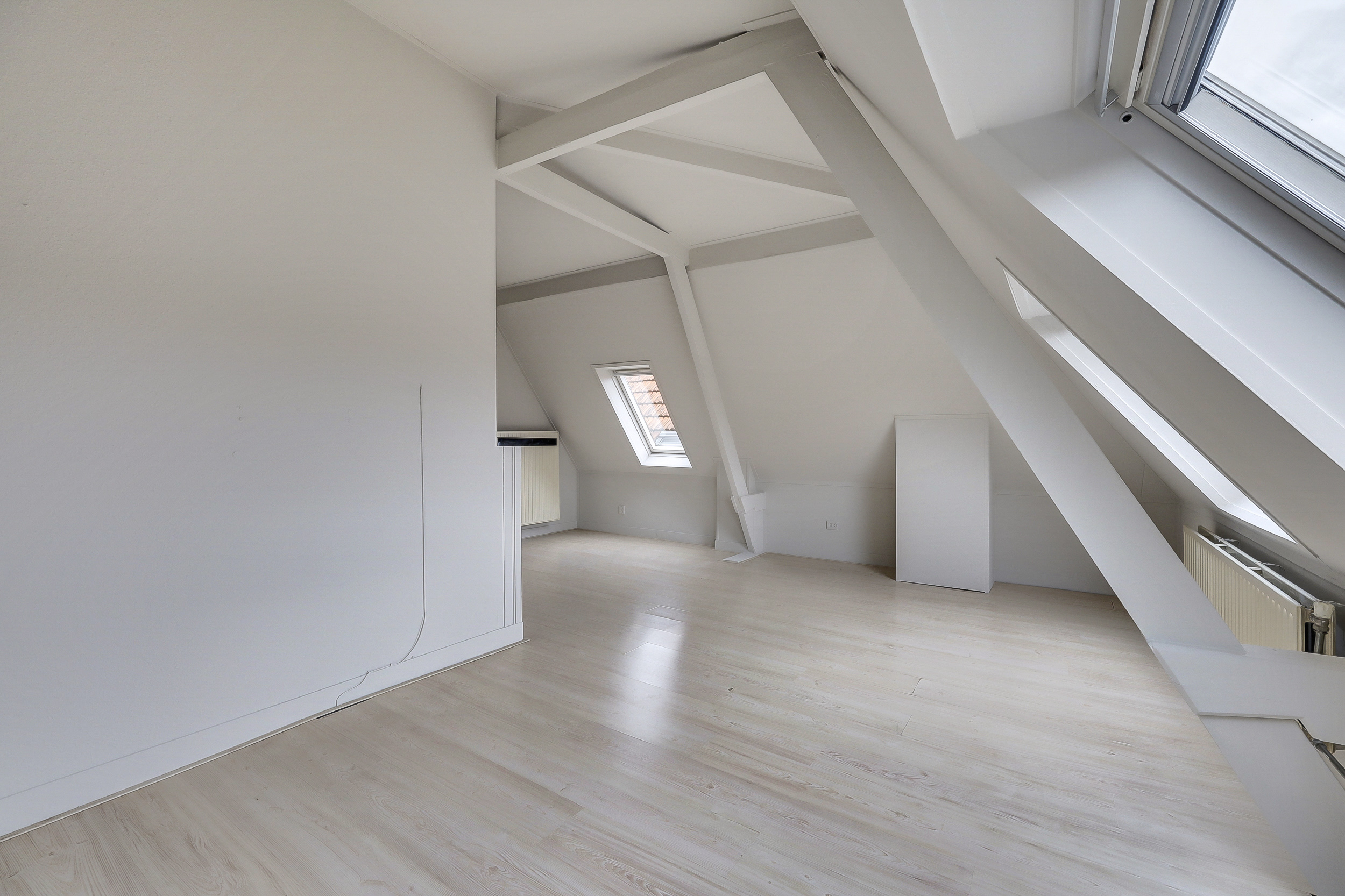 Het betreft 14-1: de bovenste etage van een bovenwoning, gelegen op de 2e verdieping en met een woonoppervlakte van 42 m². In deze wooneenheid geniet je van een praktische eenvoudige open keuken die via een gezellig barretje overgaat in een lichte woonkamer met diverse dakramen die zorgen voor volop natuurlijk licht. Tevens beschikt de woning over een comfortabele slaapkamer aan de achterzijde en een eenvoudige badkamer met douche, toilet en wastafel. Op de overloop vind je tevens de aansluiting voor de wasmachine, samen met de CV-ketel, die gedeeld wordt met de andere wooneenheid.