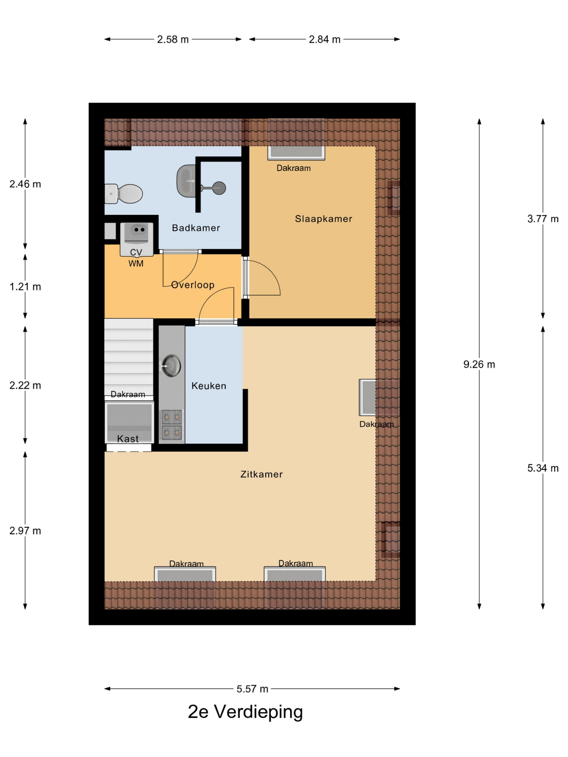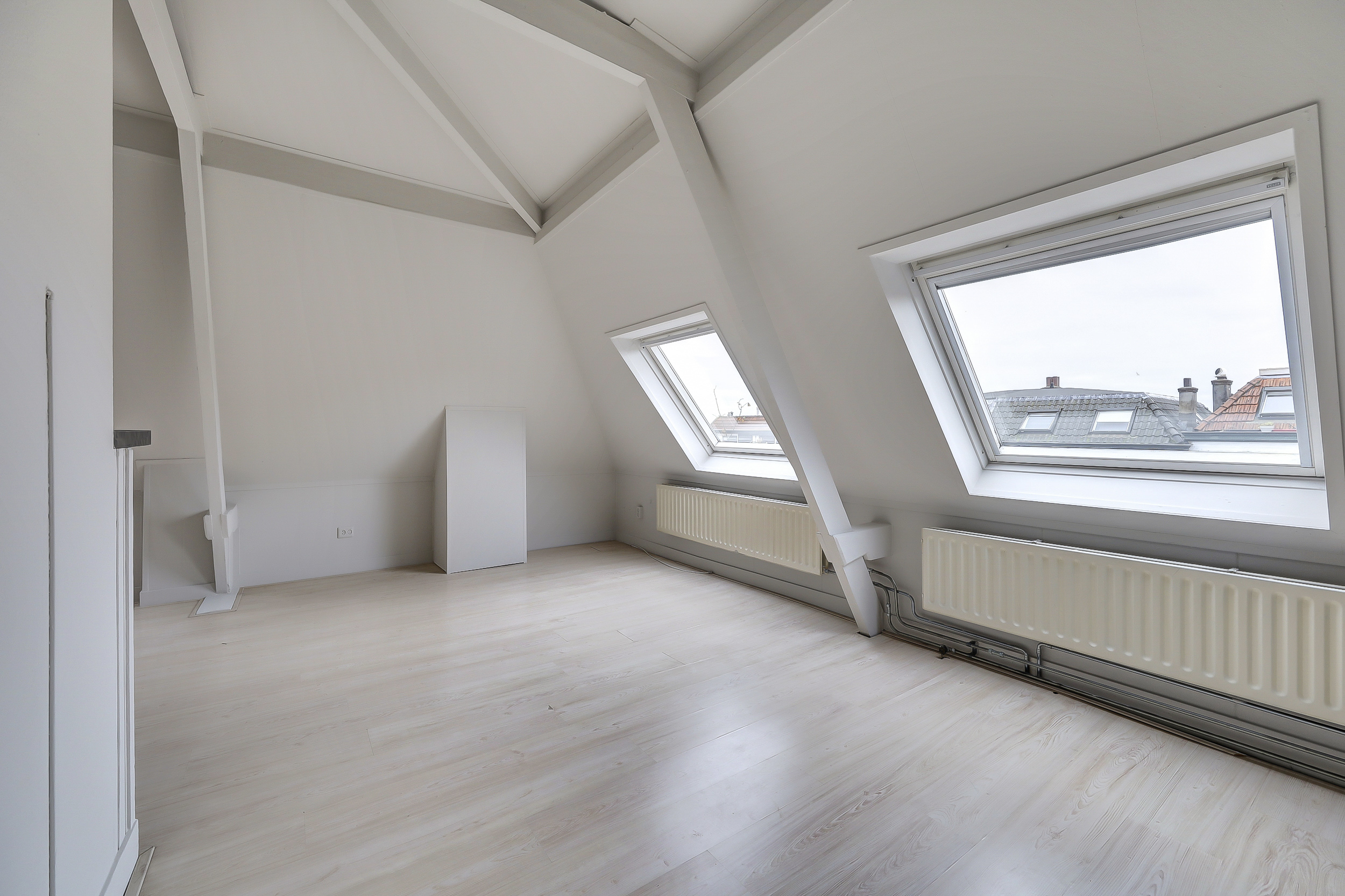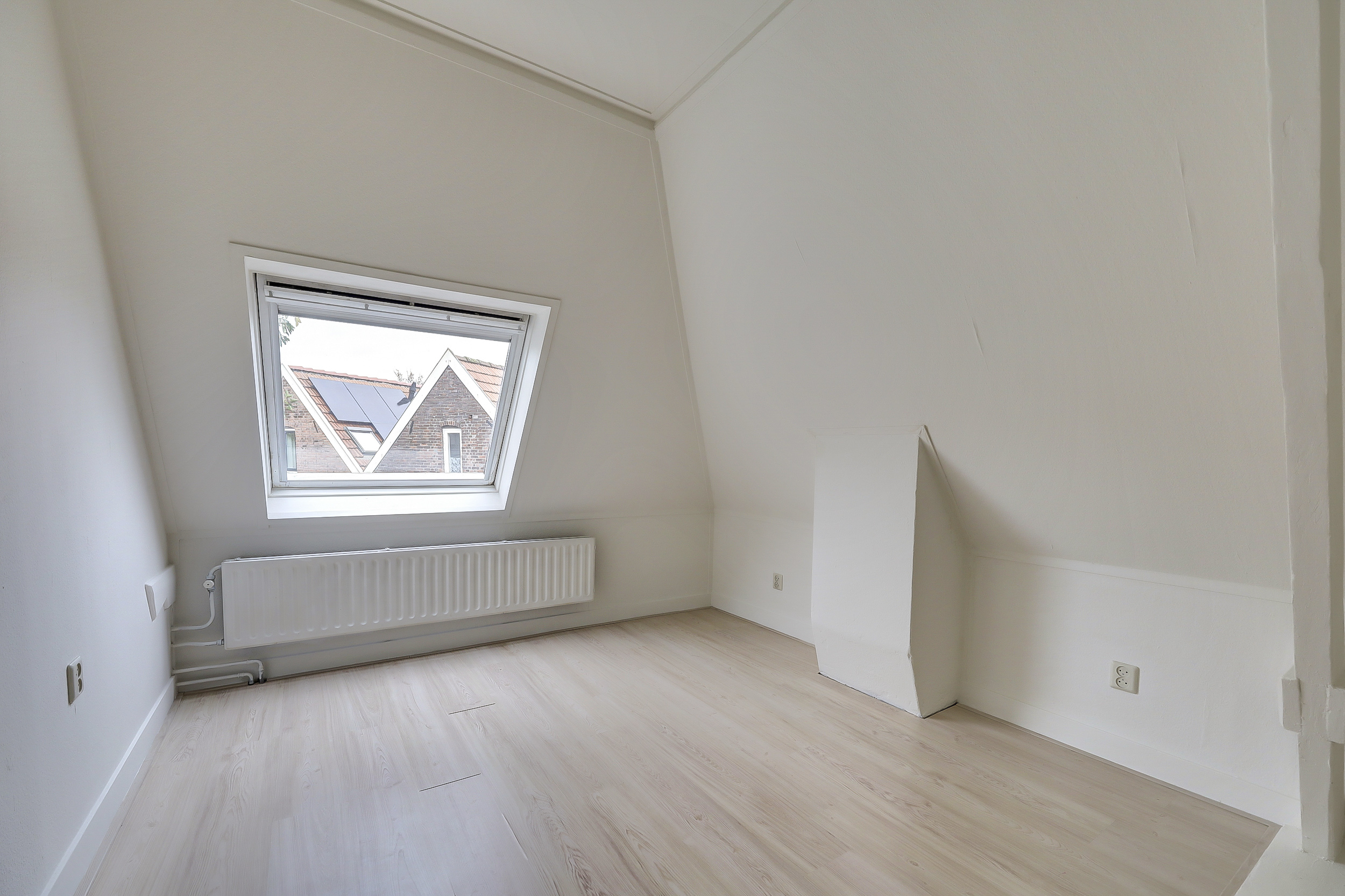 Het betreft 14-1: de bovenste etage van een bovenwoning, gelegen op de 2e verdieping en met een woonoppervlakte van 42 m². In deze wooneenheid geniet je van een praktische eenvoudige open keuken die via een gezellig barretje overgaat in een lichte woonkamer met diverse dakramen die zorgen voor volop natuurlijk licht. Tevens beschikt de woning over een comfortabele slaapkamer aan de achterzijde en een eenvoudige badkamer met douche, toilet en wastafel. Op de overloop vind je tevens de aansluiting voor de wasmachine, samen met de CV-ketel, die gedeeld wordt met de andere wooneenheid.