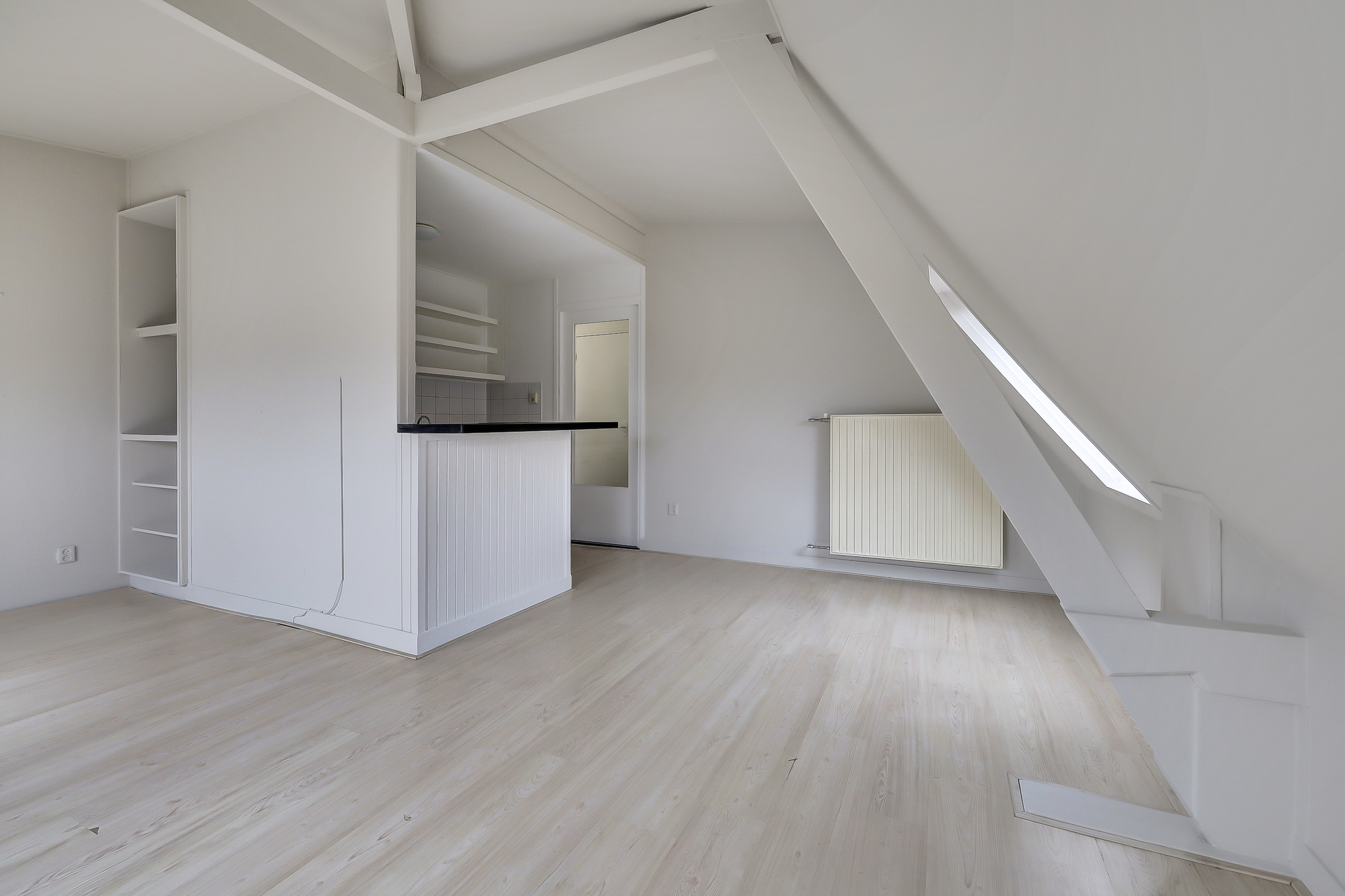 Het betreft 14-1: een etage van een bovenwoning, gelegen op de 2e verdieping en met een woonoppervlakte van 42 m². In deze wooneenheid geniet je van een praktische eenvoudige open keuken die via een gezellig barretje overgaat in een lichte woonkamer met diverse dakramen die zorgen voor volop natuurlijk licht. Tevens beschikt de woning over een comfortabele slaapkamer aan de achterzijde en een eenvoudige badkamer met douche, toilet en wastafel. Op de overloop vind je tevens de aansluiting voor de wasmachine, samen met de CV-ketel, die gedeeld wordt met de andere wooneenheid.