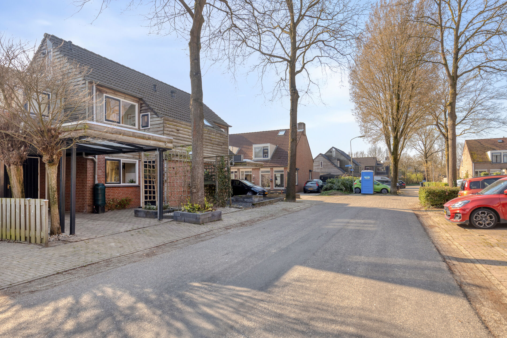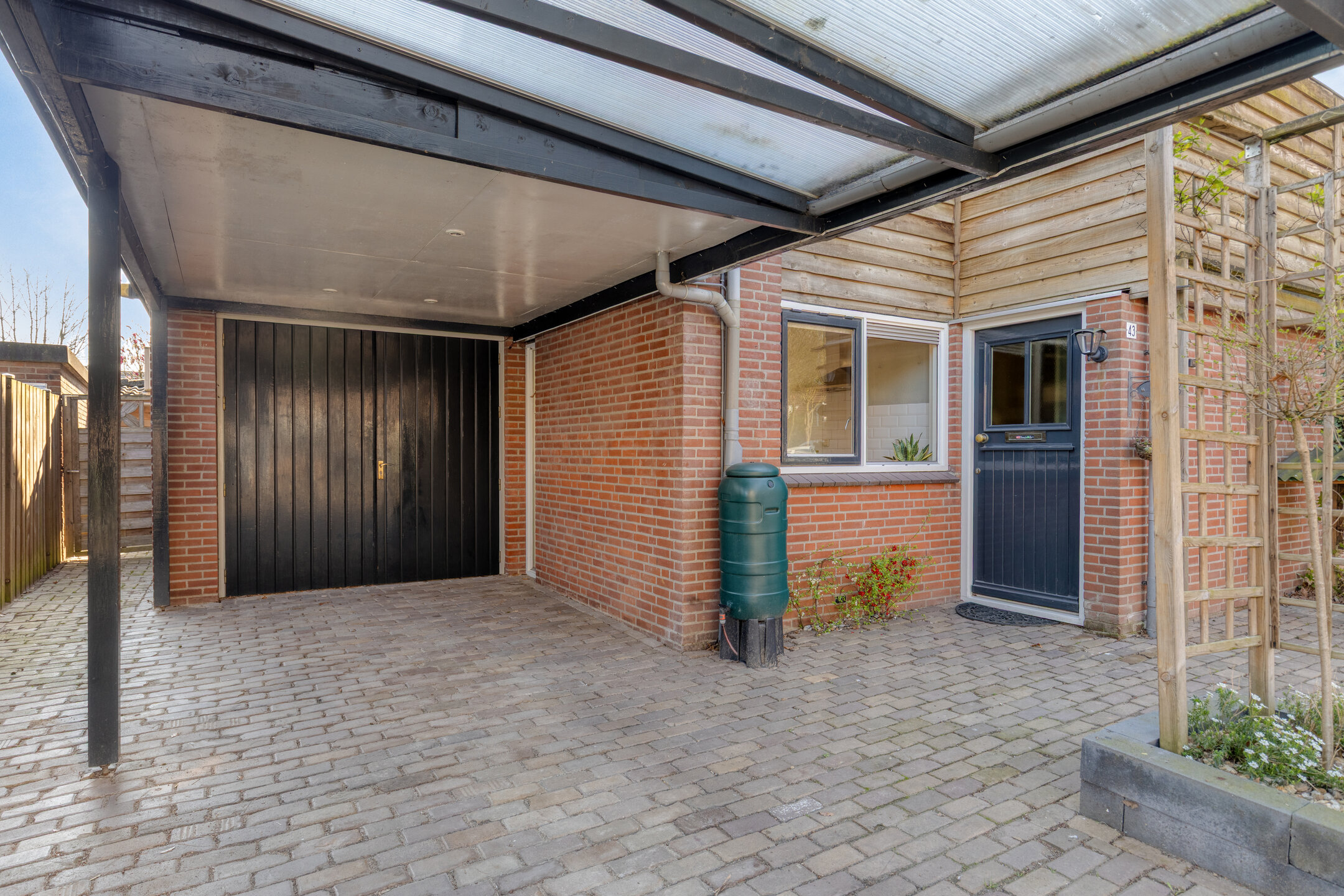 De woning heeft een goed onderhouden achtertuin die is gelegen op het zuidoosten en biedt volop ruimte voor een zithoek en eventueel speelruimte. De tuin heeft een achterom en een veranda, perfect voor het buitenleven. Aan de voorzijde van de woning bevindt zich een nette voortuin. De garage is aangebouwd en voorzien van elektra, met daarvoor een carport met parkeerruimte voor één auto op eigen terrein.