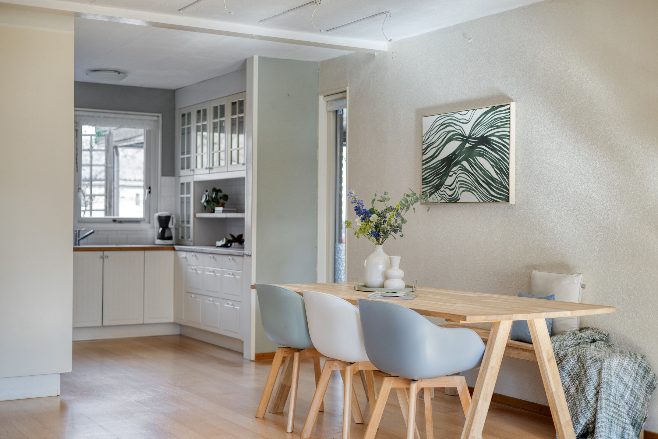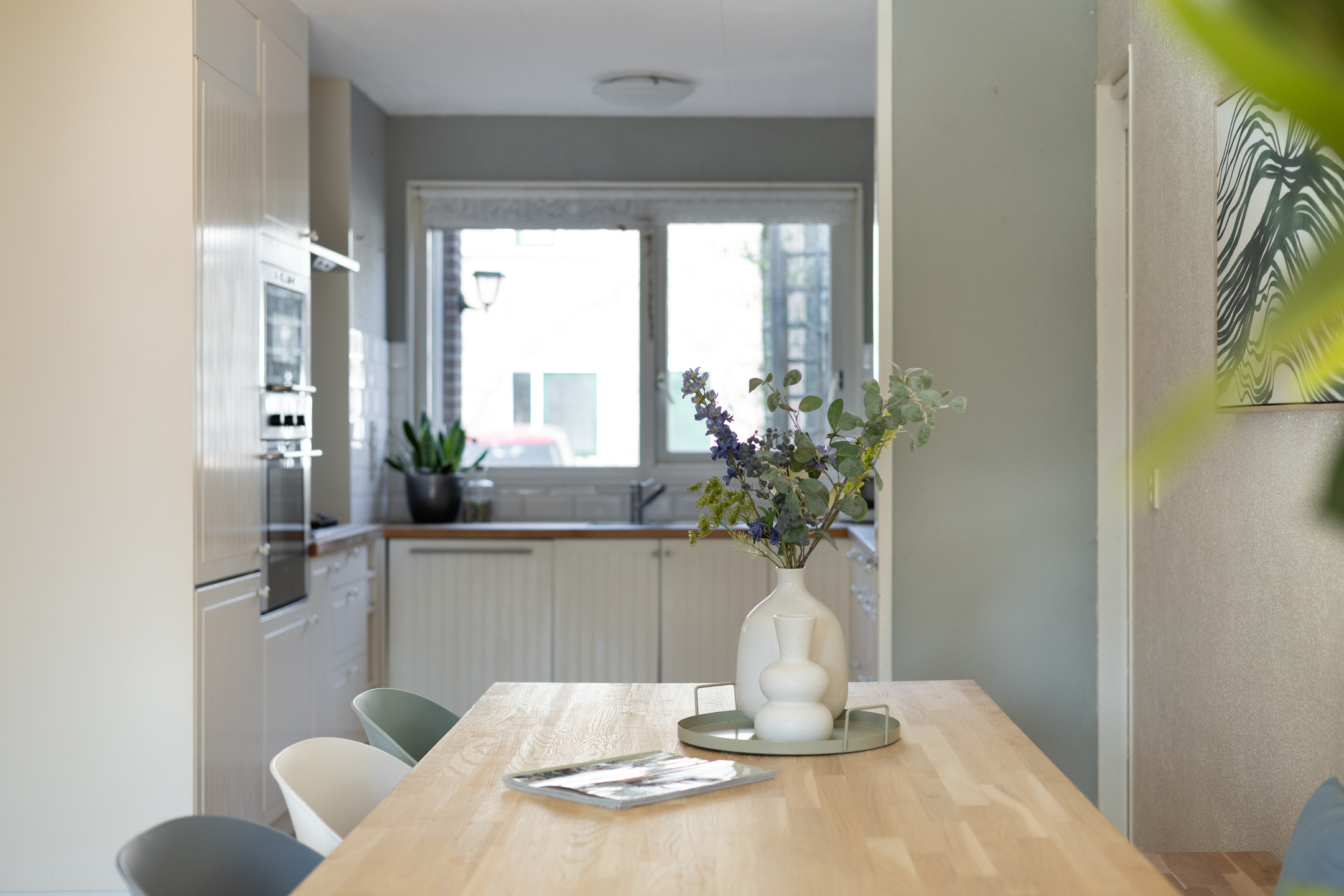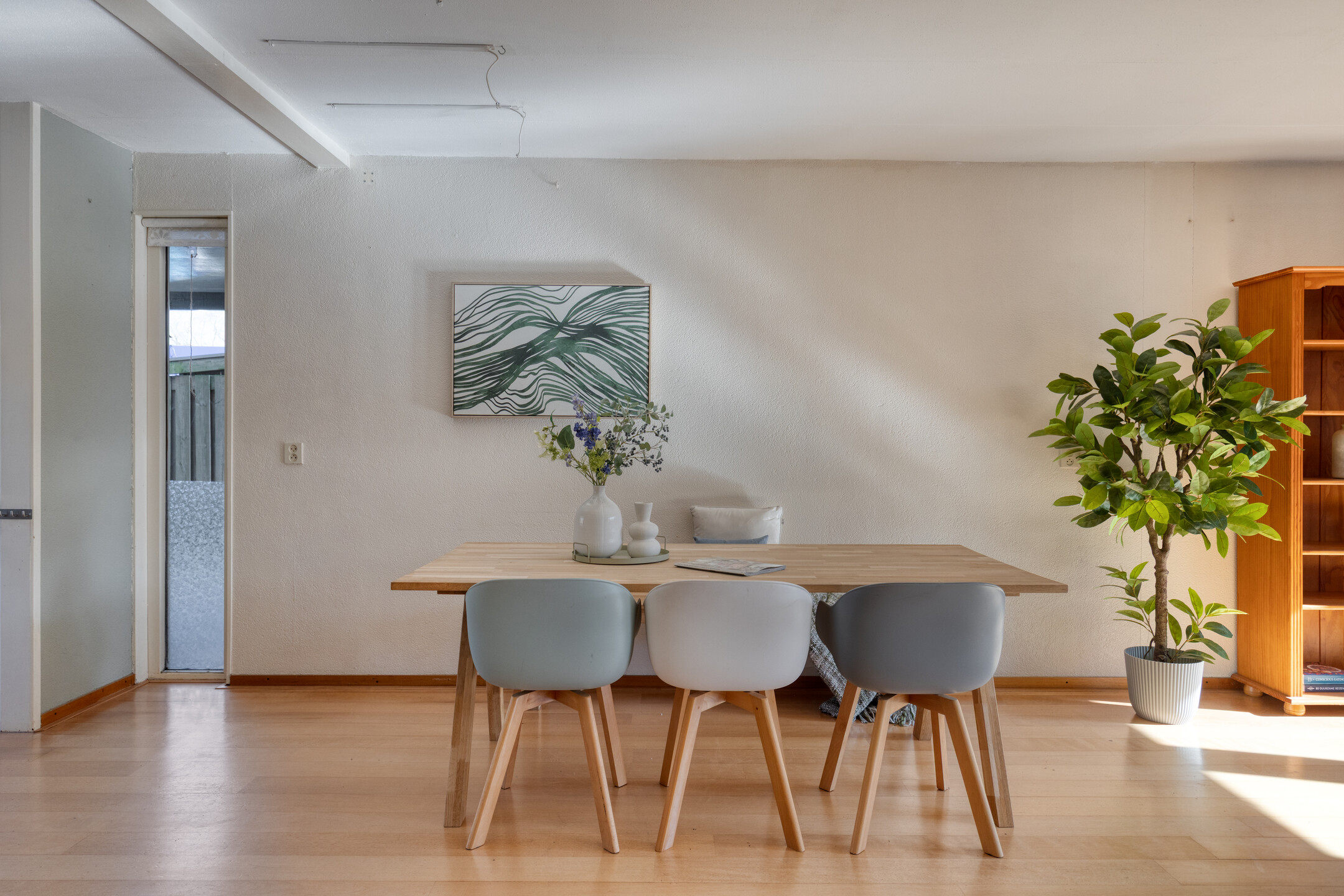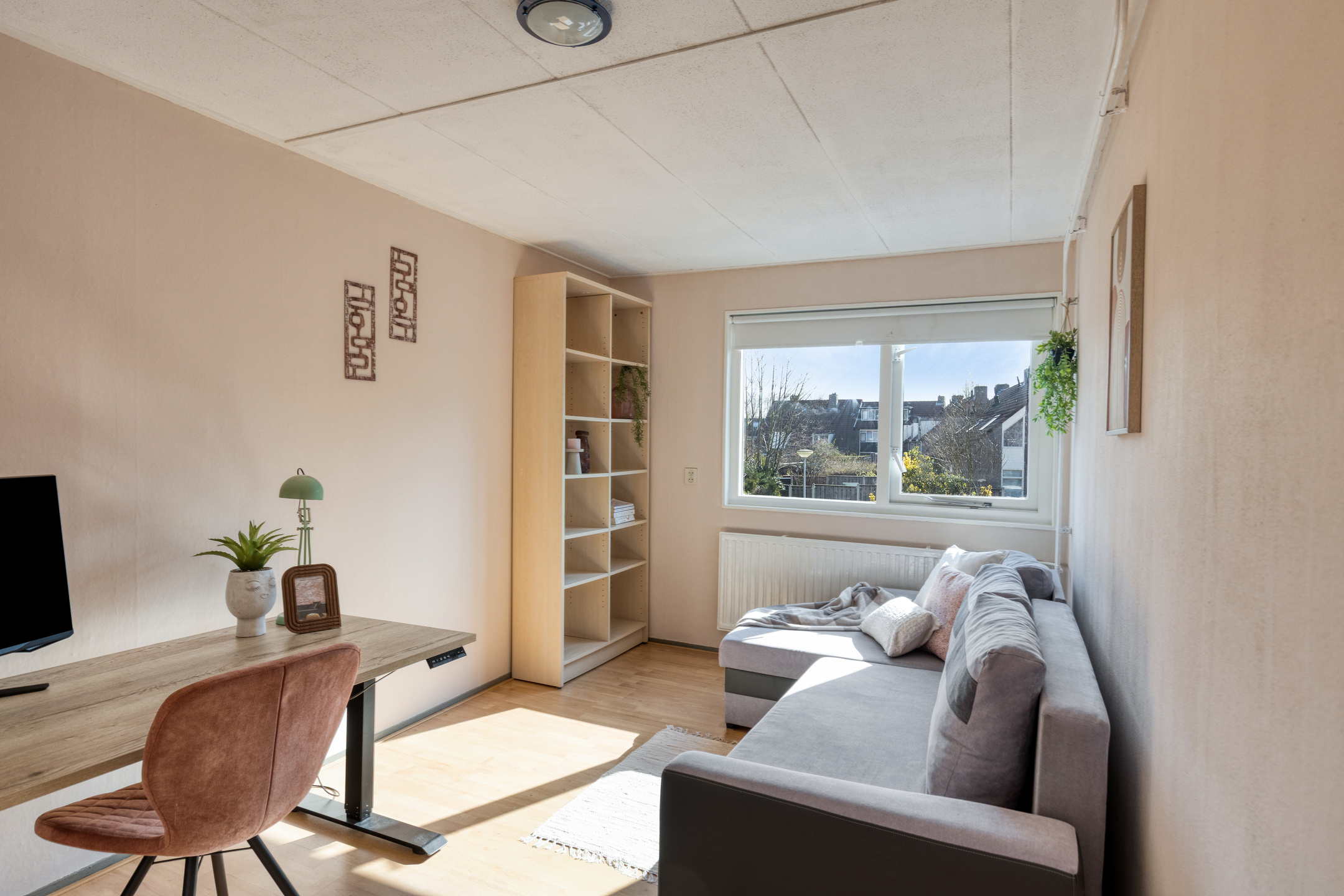 Bij binnenkomst kom je in de ruime hal met toegang tot de meterkast, toilet en gang. Vanuit hier bereik je de woonkamer, die heerlijk licht is dankzij de openslaande tuindeuren naar de verzorgde achtertuin. De woonkamer heeft een praktische indeling en is voorzien van een nette afwerking, airconditioning en houten vloer. De open keuken is voorzien van de benodigde inbouwapparatuur, zoals o.a. een gaskookplaat, oven, magnetron, vaatwasser (2020) en biedt volop opbergruimte. Verder is er een provisieruimte voor extra opslag.