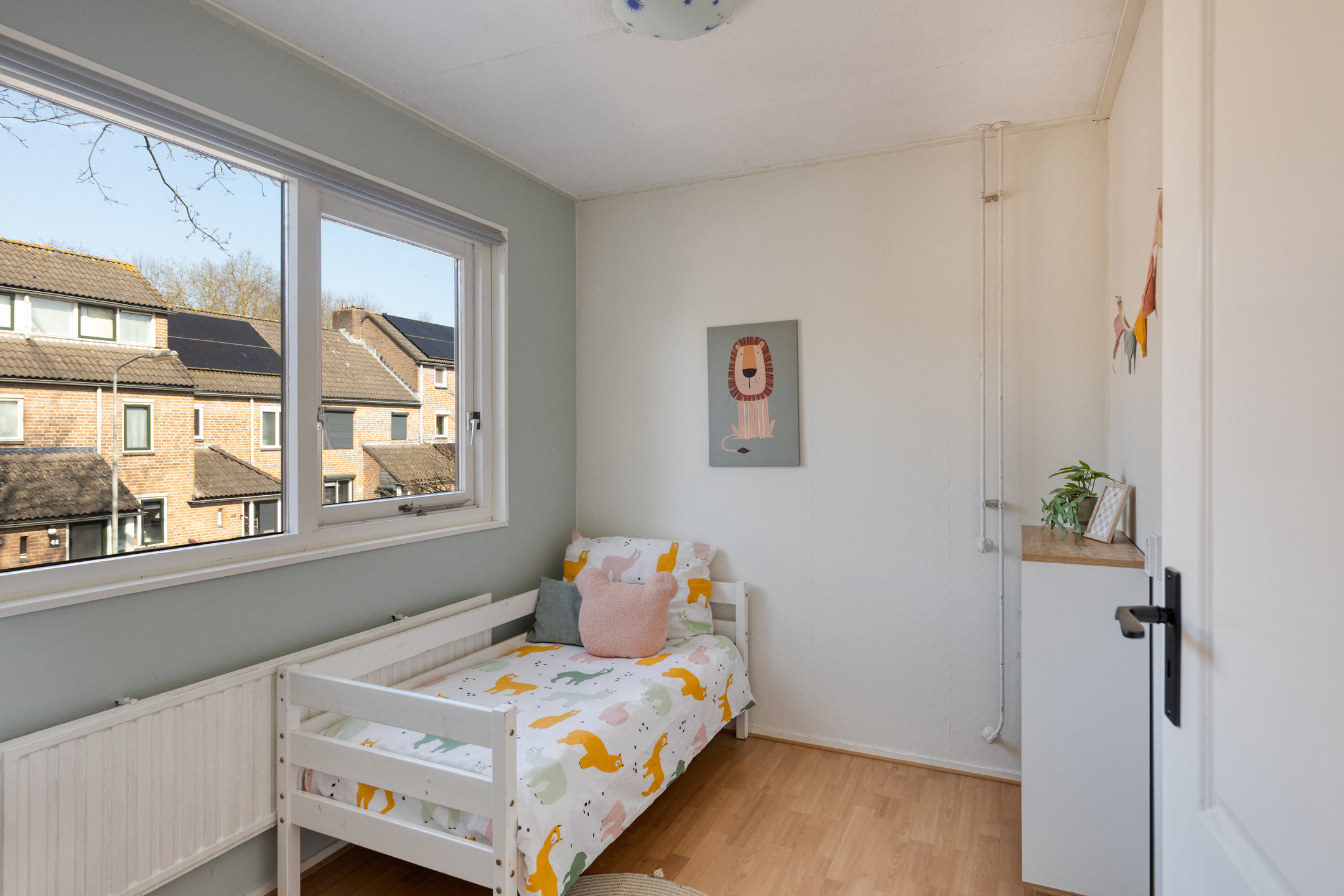 Op de eerste verdieping bevindt zich de overloop, die toegang geeft tot vier slaapkamers van verschillende afmetingen. De grootste slaapkamer beschikt over airconditioning, ideaal voor warme zomernachten. Tevens zijn hier twee dakkapellen, waardoor er veel licht binnen valt. De andere slaapkamers zijn ideaal als kinderkamers of werkruimtes. De badkamer is in 2024 vernieuwd en compleet uitgerust en voorzien van een ligbad, inloopdouche, wastafelmeubel met daarboven een verwarmde spiegel en toilet.