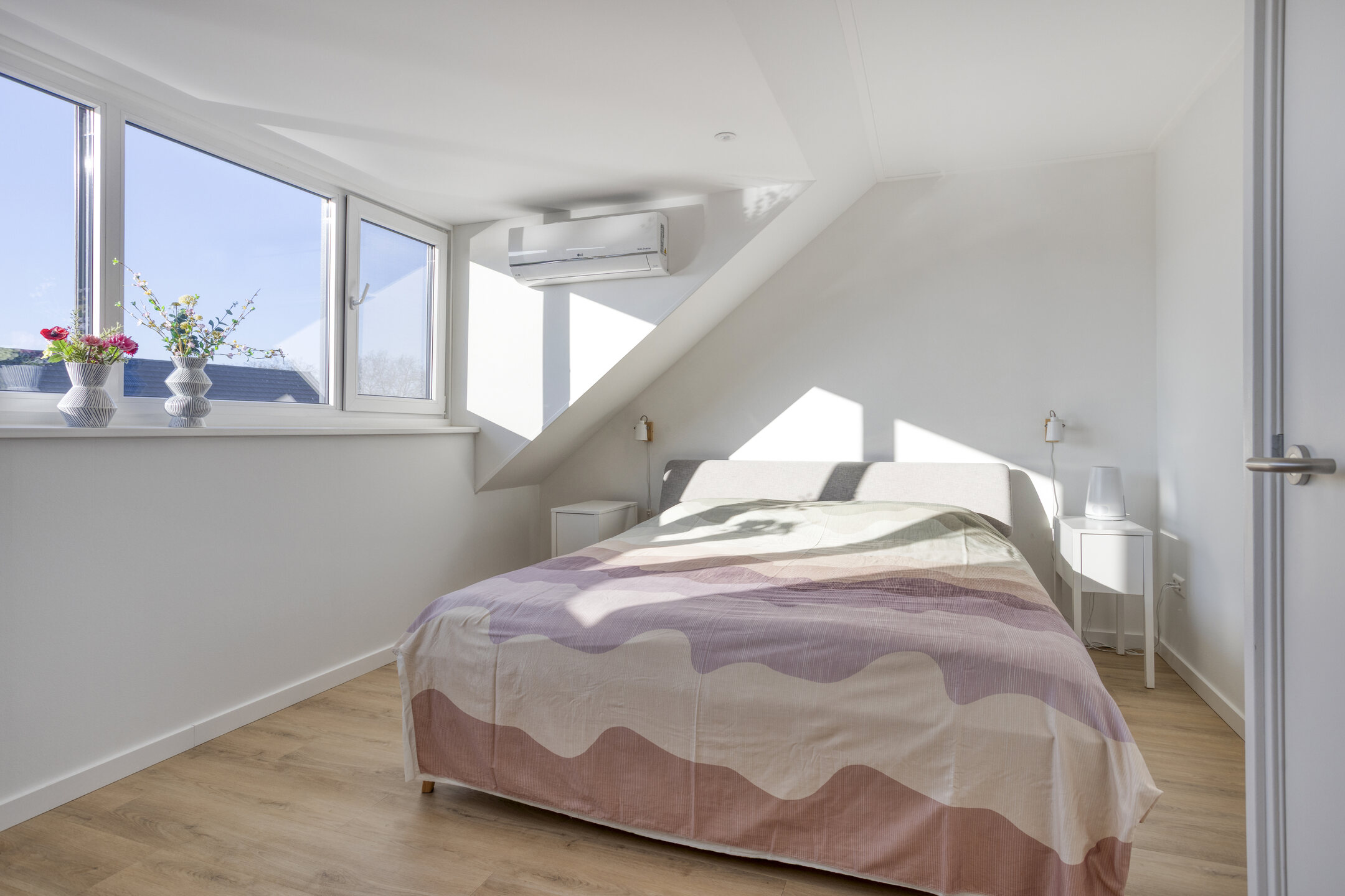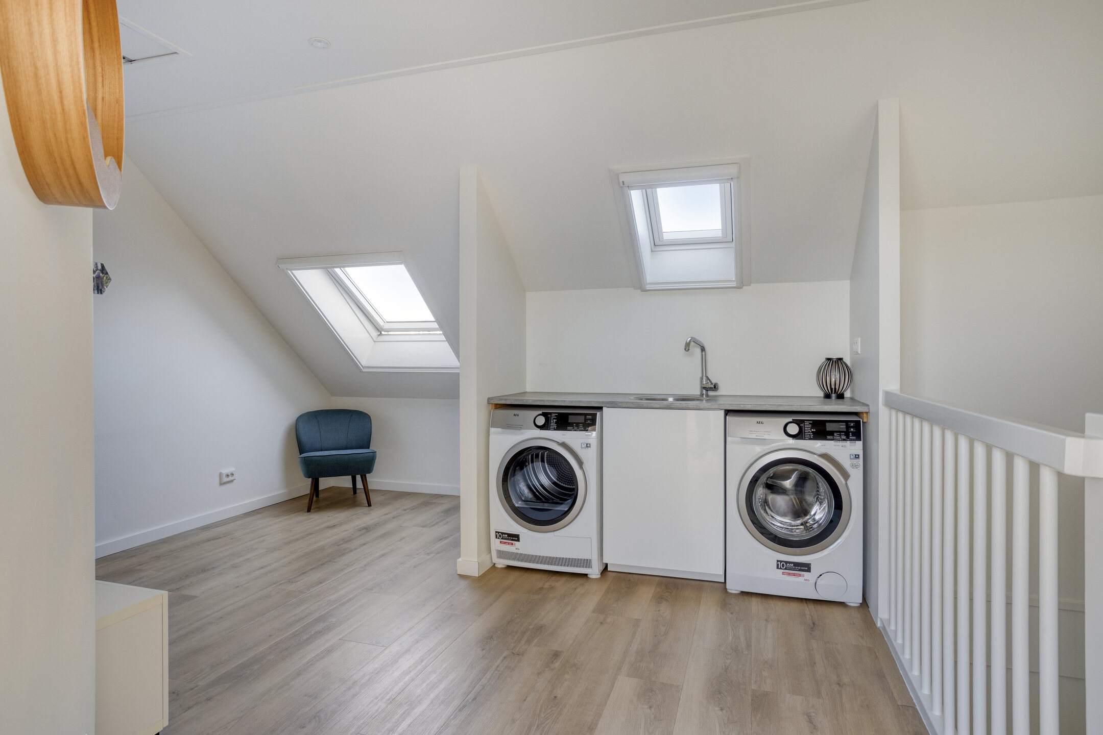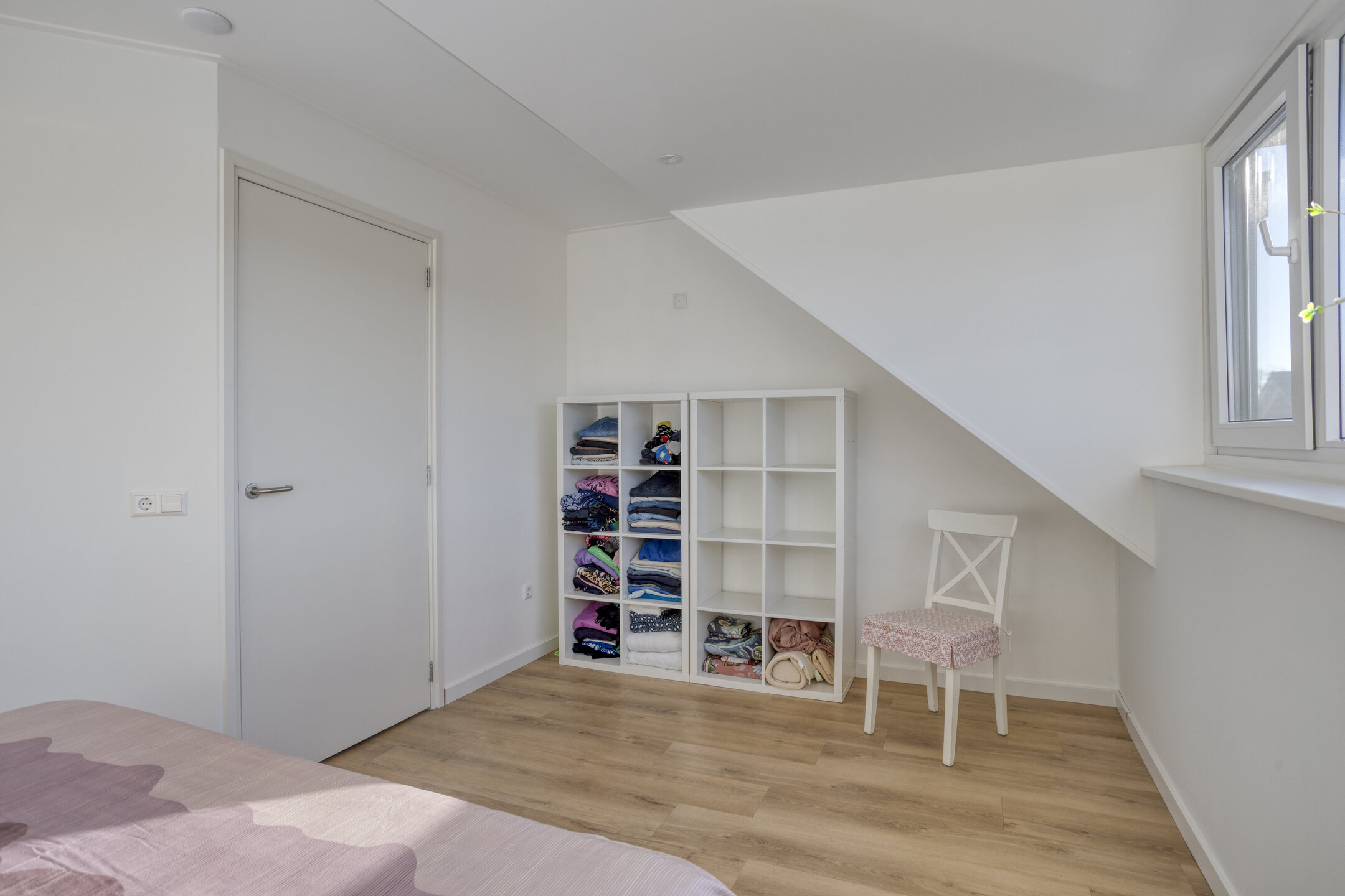 De zolderverdieping is ingedeeld en verrast met een royale vierde slaapkamer, mede dankzij de dakkapel. Ook is hier plek voor de wasmachine, wastafel en veel bergruimte. Een extra vliering, voorzien van vlizotrap, zorgt voor nog meer opbergruimte tot in de nok.