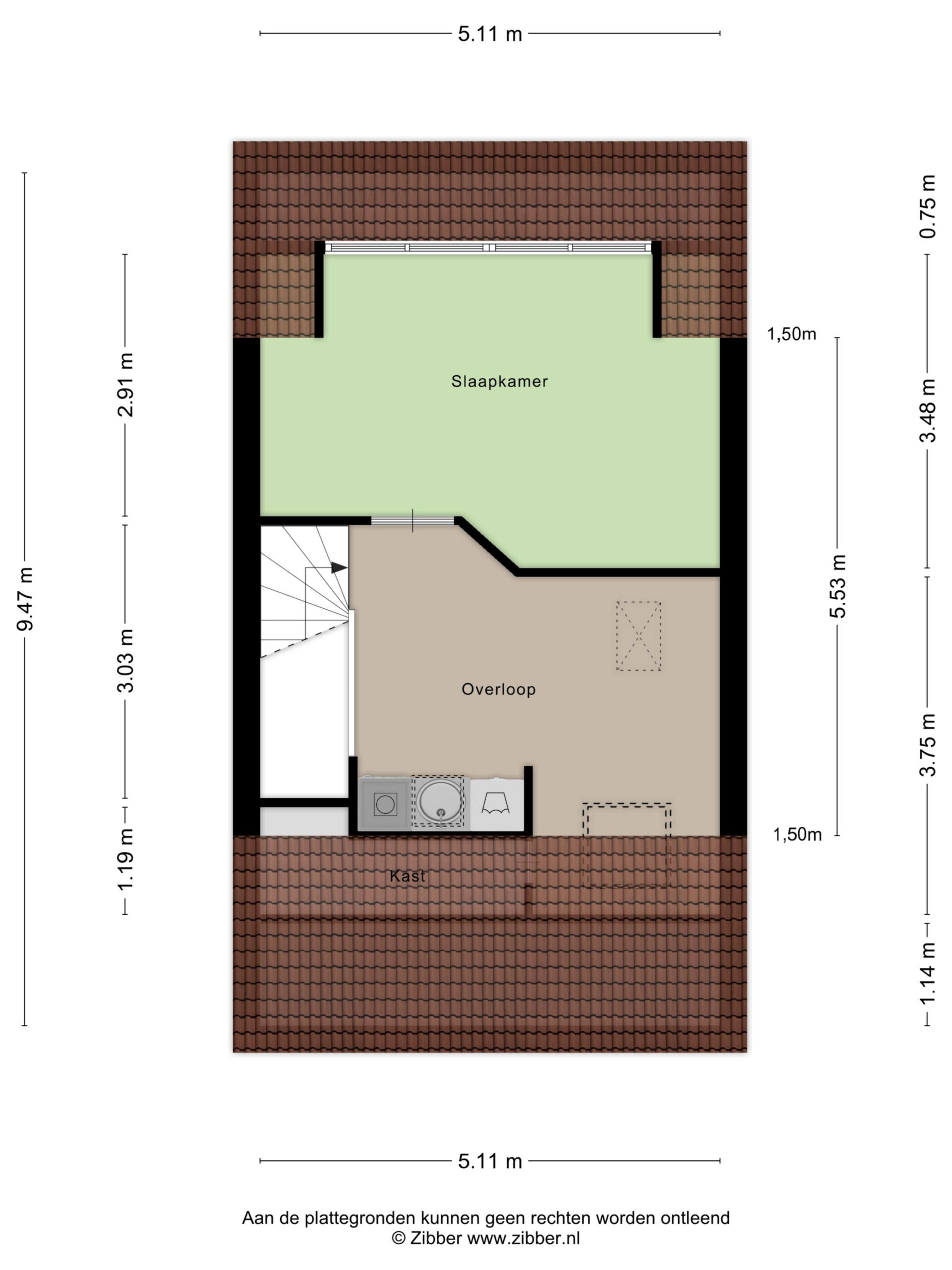 • Ingedeelde zolder met royale dakkapel, slaapkamer, bergruimte/wasruimte en extra vliering