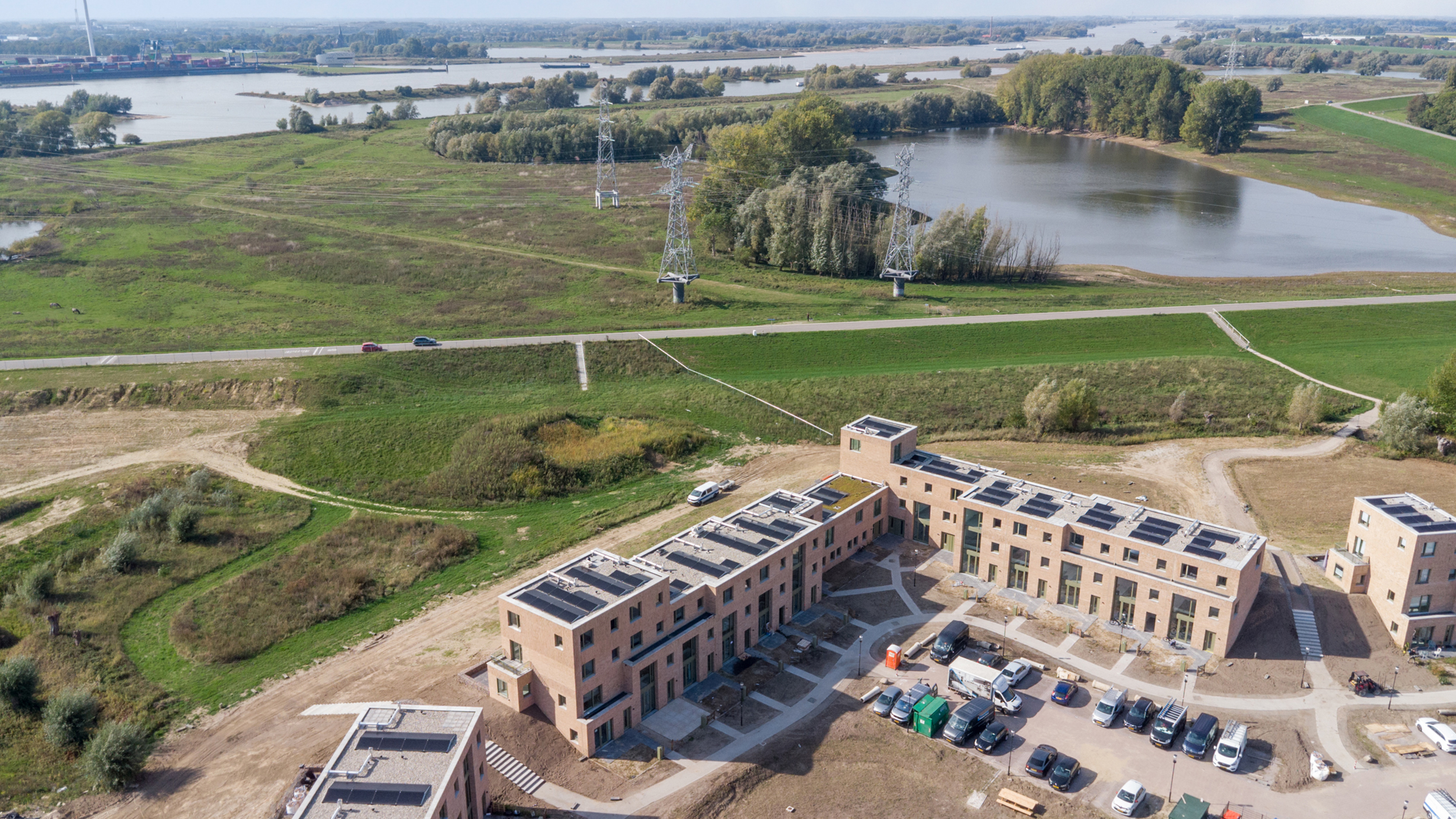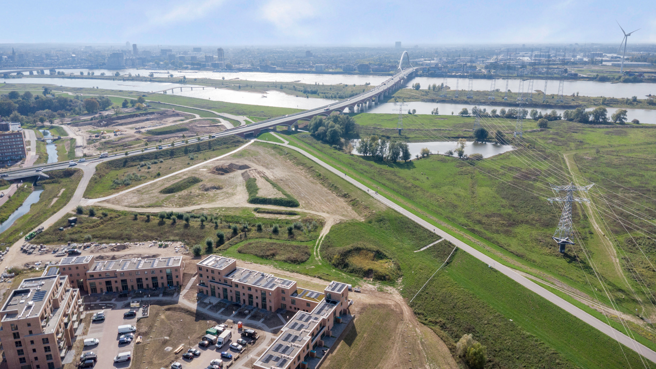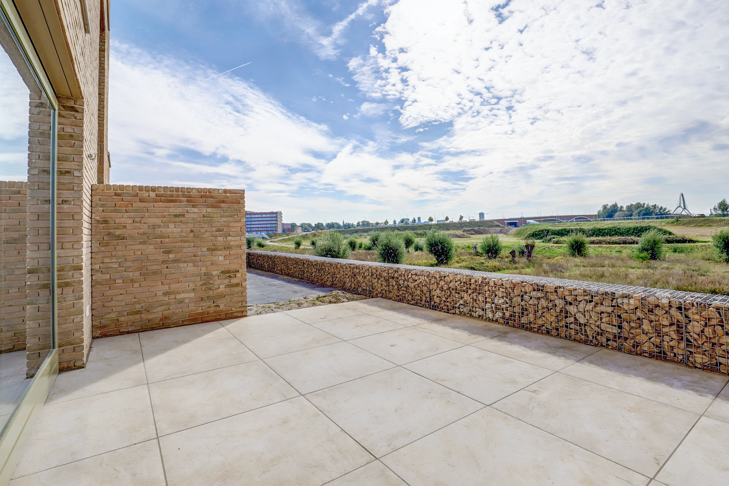 Deze woning maakt deel uit van het hoogwaardige project Homestead Nijmegen, een ruim opgezet nieuwbouwplan in de Waalsprong met in totaal 77 woningen en 22 appartementen. Het plan ligt op een terp aan de rand van Park Waaijenstein, vlak bij de Waaldijk en de Oosterhoutse Waarden, waardoor veel woningen, waaronder ook deze, een prachtig uitzicht hebben over het groen van de uiterwaarden. Binnen het besloten hof is bewust gekozen voor rust; autoverkeer is beperkt, auto’s zijn uit het zicht en wadi’s zorgen voor natuurlijke wateropvang en verkoeling.
