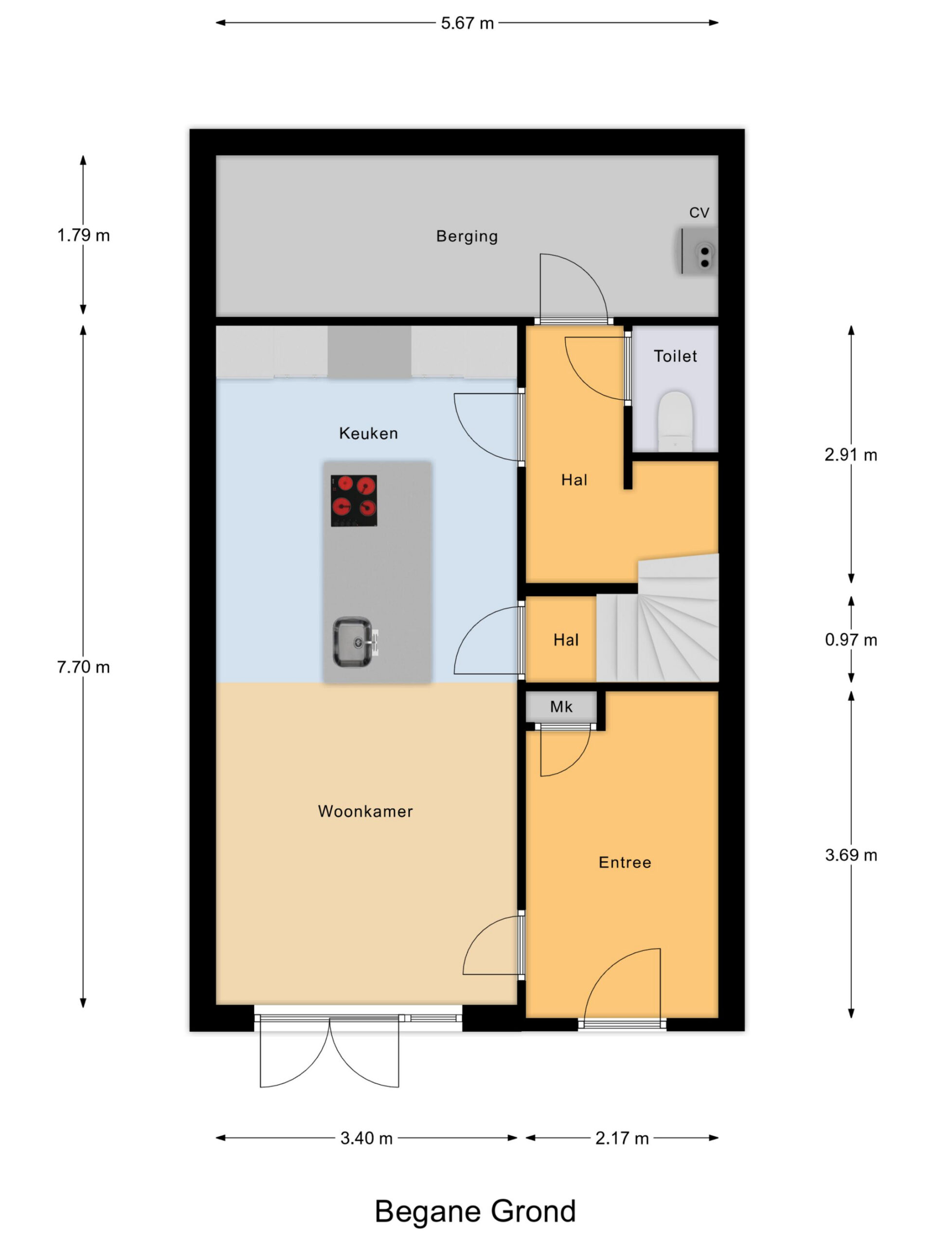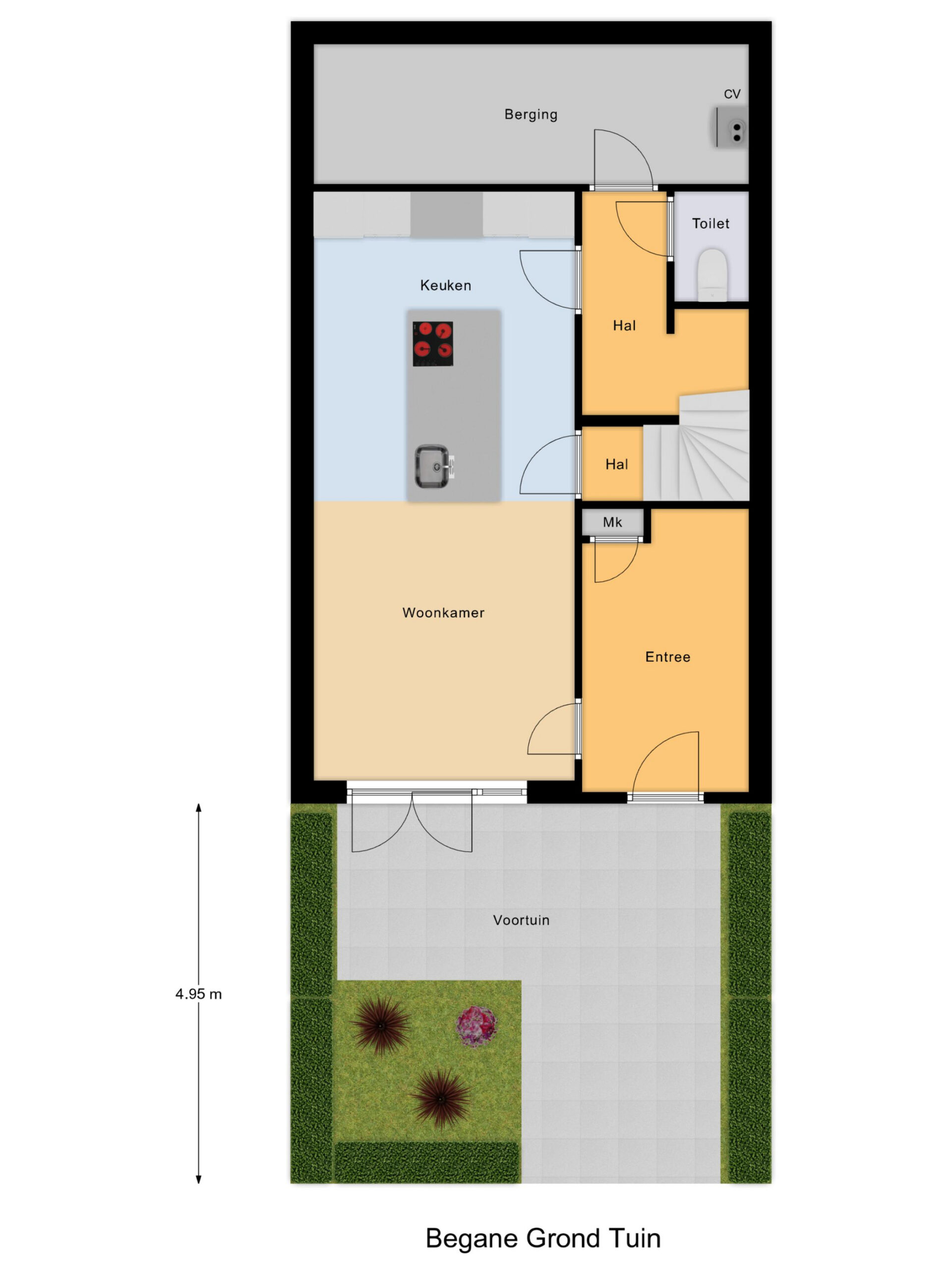 Entree met hal, meterkast, toiletruimte en trapopgang. De begane grond biedt een royale woonkeuken met vide, direct verbonden met de tuin. De hoogwaardige keuken is uitgerust met een grote koelkast, vriezer, combistoomoven, combioven, Bora kookplaat met geïntegreerde afzuigkap en vaatwasser, alle van het merk Siemens (5 jaar garantie op alle apparatuur). Dankzij de grote raampartijen, openslaande deuren en de vide is de leefruimte bijzonder licht en ruimtelijk.
