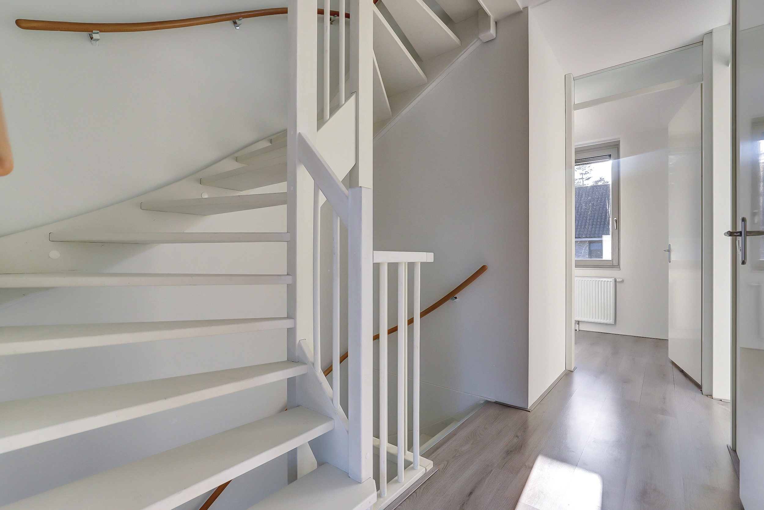 Je stapt binnen in een verzorgde hal met toilet en fontein, en toegang tot de meterkast. Vanuit hier loop je door naar de woonkamer aan de tuinzijde. Het vele daglicht dat de woning binnenvalt zorgt voor een open en sfeervolle ambiance, terwijl de deur naar de tuin een prettige verbinding met de buitenruimte biedt. De begane grond is bovendien voorzien van comfortabele vloerverwarming. De open trap naar de eerste verdieping is praktisch geplaatst om de ruimte optimaal te benutten. De keuken aan de voorzijde biedt volop werkruimte. De combi-oven, inductiekookplaat, vaatwasser en koel-vriescombinatie geven je alle vrijheid om dagelijks heerlijke maaltijden te bereiden.