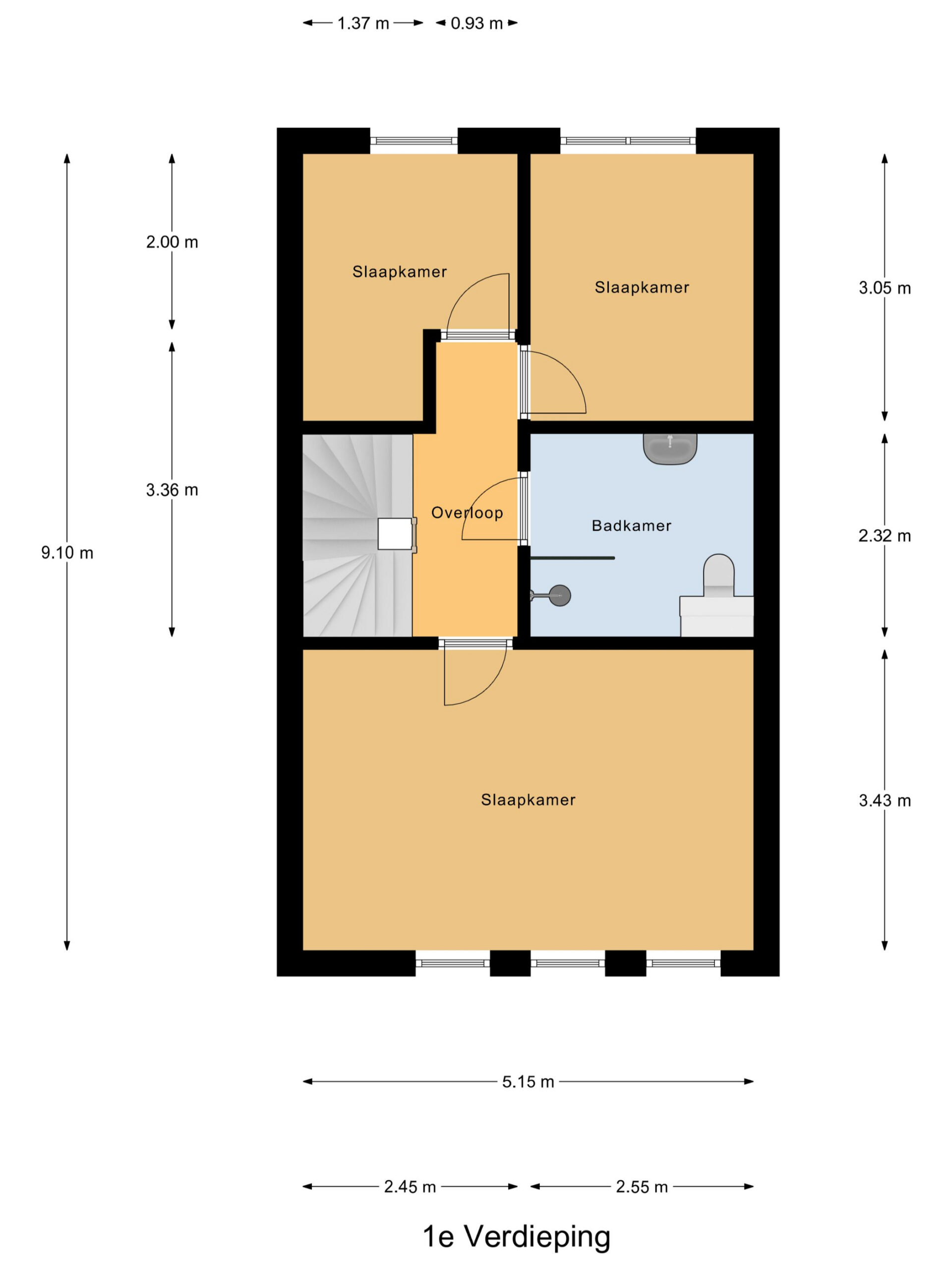 Op de eerste verdieping vind je drie volwaardige slaapkamers, perfect voor gezinnen. De badkamer is van alle gemakken voorzien, met een inloopdouche, toilet en een wastafel.
