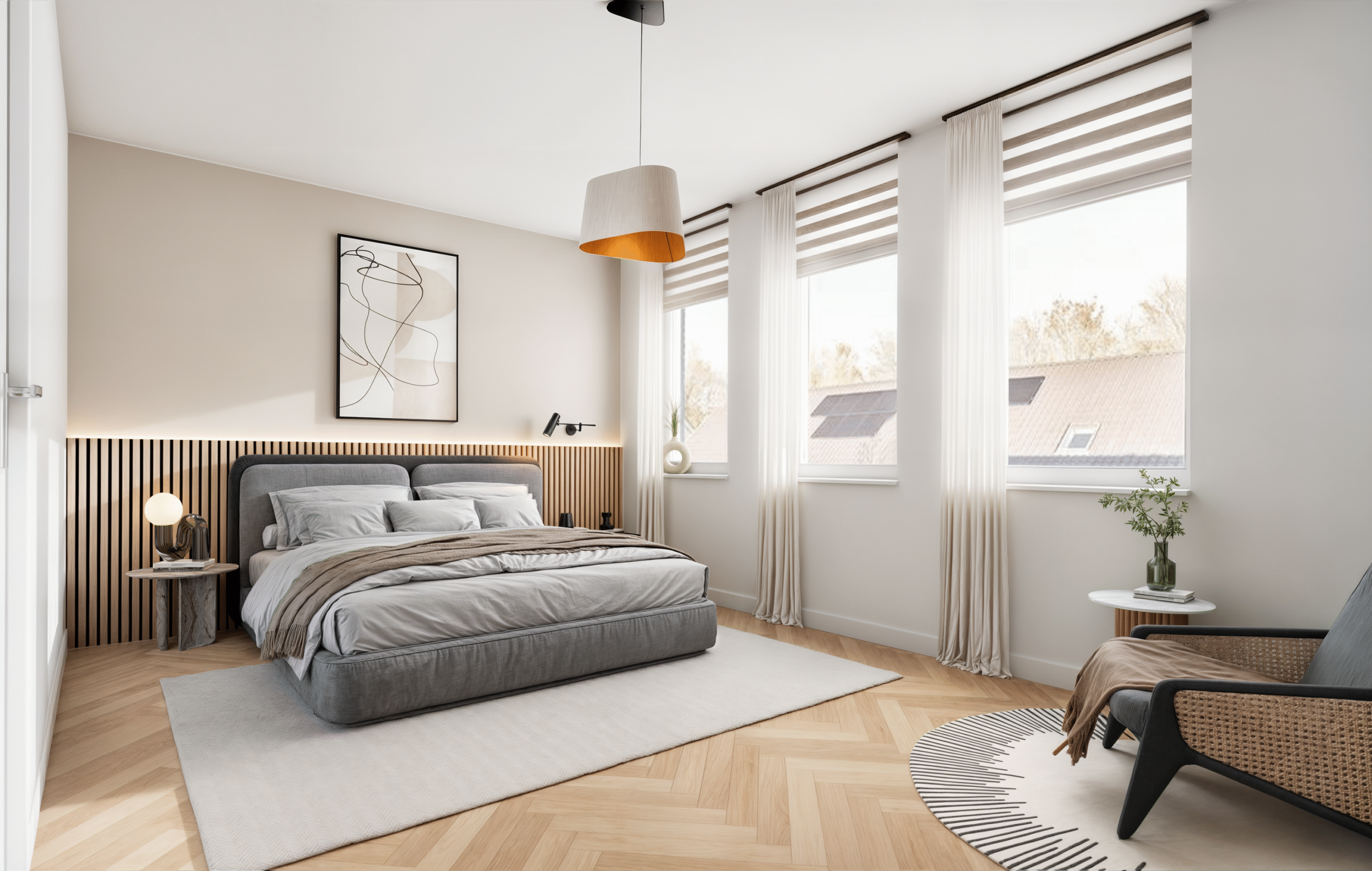 De tweede verdieping wacht op jouw visie. Super ruim! Hier creëer je eenvoudig twee extra slaapkamers of een royale werk-/hobbyruimte. Met de mogelijkheid voor een dakkapel en extra vliering voeg je direct waarde en flexibiliteit toe. Het dakraam aan de achterzijde trekt het licht naar binnen en maakt de ruimte direct bruikbaar.