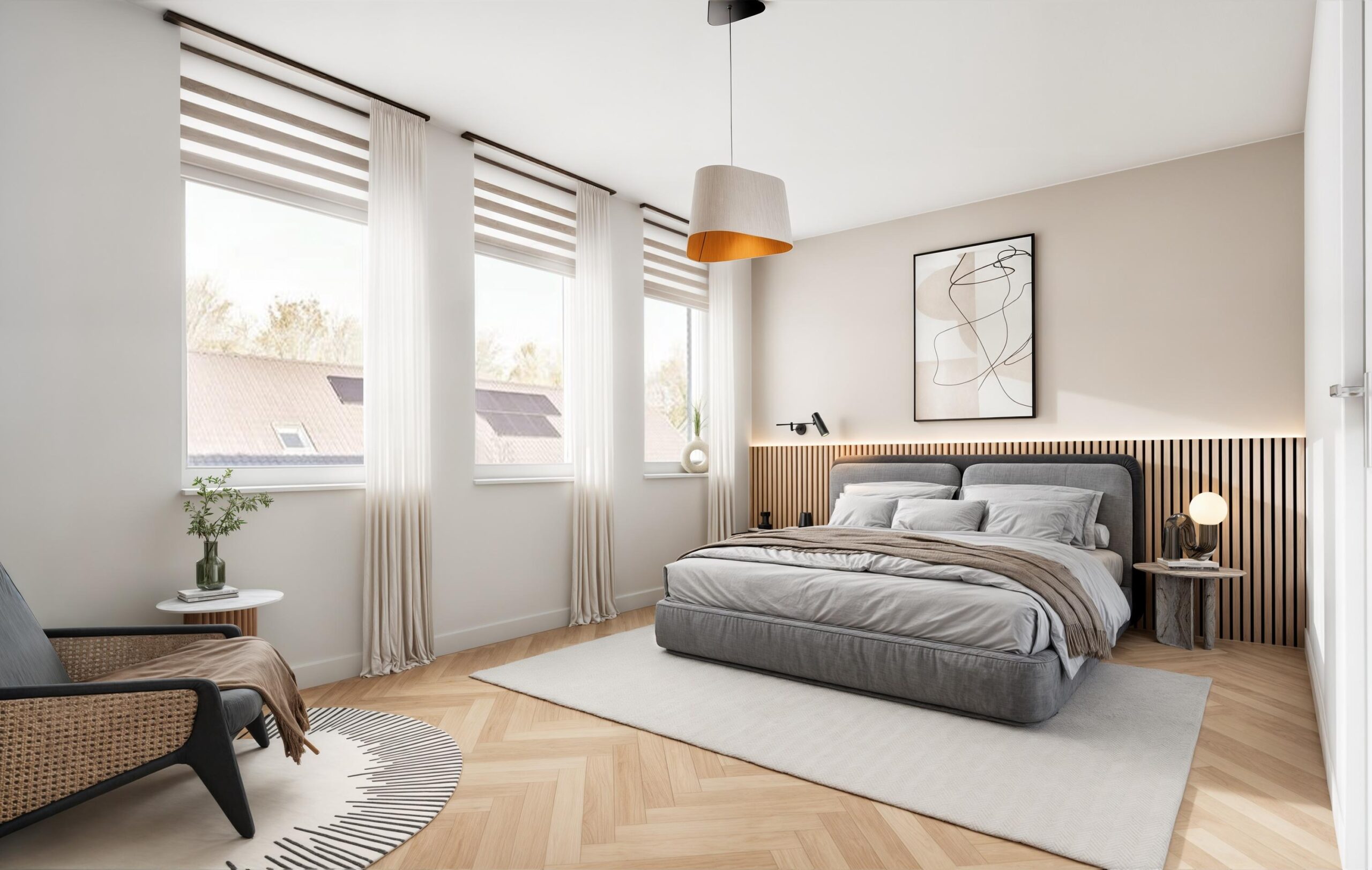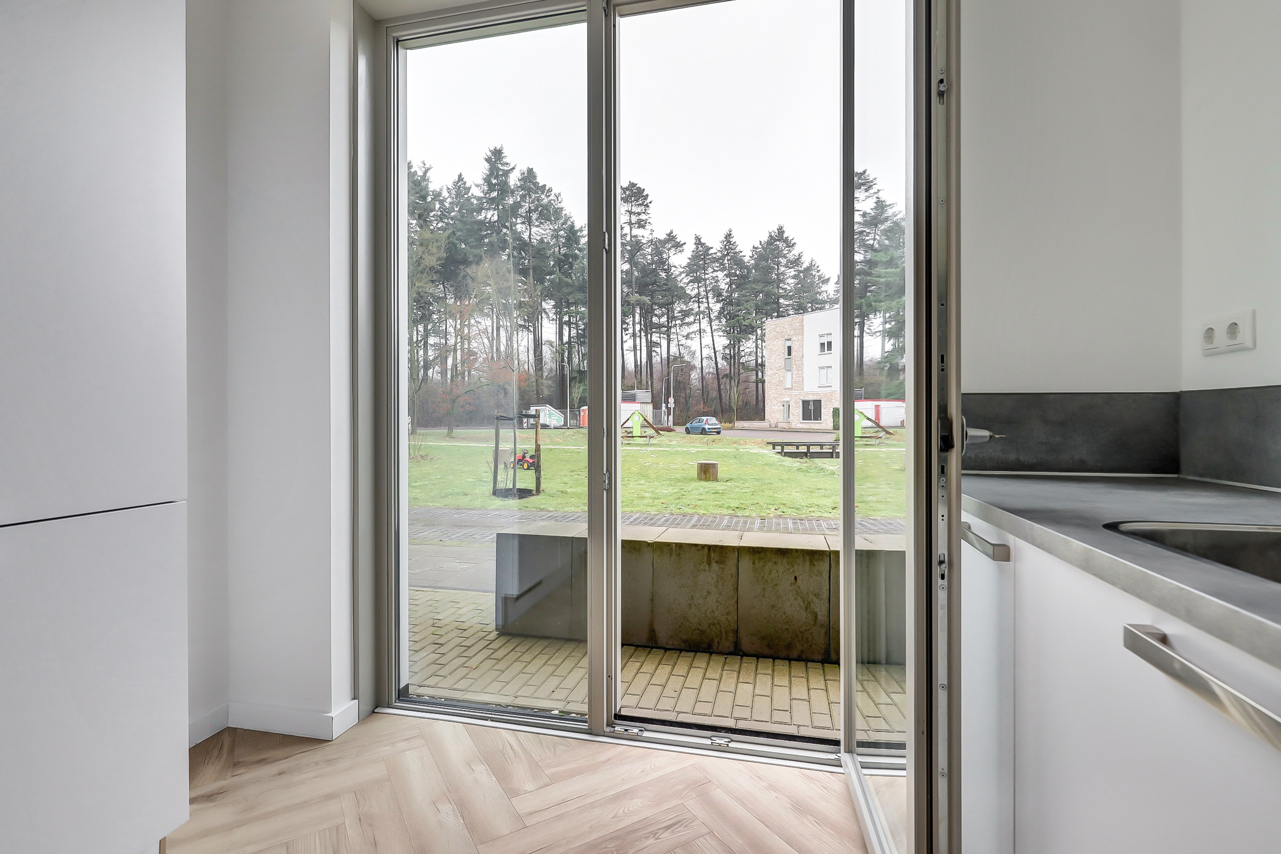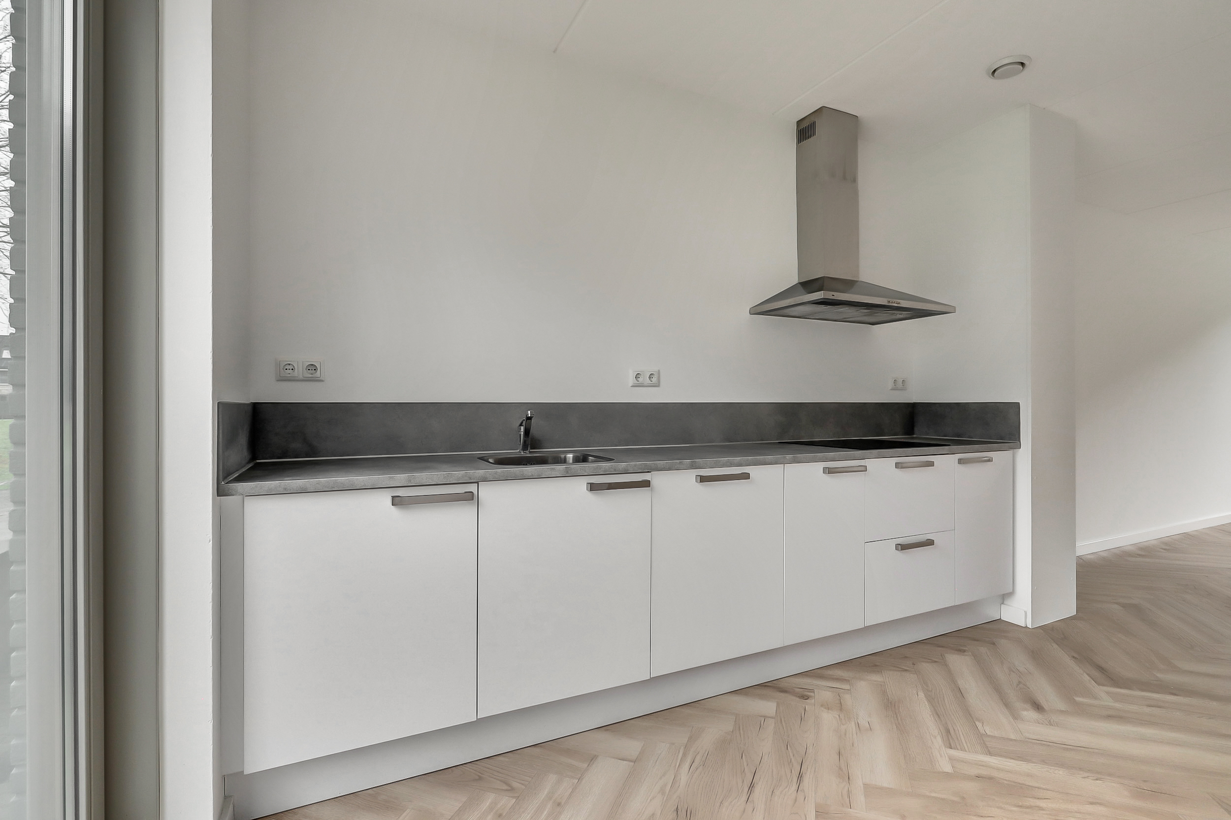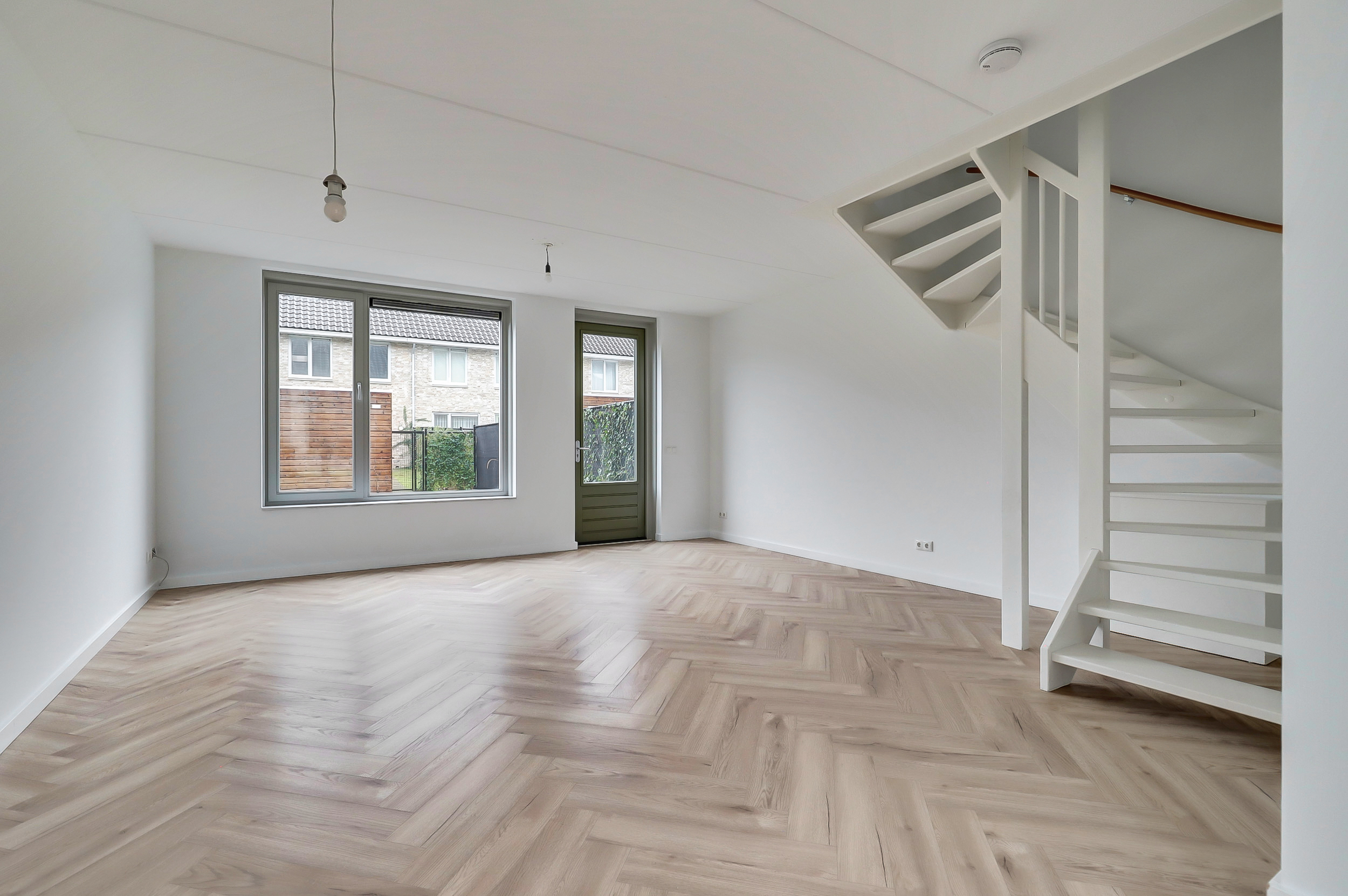 Je stapt binnen in een verzorgde hal met toilet en fontein, en toegang tot de meterkast. Vanuit hier loop je door naar de woonkamer aan de tuinzijde. Het vele daglicht dat de woning binnenvalt zorgt voor een open en sfeervolle ambiance, terwijl de deur naar de tuin een prettige verbinding met de buitenruimte biedt. De woonkamer is afgewerkt met een stijlvolle visgraadvloer en de begane grond is bovendien voorzien van comfortabele vloerverwarming. De open trap naar de eerste verdieping is praktisch geplaatst om de ruimte optimaal te benutten. De keuken aan de voorzijde biedt volop werkruimte en is voorzien van een raam dat volledig geopend kan worden, wat zorgt voor extra licht en ventilatie. De combi-oven, inductiekookplaat, vaatwasser en koel-vriescombinatie geven je alle vrijheid om dagelijks heerlijke maaltijden te bereiden.Â