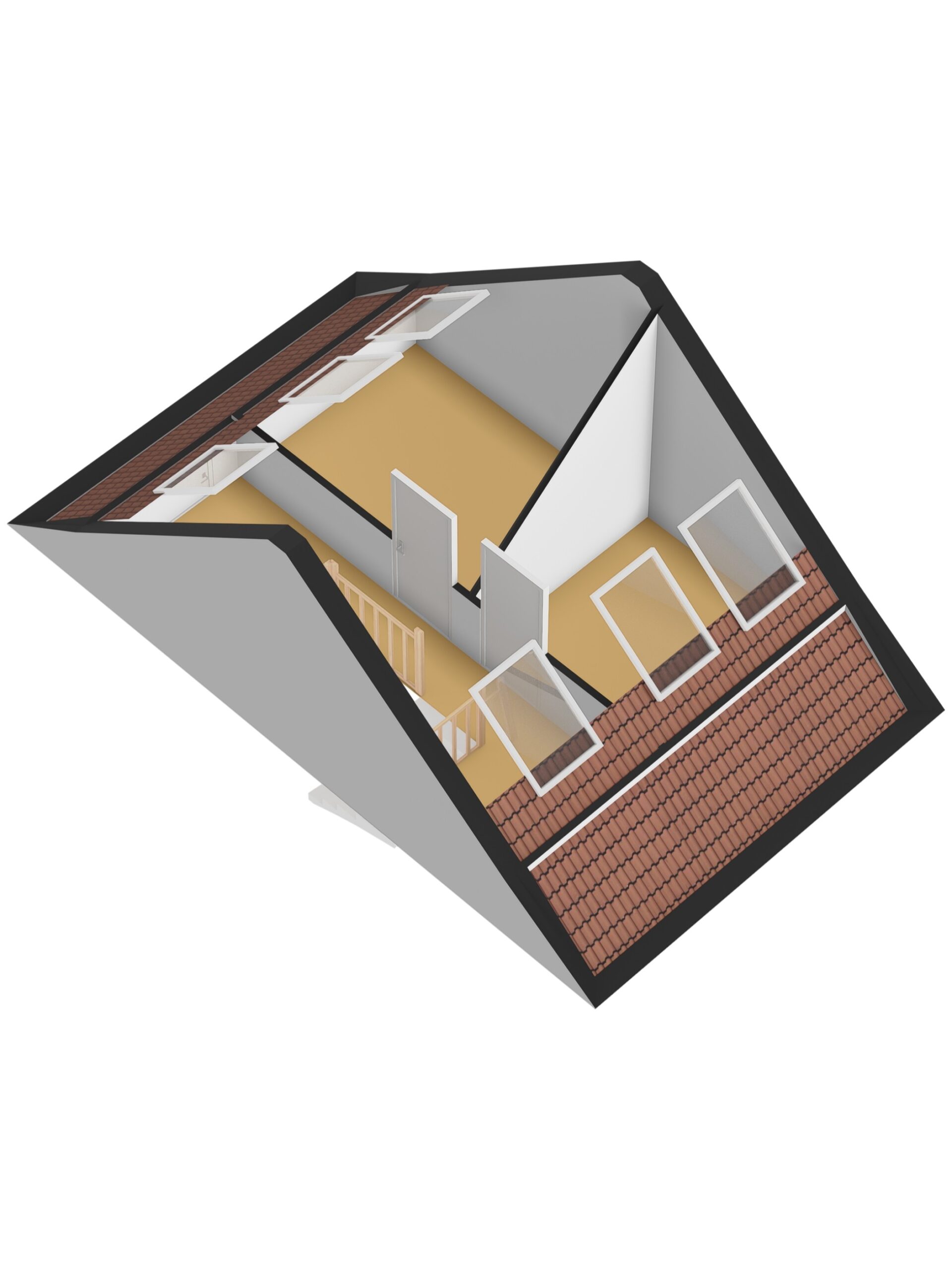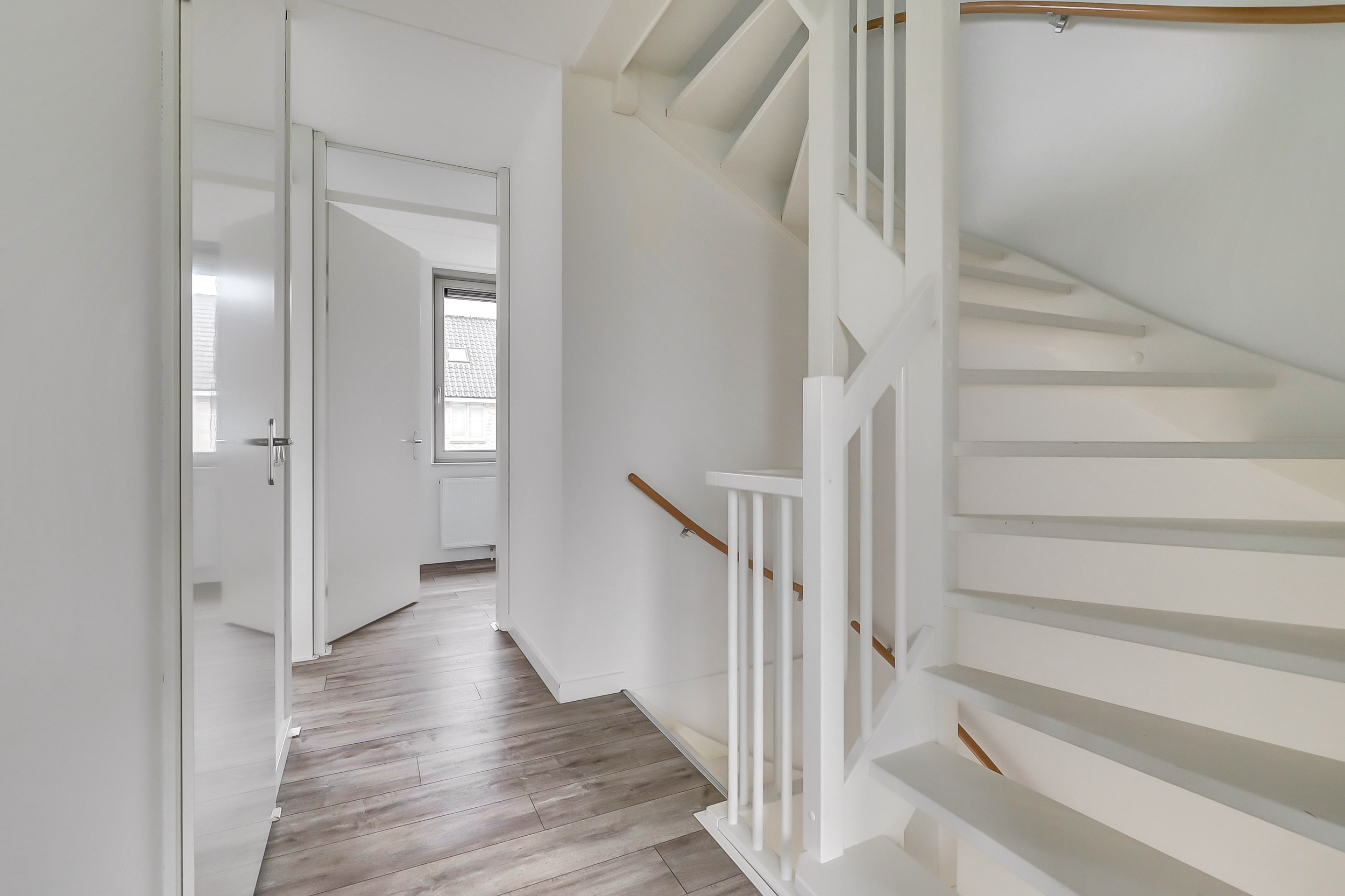 De tweede verdieping wacht op jouw visie. Super ruim! Hier creëer je eenvoudig twee extra slaapkamers of een royale werk-/hobbyruimte. Met de mogelijkheid voor een dakkapel en extra vliering voeg je direct waarde en flexibiliteit toe. Het dakraam aan de achterzijde trekt het licht naar binnen en maakt de ruimte direct bruikbaar.