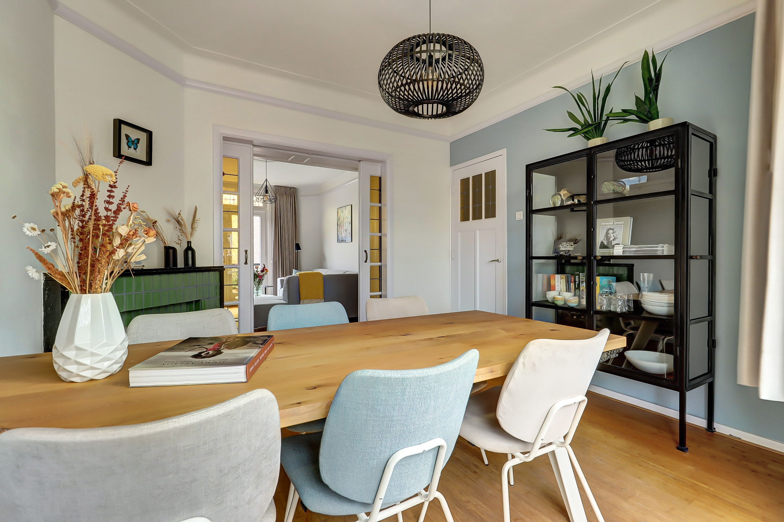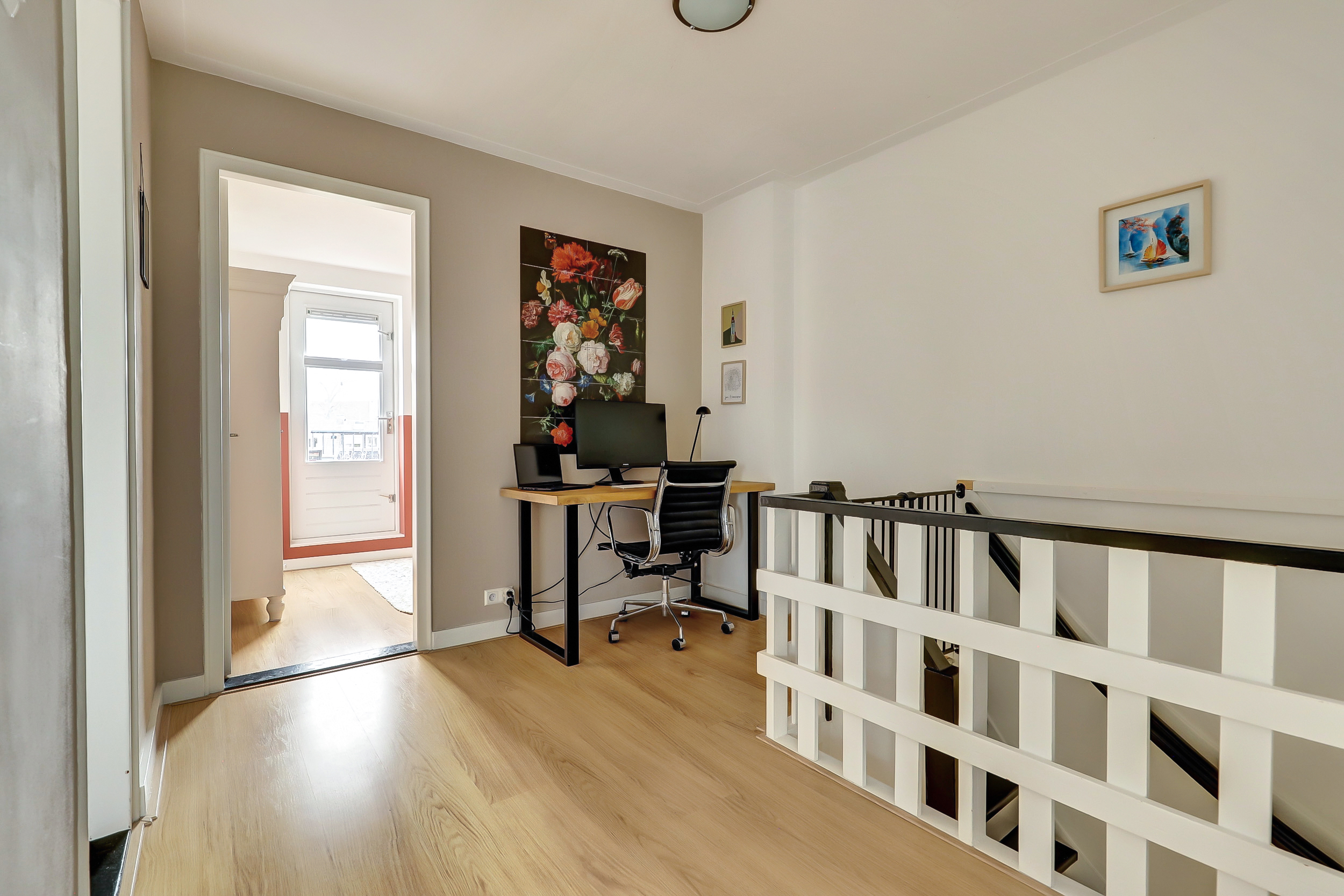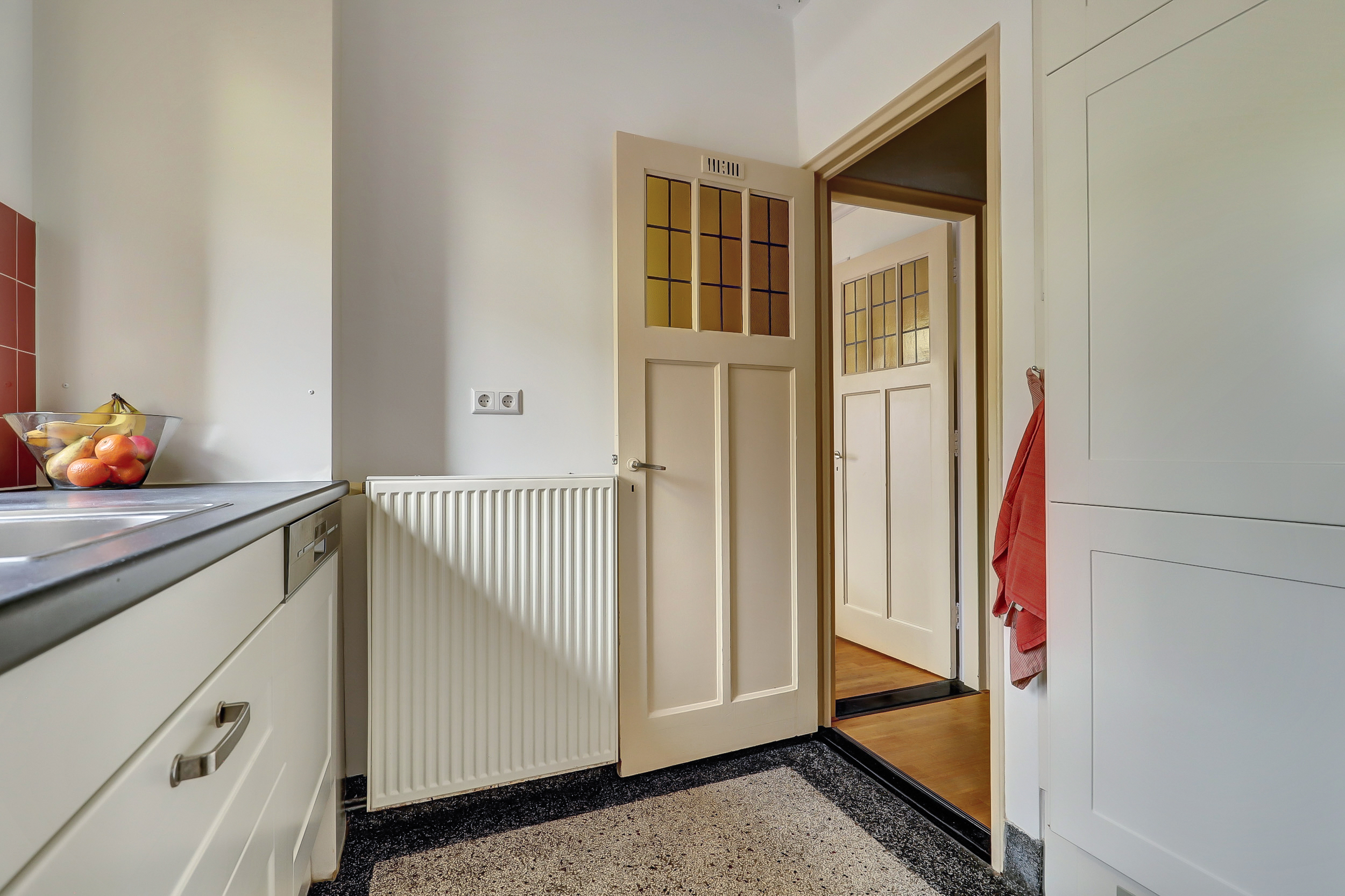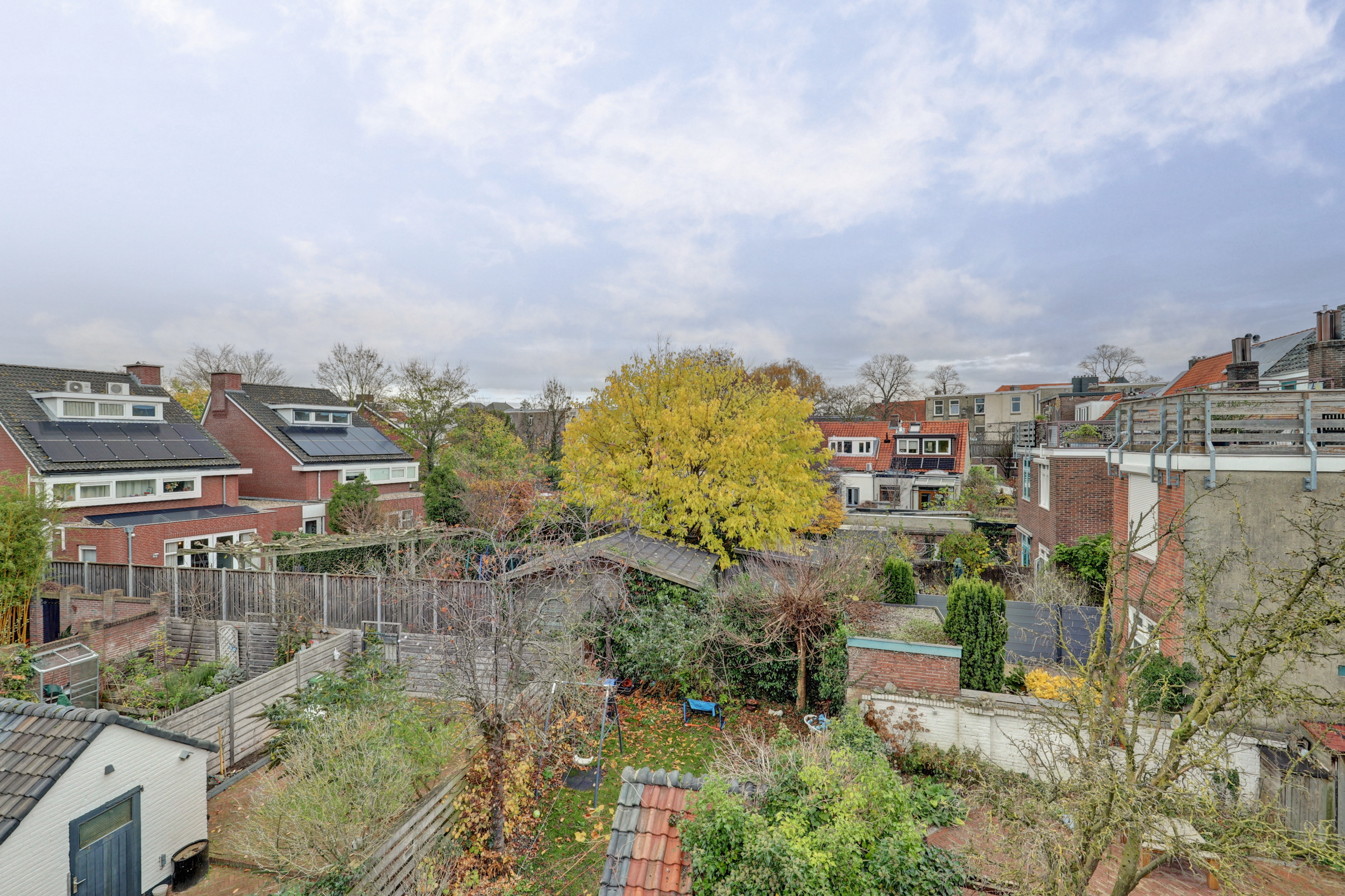 Vanuit de overloop zijn alle vertrekken op deze verdieping bereikbaar. De woon-/eetkamer is licht en ruim, met een erker die veel daglicht binnenlaat, ensuite glas-in-lood deuren, inbouwkasten en een balkon aan de achterzijde met vrij uitzicht. De openslaande deuren zorgen voor een fijne verbinding met buiten. De keuken (2009) heeft een prachtige granitovloer. Verder is de keuken voorzien van een koelvriescombinatie, een grote oven, een 5-pitsgasfornuis en een vaatwasser (2019). Vanuit de keuken heb je een leuk uitzicht op de straat. Op deze verdieping bevindt zich verder een toiletruimte en er zijn diverse karakteristieke details aanwezig, zoals glas-in-loodramen met voorzetramen en twee mooie betegelde schouwen, die het geheel extra sfeer geven.